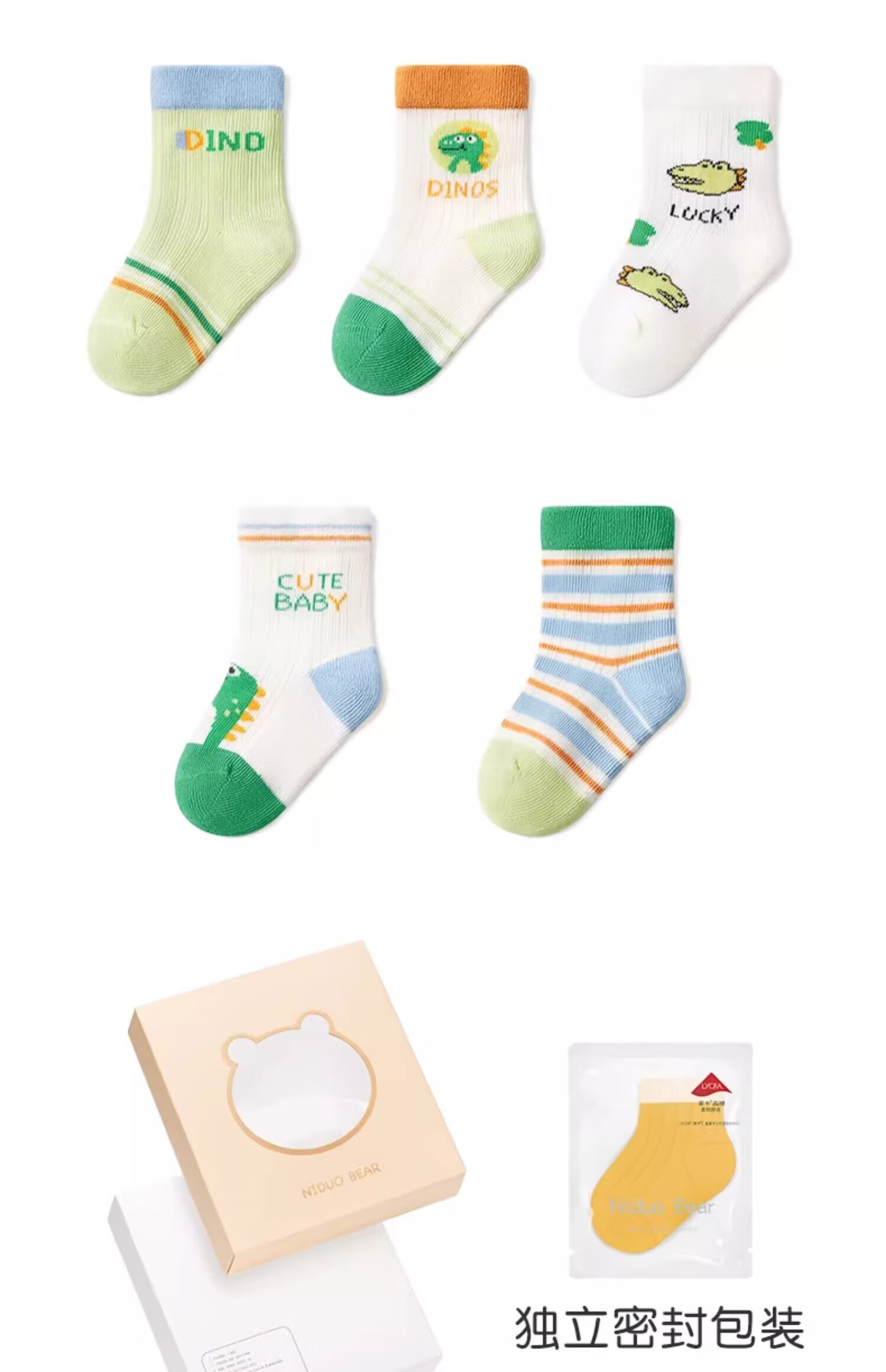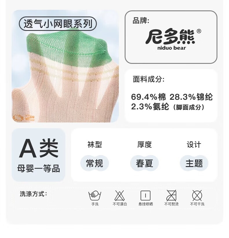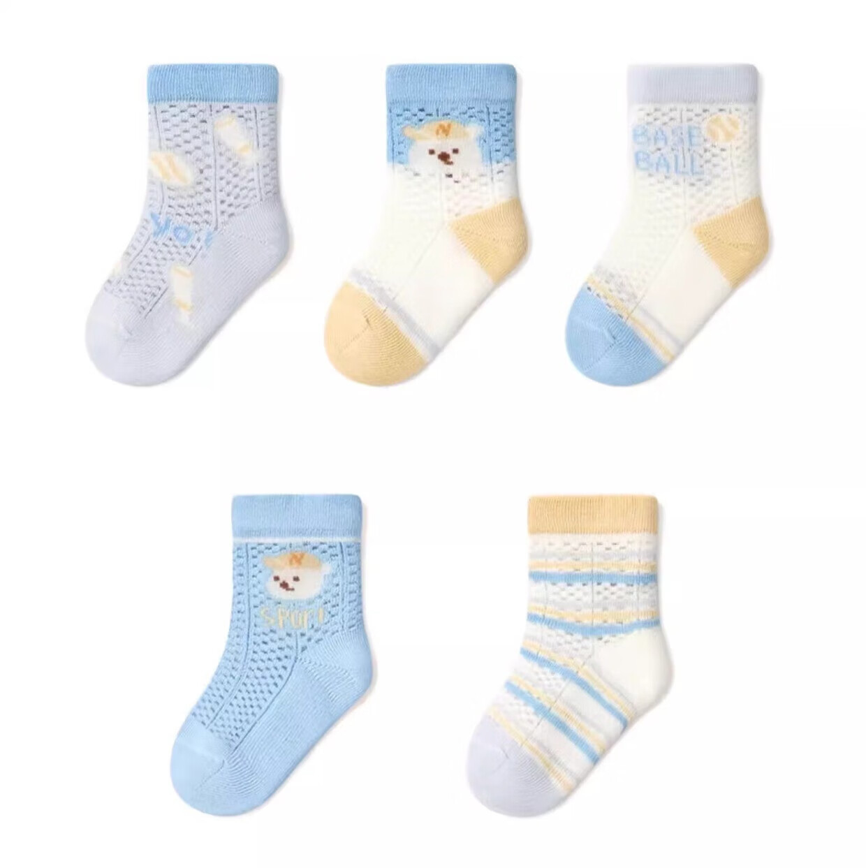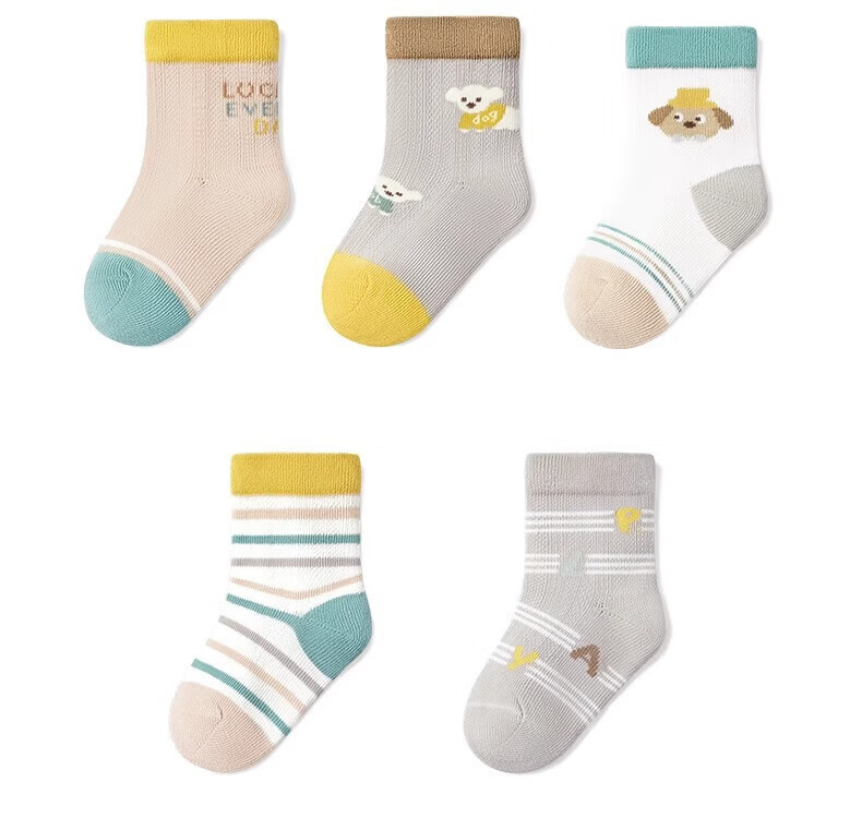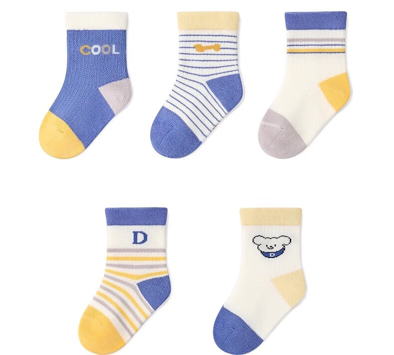 Nido Bear baby socks summer thin breathable mesh cotton socks baby loose boneless socks children's socks S2016 mesh socks 5 pairs 6-12 months (suitable for feet length 9-11cm)
