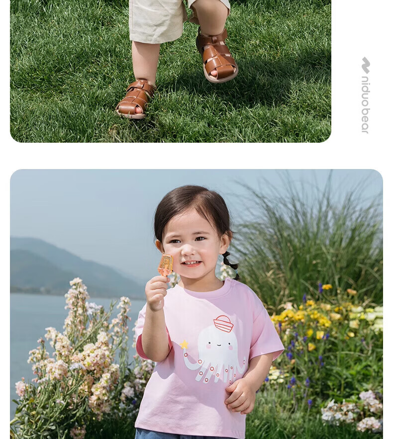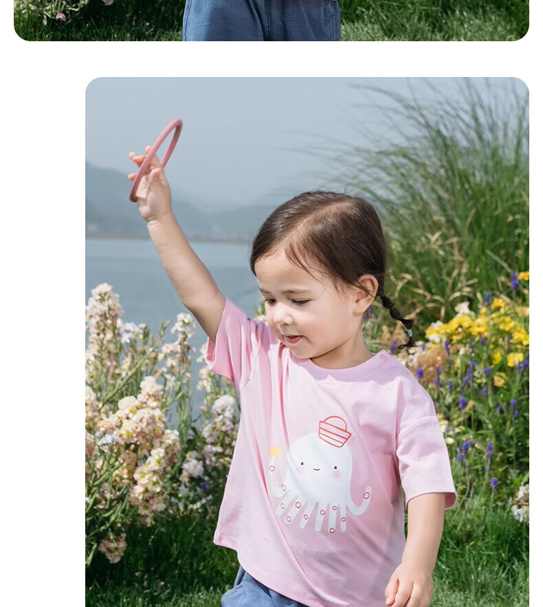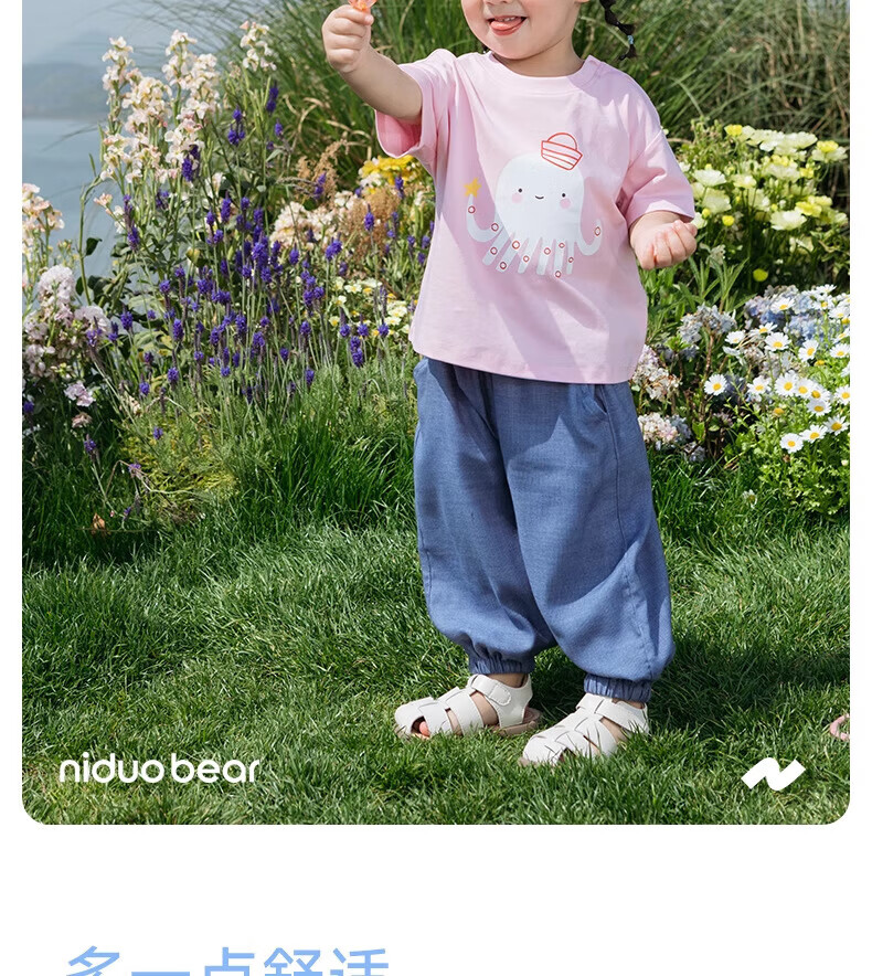 Nido Bear summer new baby T-shirt cute men and women elastic cool short-sleeved baby soft breathable top Pink Octopus 80 cm