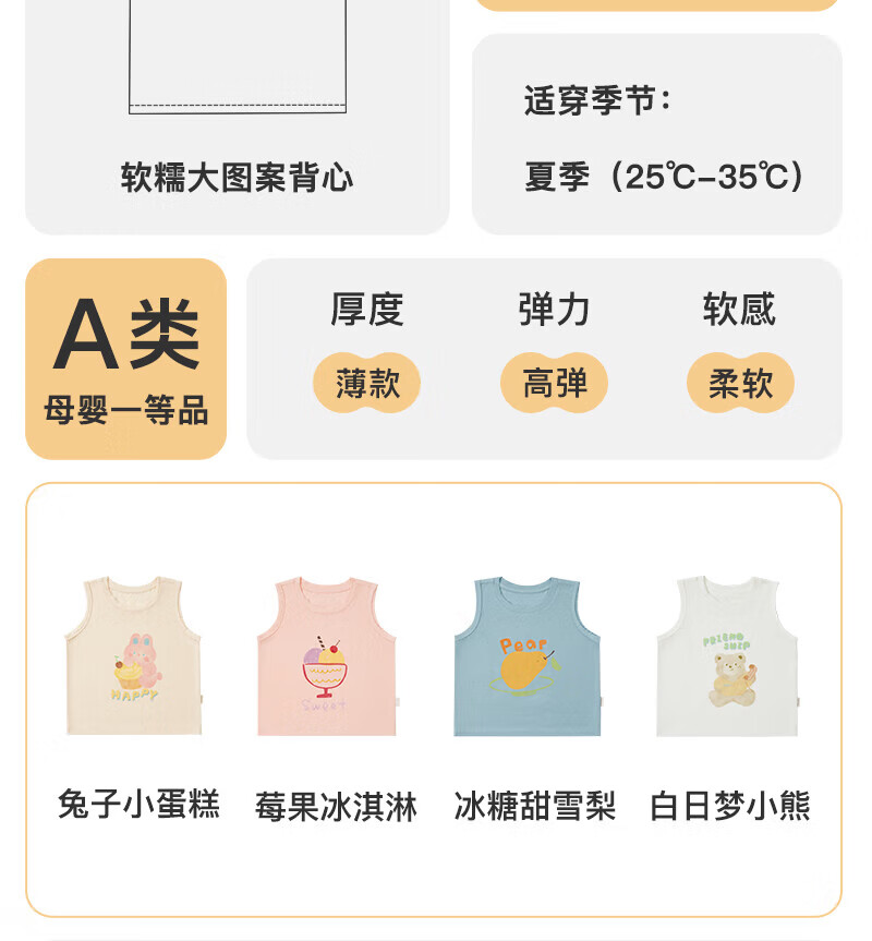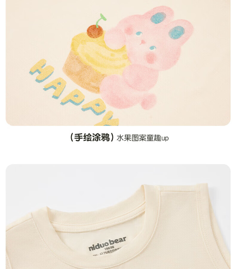 Nido Bear Summer New Baby Vest Men's and Women's Baby Inner Tops Baby Class A Vest Sports Breathable Rabbit Cake 80 cm