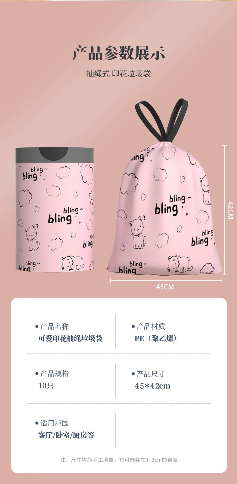 Shantou Lincun Garbage Bag Drawstring Printed Drawstring Household Thickened Affordable Kitchen Large Extra Thick Plastic Bag Thickened 1 Roll 10 Pieces No Specifications