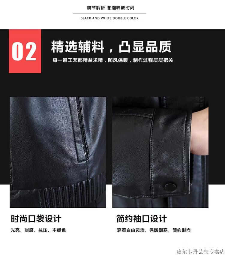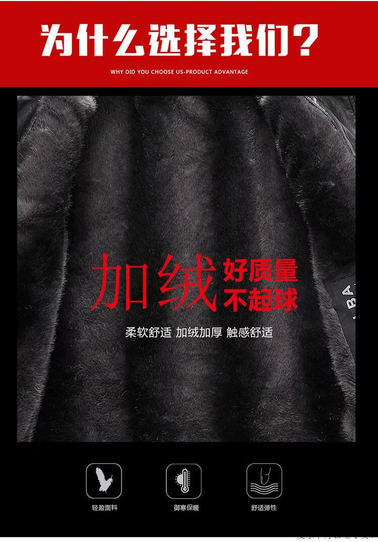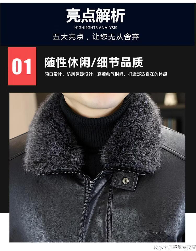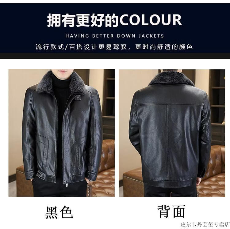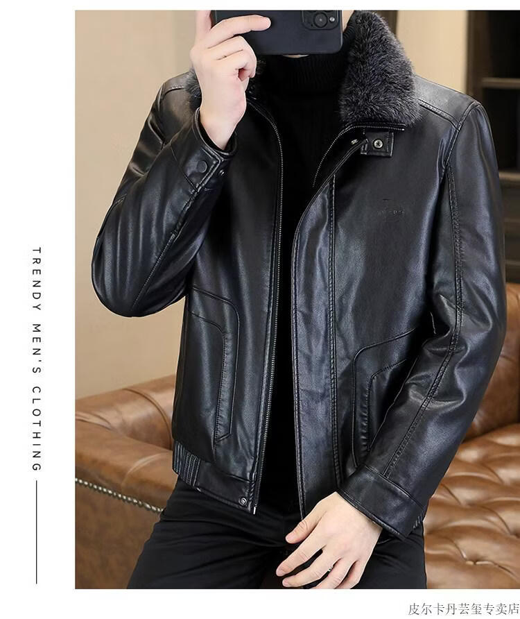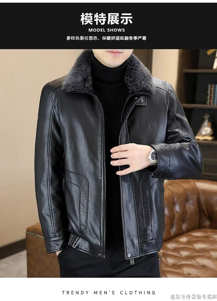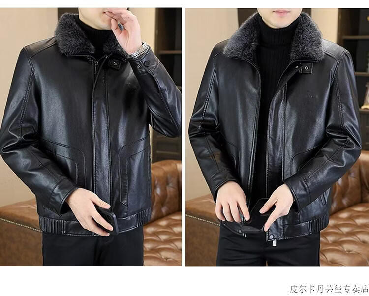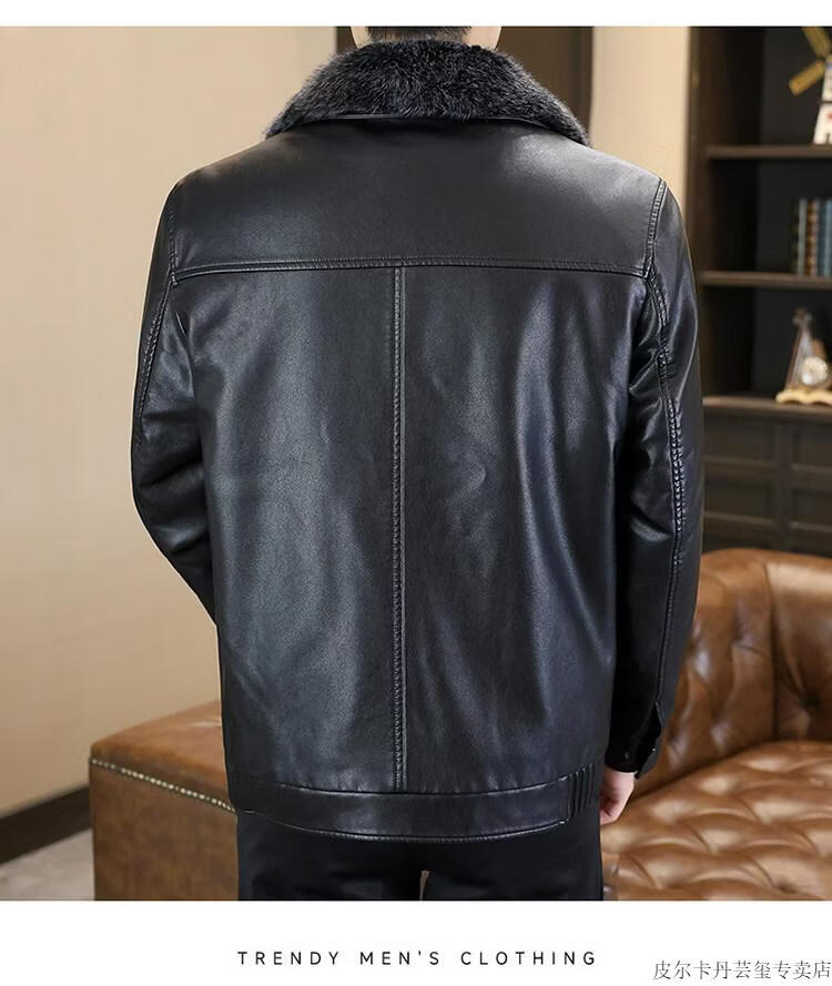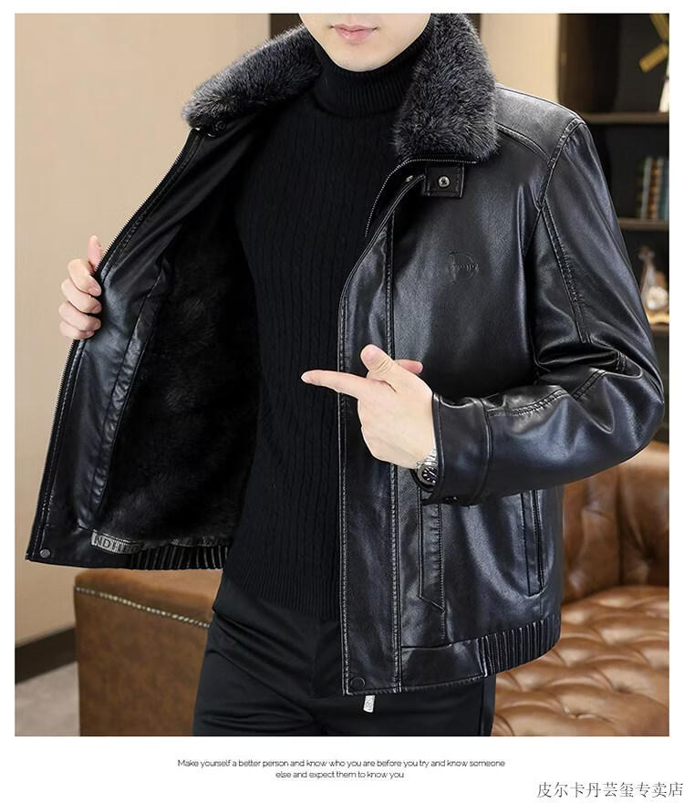 Pierre Cardin winter plush leather jacket men's Haining mink fur collar short leather jacket winter new dad jacket black no cracking no peeling L