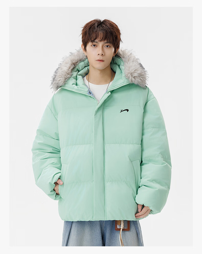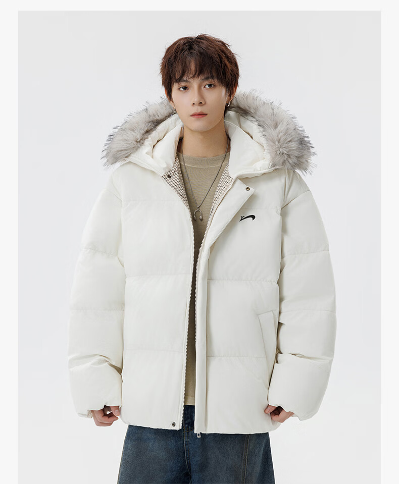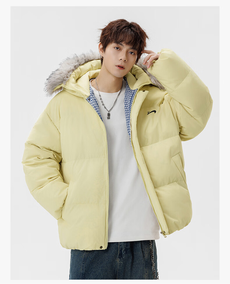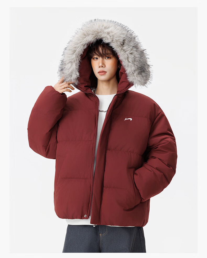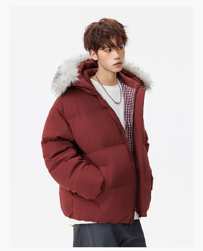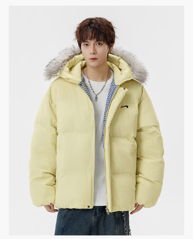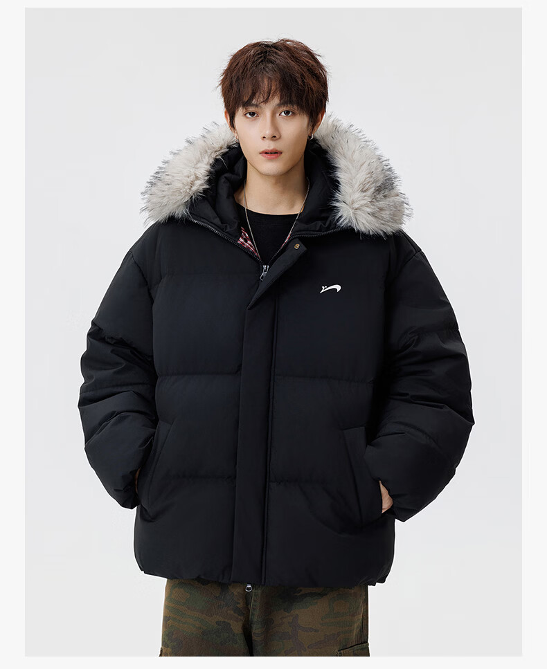 Guirenniao hooded down jacket for men in winter, thickened and warm fur collar parka coat, couple windproof cotton-padded jacket, navy M