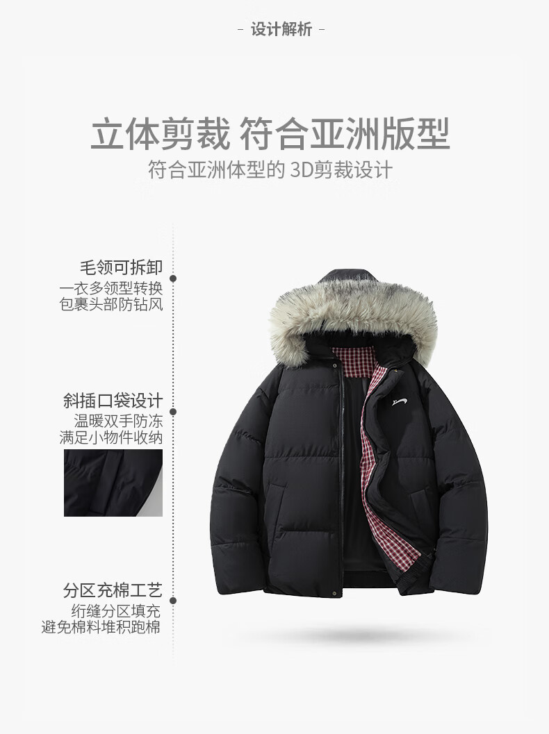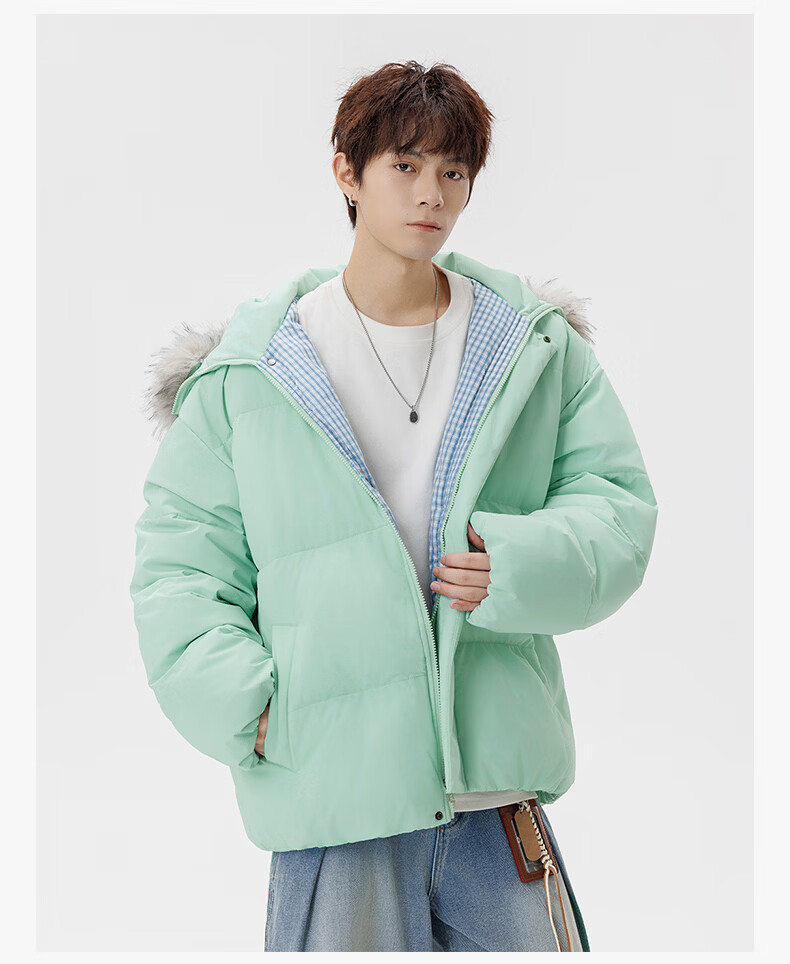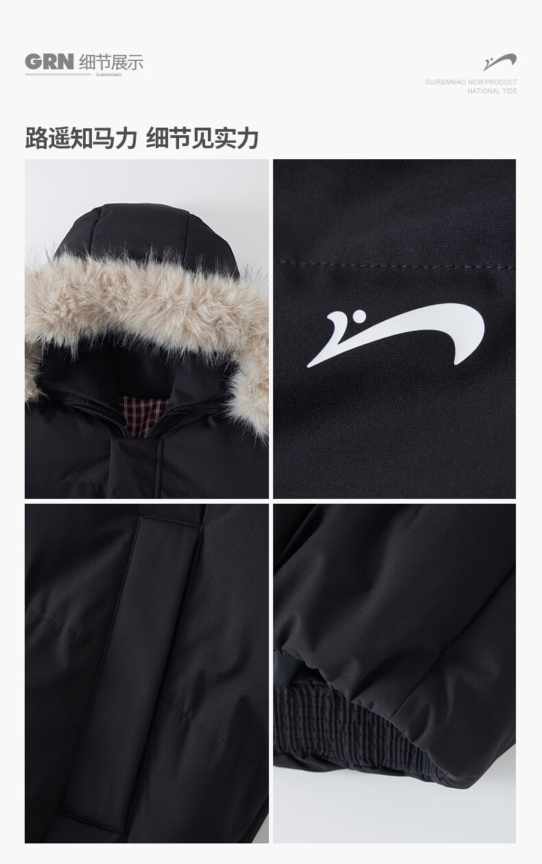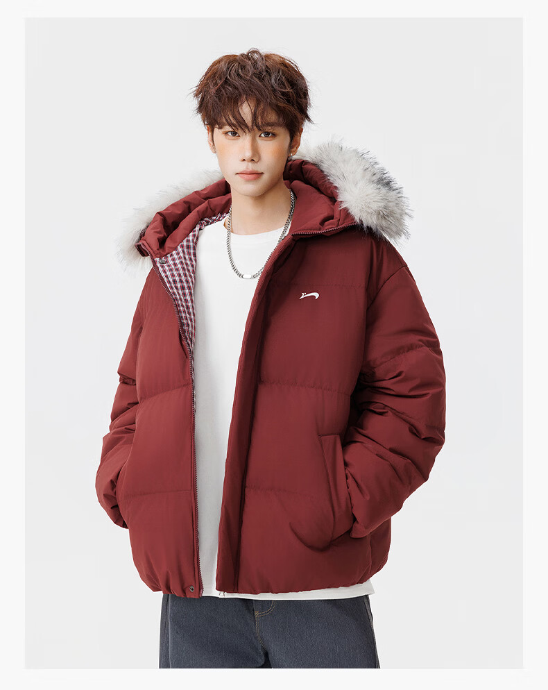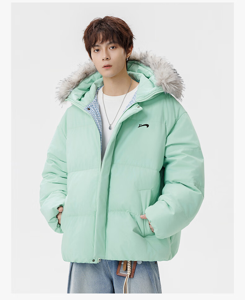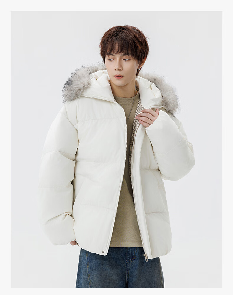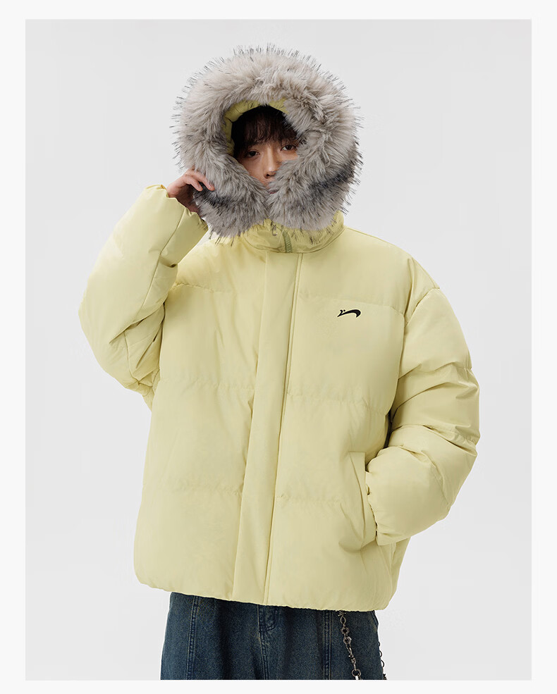 Guirenniao hooded down jacket for men in winter, thickened and warm fur collar parka coat, couple windproof cotton-padded jacket, navy M