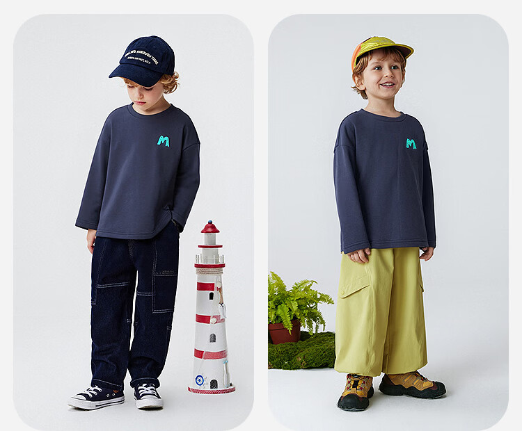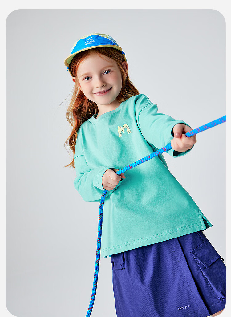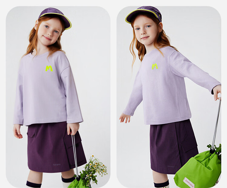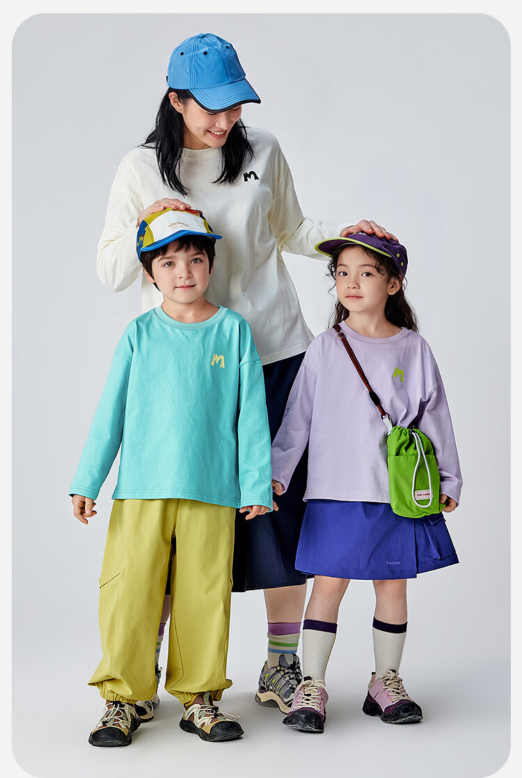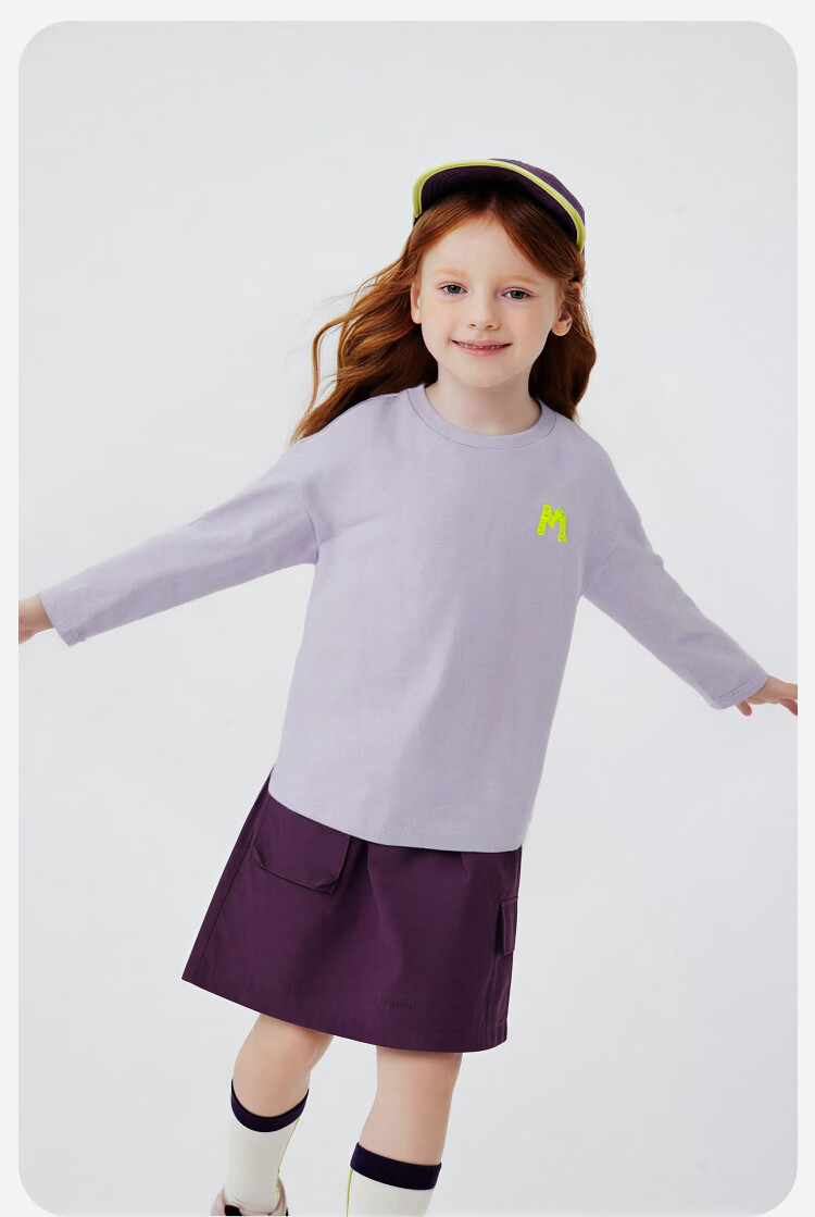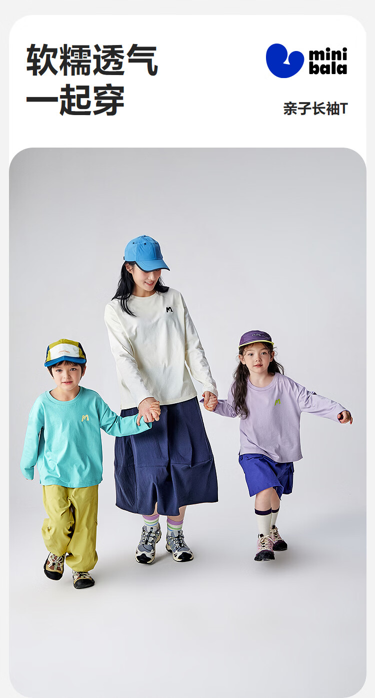 Minibala (minibala) boys and girls parent-child pure cotton long-sleeved T-shirt spring new skin-friendly breathable, durable and not easy to deform top blue purple 70216 160