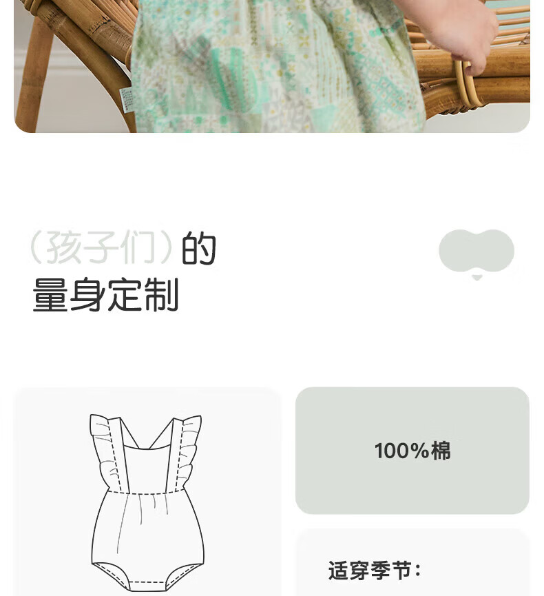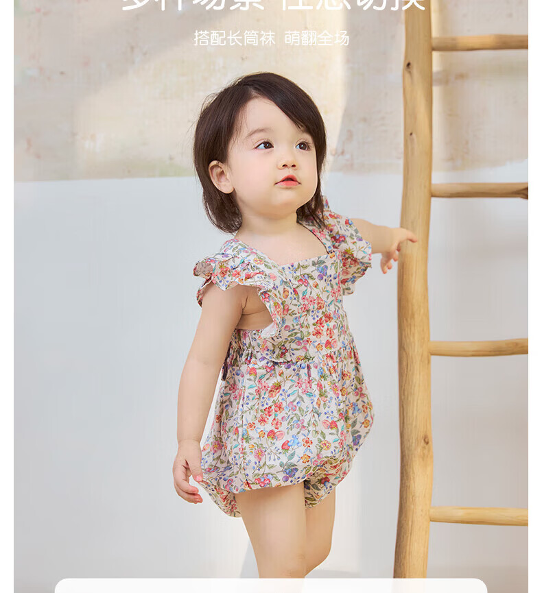 Nido Bear's new summer baby onesie with fart cover for baby girl pure cotton crawling suit triangle suit cute forest trip 73cm