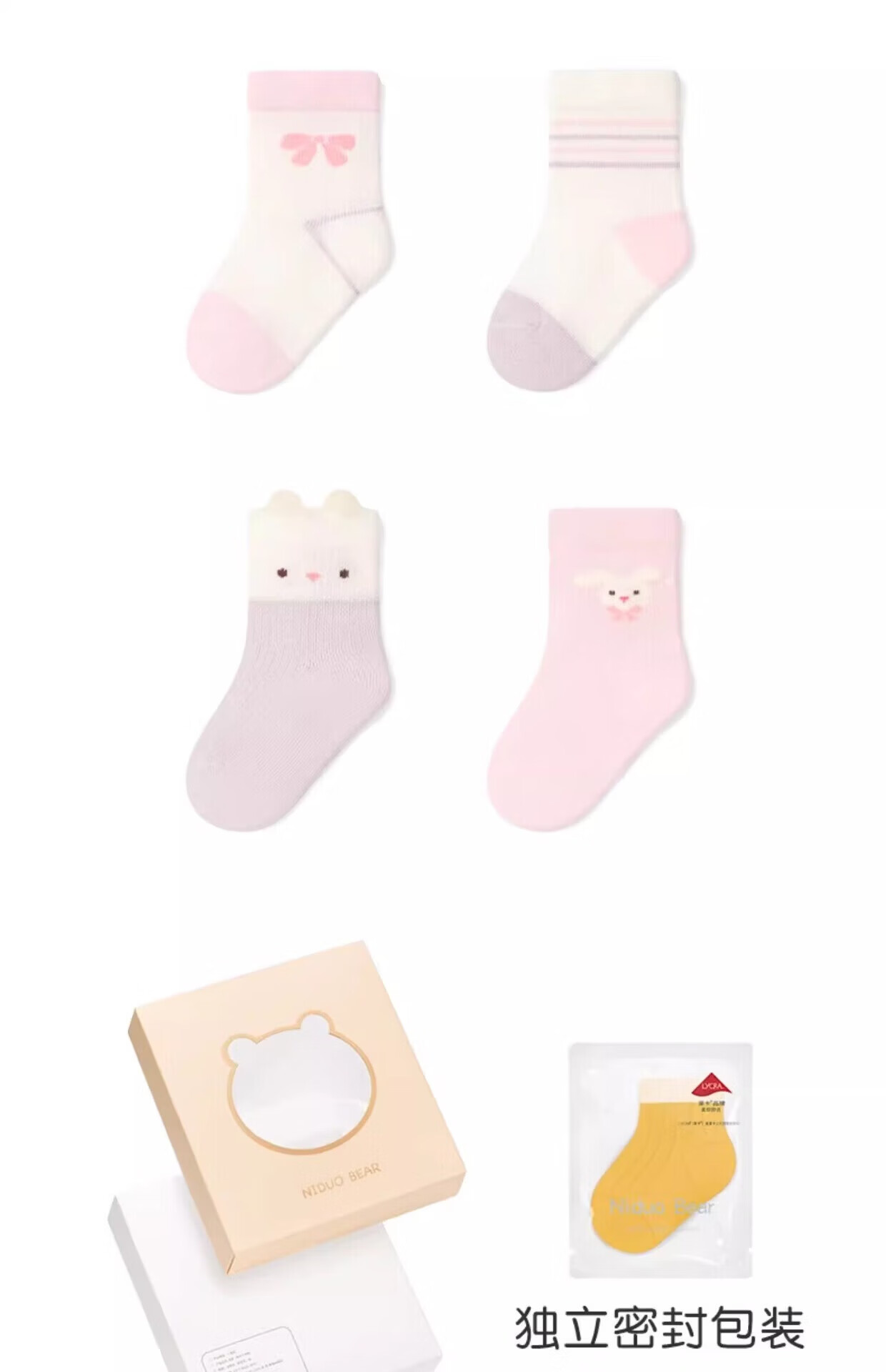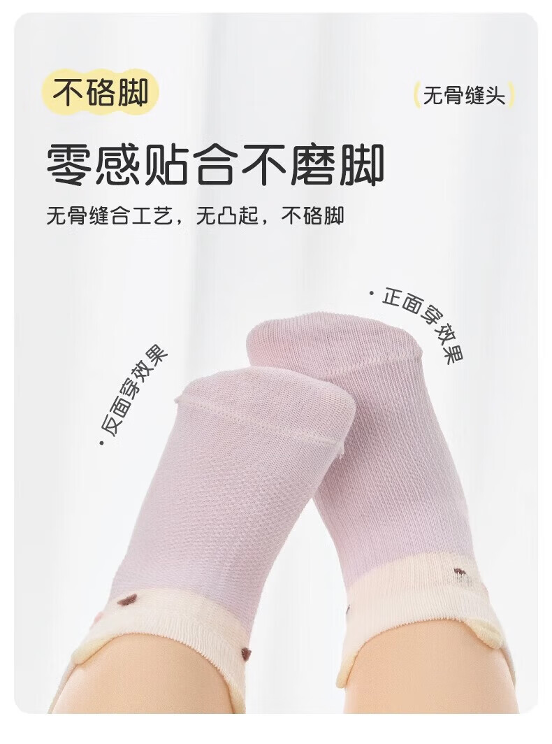 Nido Bear baby socks spring and summer thin cotton socks baby breathable mesh socks girls boneless socks children's socks S4013 mesh 4 pairs 6-12 months (suitable for feet length 9-11cm)