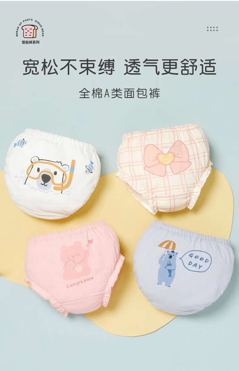 Nido Bear infant cotton panties children's summer male and female baby shorts triangle children's underwear TB584 (training pants) 3 pairs 80 Recommended weight 15-20 Jin Jin equals 0.5 kg
