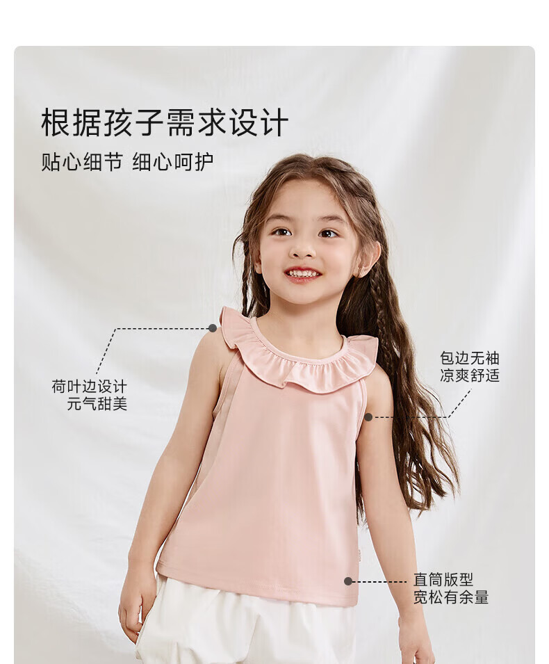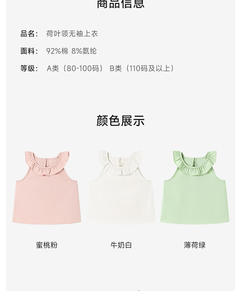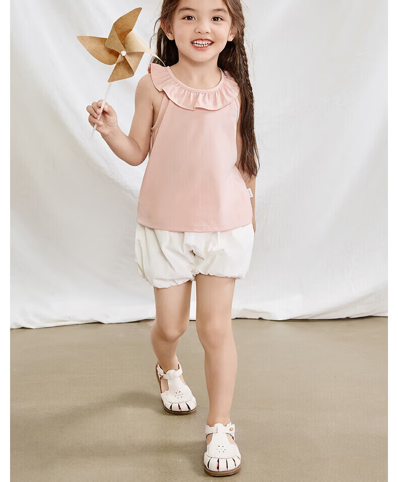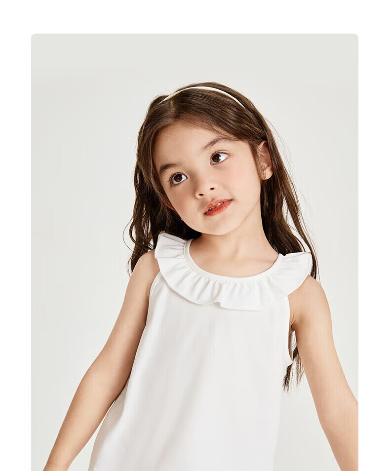 Nido Bear Summer New Product Girls Ruffled Sleeveless Vest Baby Girl Soft Breathable Top Suspender Milk White 90