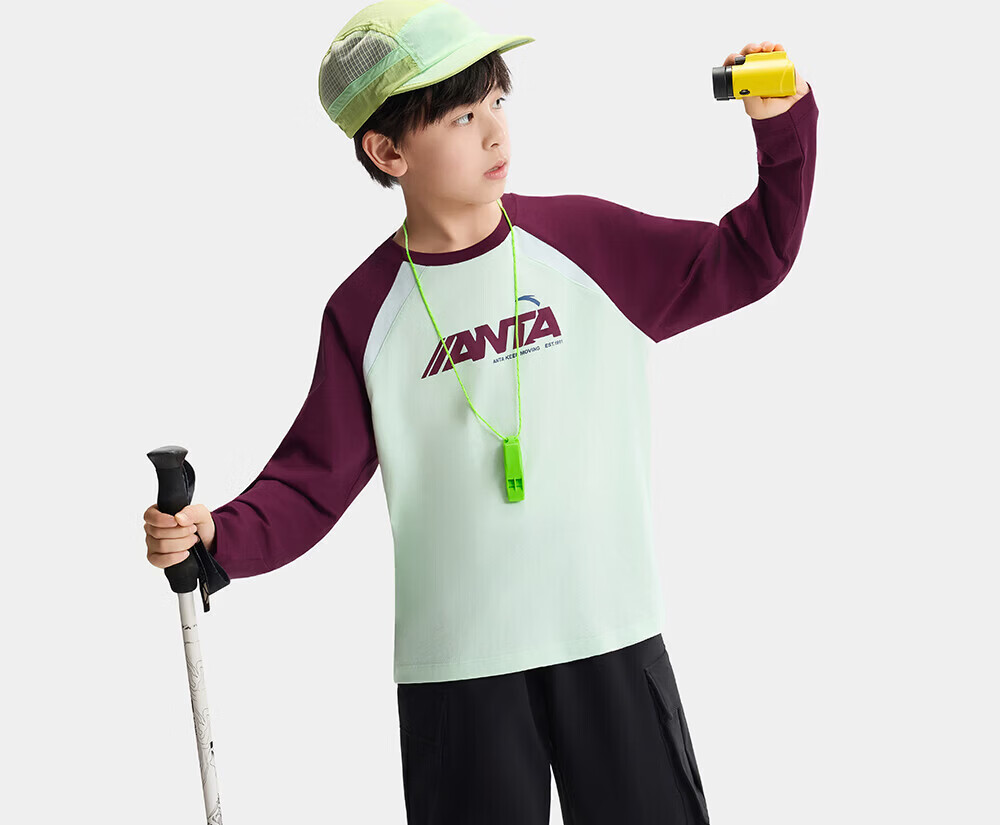 ANTA Children's Pure Cotton Long-Sleeved T-Shirts for Boys and Girls Knitted Long-Sleeved Shirts 2026 Spring and Autumn New Teenagers New Year's Clothes Spring and Autumn Long T-Shirts Eagle Feather Gray 5401-3 100 cm Children