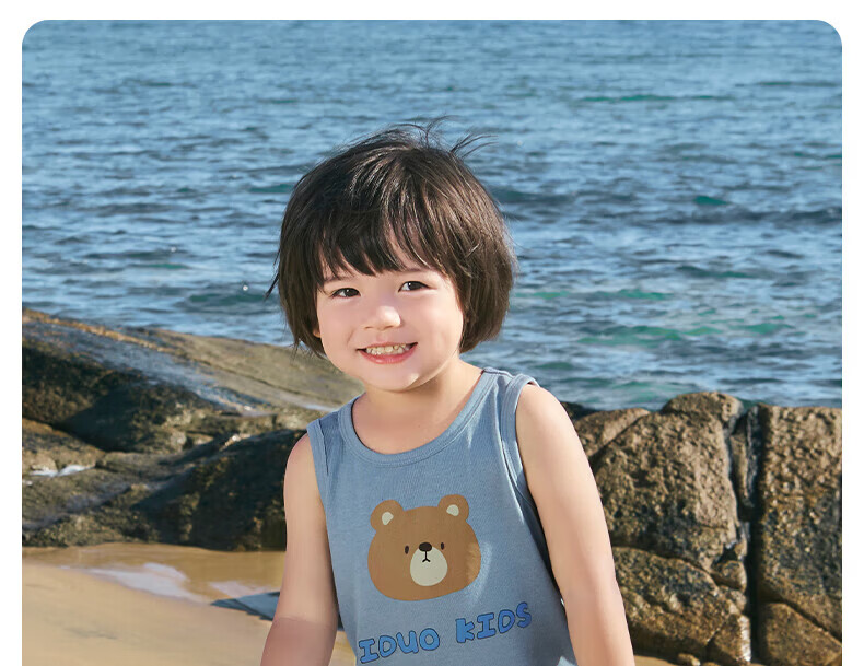 Nido Bear Lyocell Summer New Children's Sports Vest Men's and Women's Baby Cute Cartoon Vest Blue Bear 80