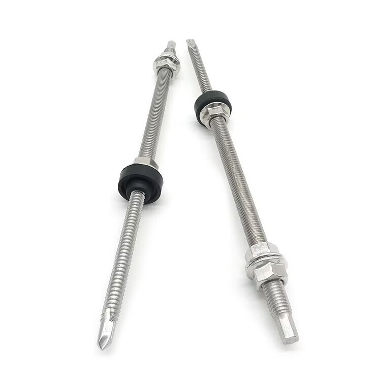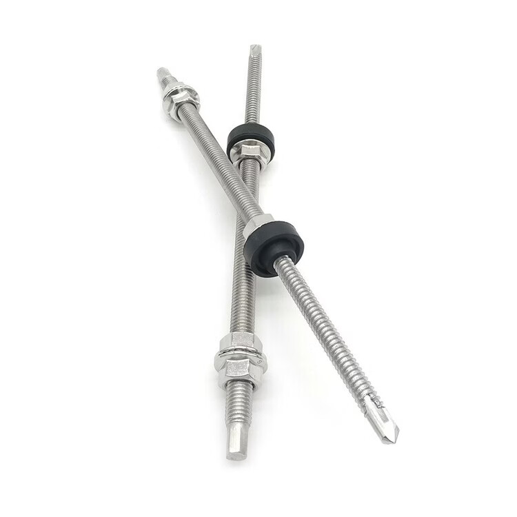 He Jiangong Solar Double-headed Double-Thread Bolt Screw Connection Fixed Photovoltaic Bracket Accessories 304 Stainless Steel Double-Thread Screw M10*200 (Drilling Tail Screw) 20 pieces