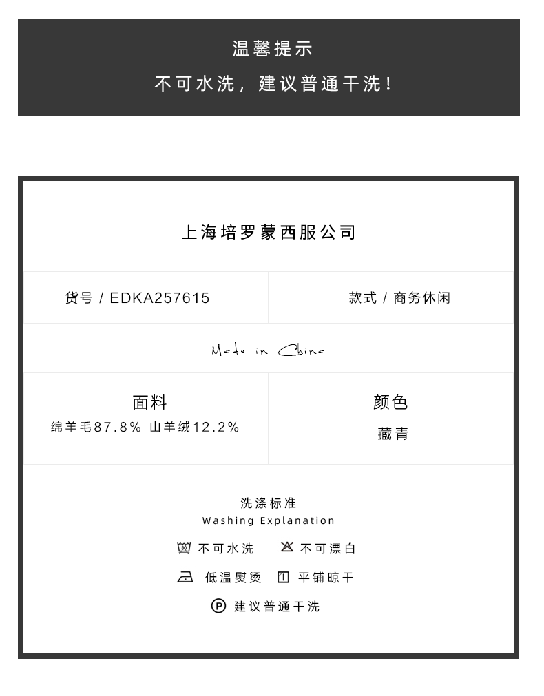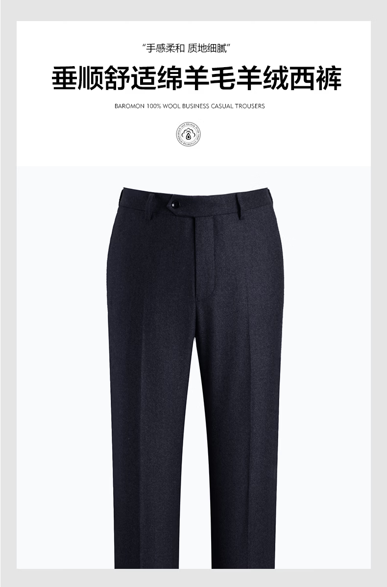 Peromont Cashmere + Sheep Wool Men's Winter Thickened Warm Suit Pants Straight Cashmere Men's Pants Navy Blue 33 - Waist 86.7 cm