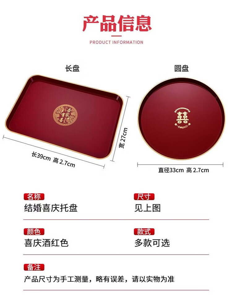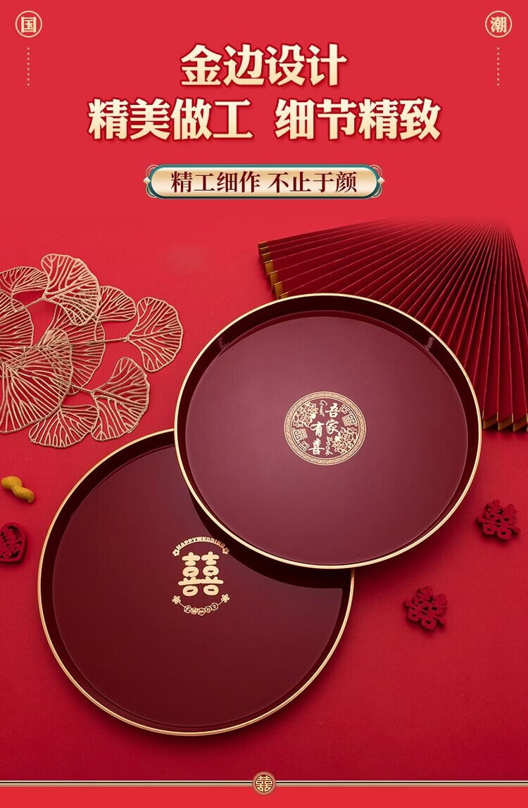 Pupan Plastic Burgundy Wedding Tray Wedding Tea Tray Wedding Tray Candy Bridal Wedding Toast Tea Tray Hotel Use Phnom Penh Big Day Disc 2 pcs