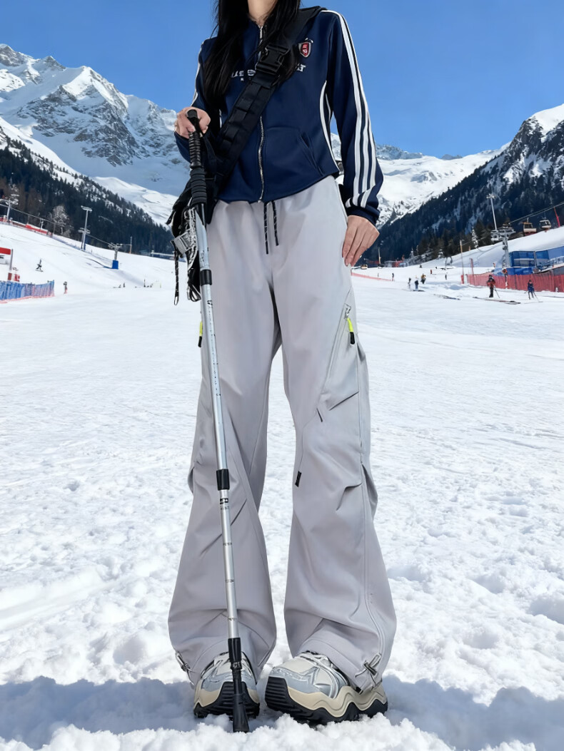 Woodpecker Northeastern Subzero Wearable Men's and Women's Skiing Same Style Autumn and Winter Velvet Thickened Pleat Paratrooper Workwear Mountaineering Outdoor Pants Cloud Gray Regular Style XL
