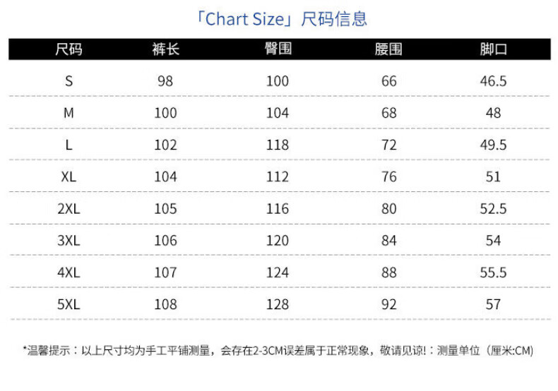 Outseam (cm) 99 cm 101.5 cm 104 cm 106.5 cm 109 cm