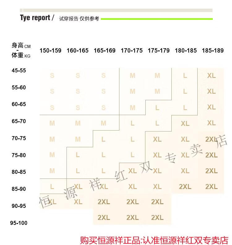 China (cm) 165 / 88-90 170 / 96-98 175 / 108-110 180 / 118-122 185 / 126-130