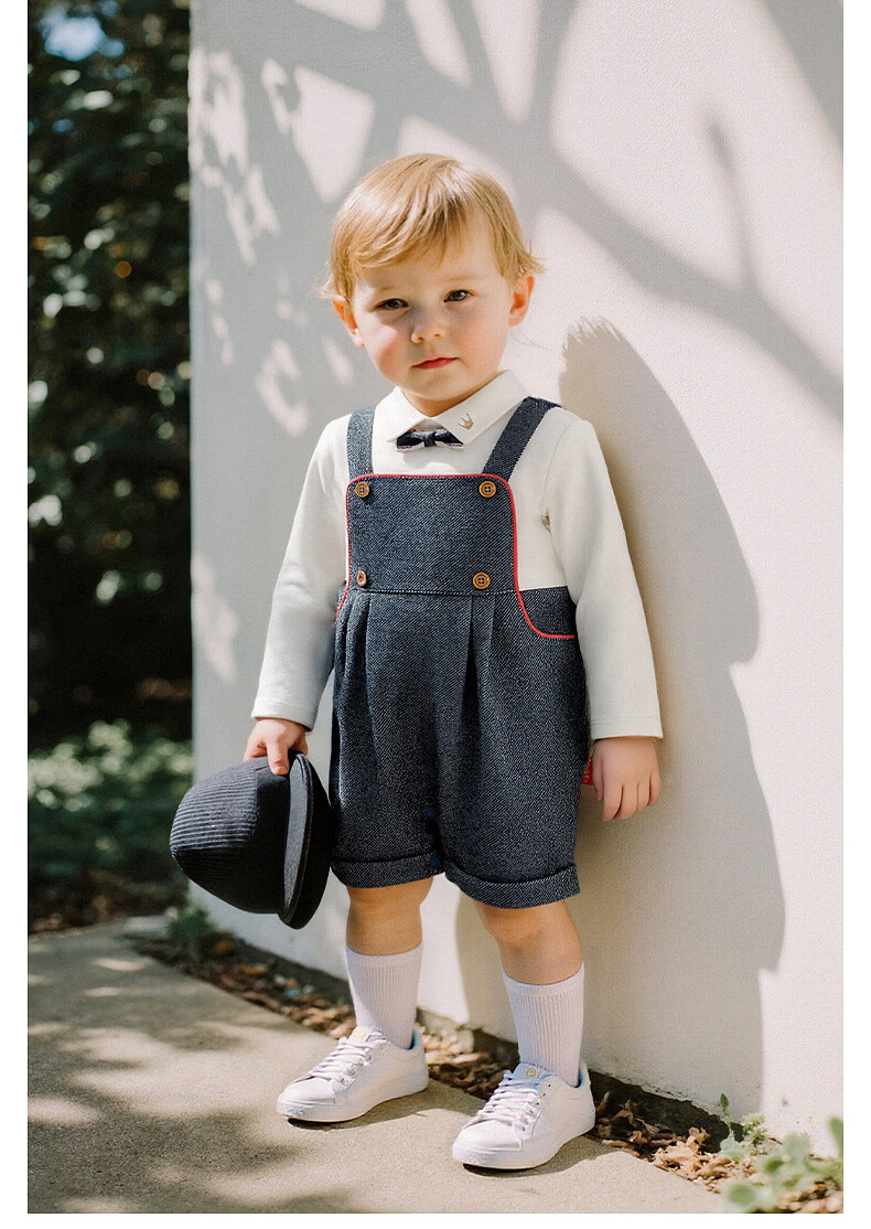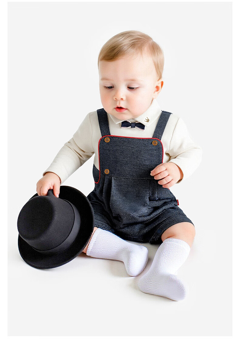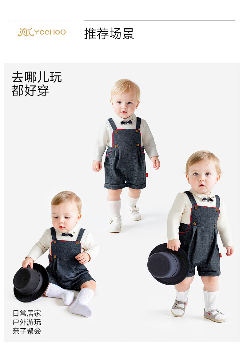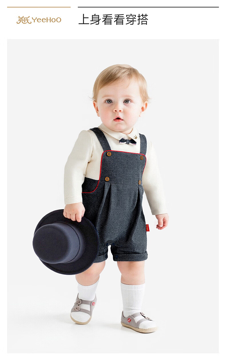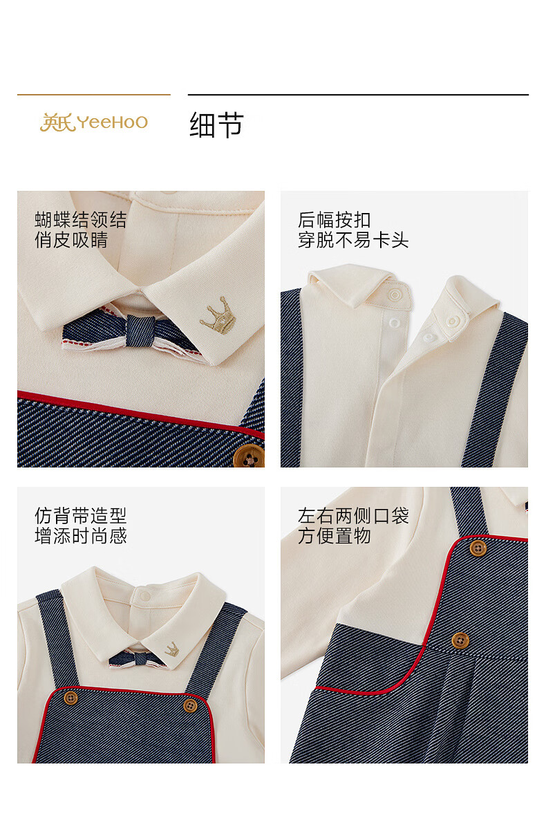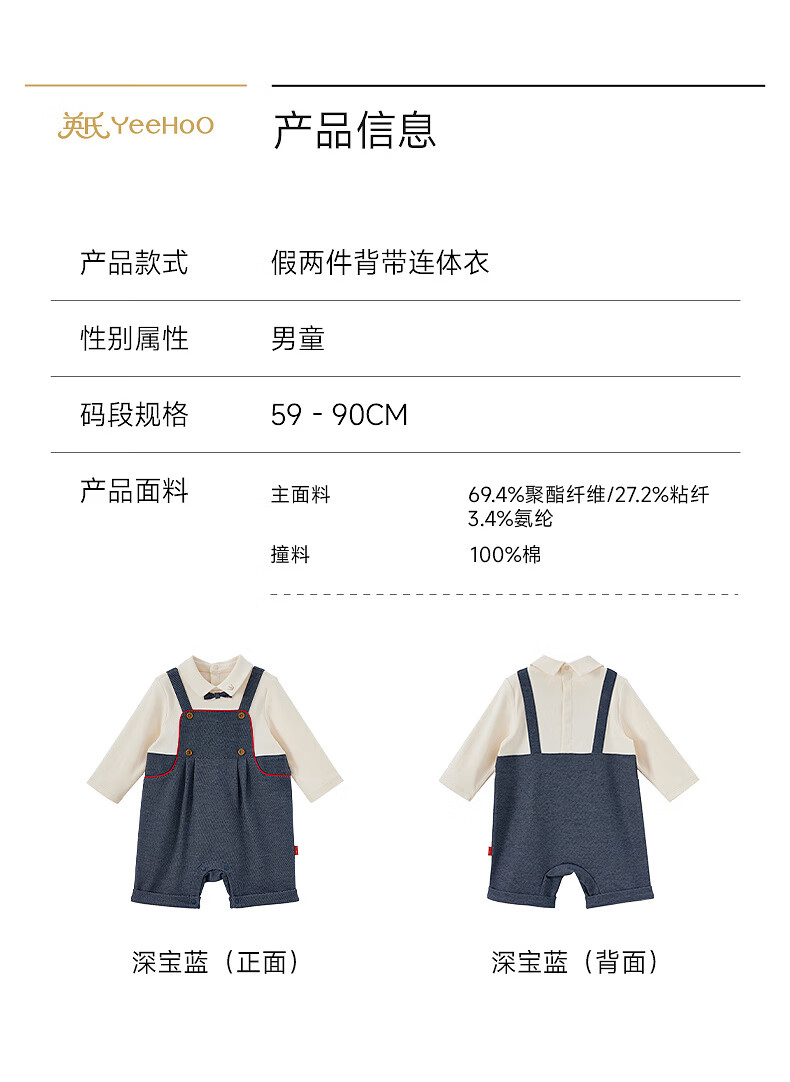 YEEHOO shopping mall same style newborn clothes for boys, handsome little prince imitation denim harem clothes, deep sapphire blue 90cm