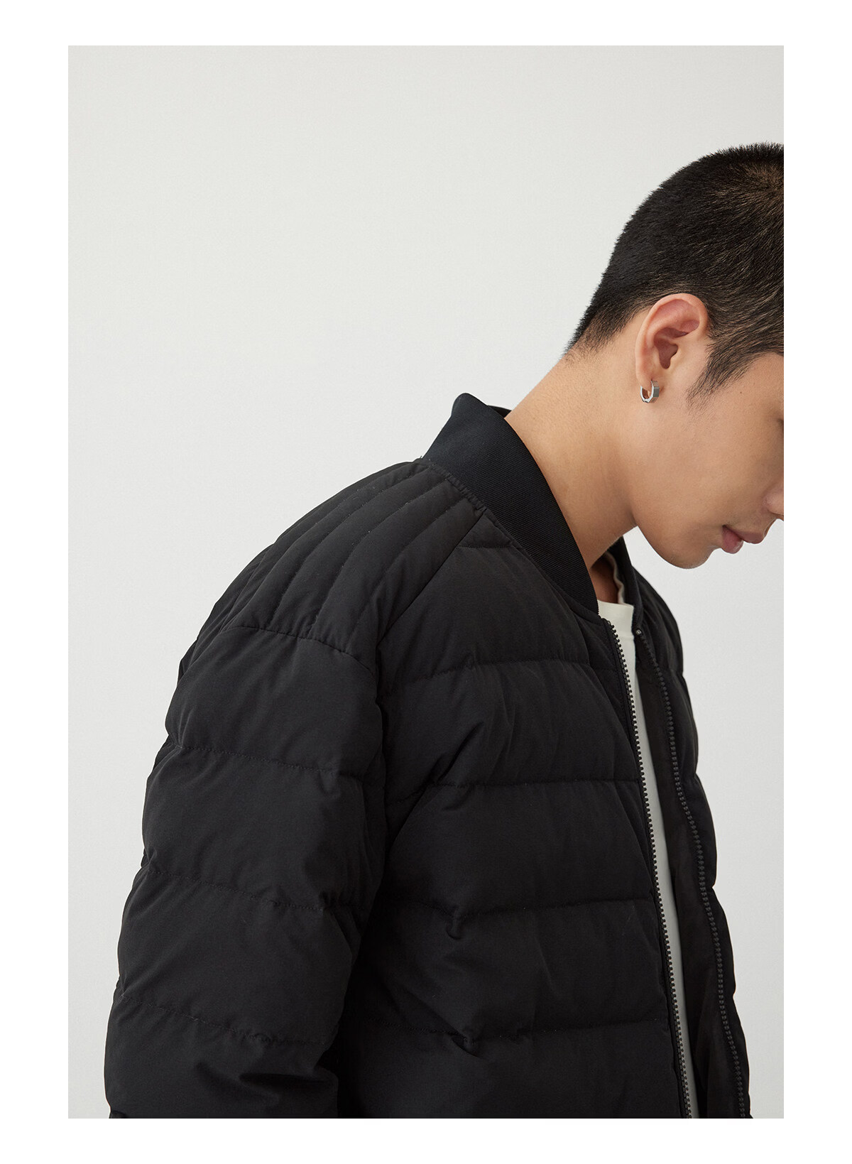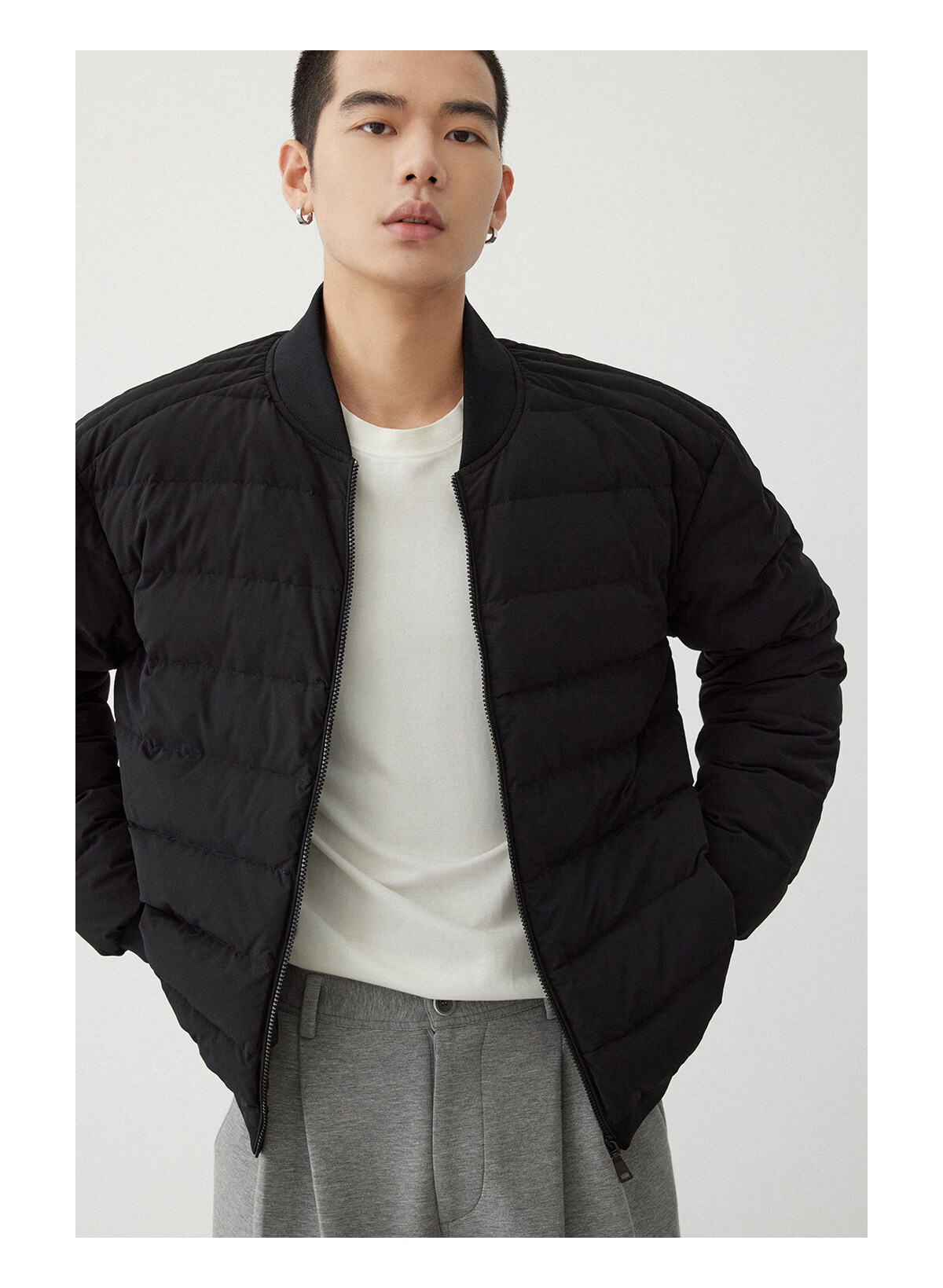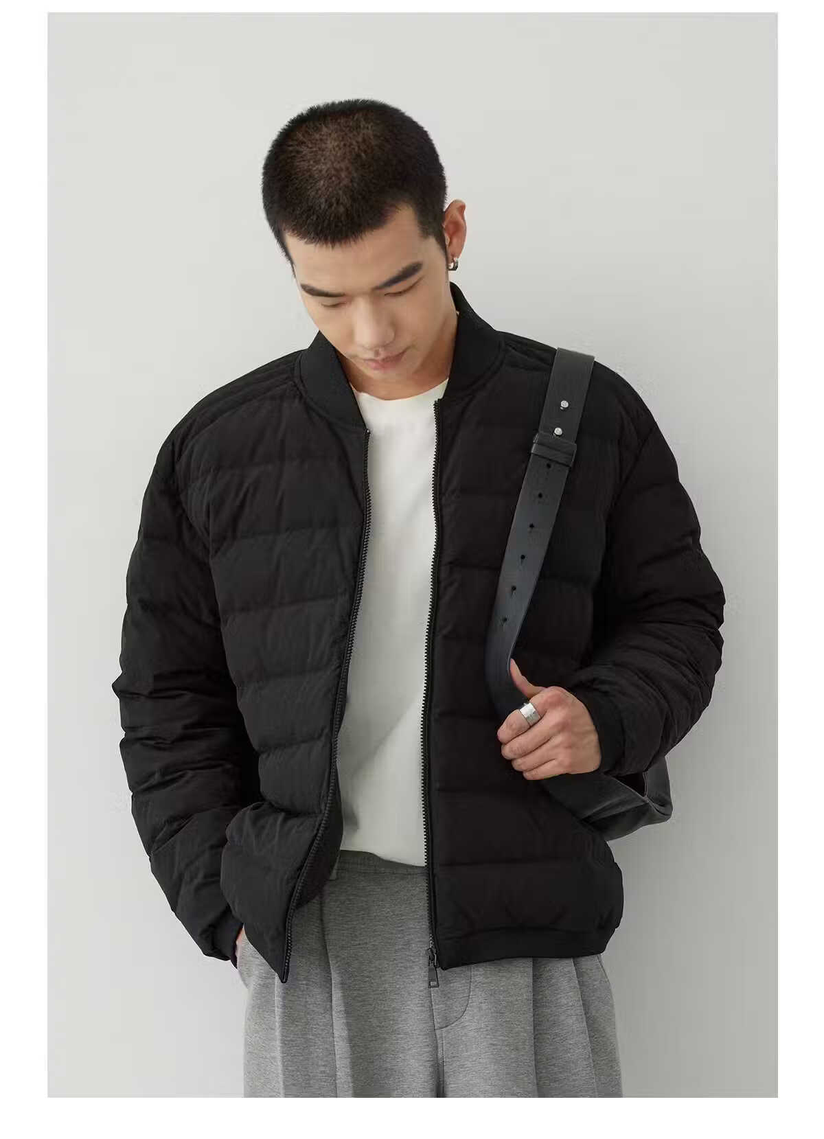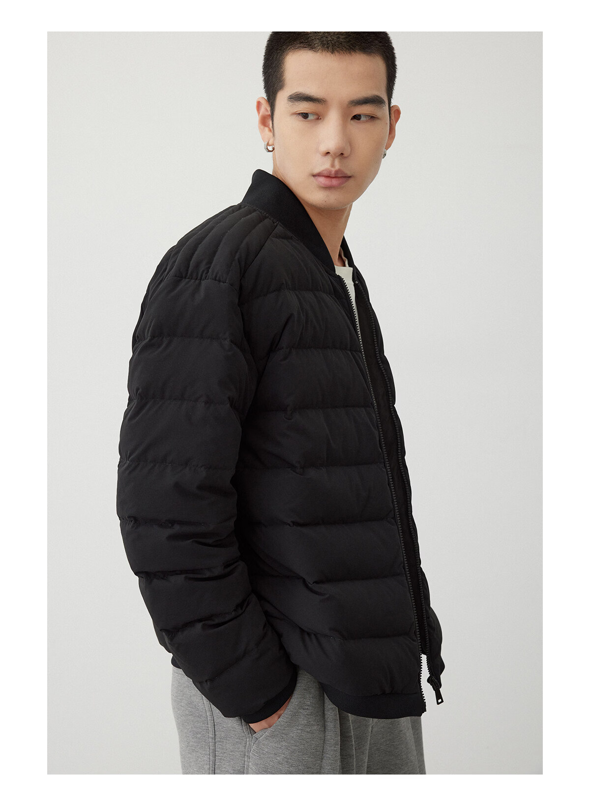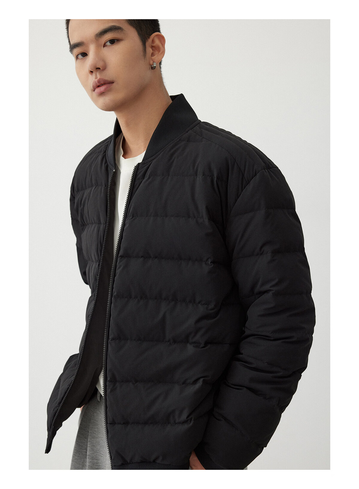 OSENS men's four-way elastic 90 velvet winter lightweight men's baseball collar jacket rib style down jacket classic black XL (180/100A)