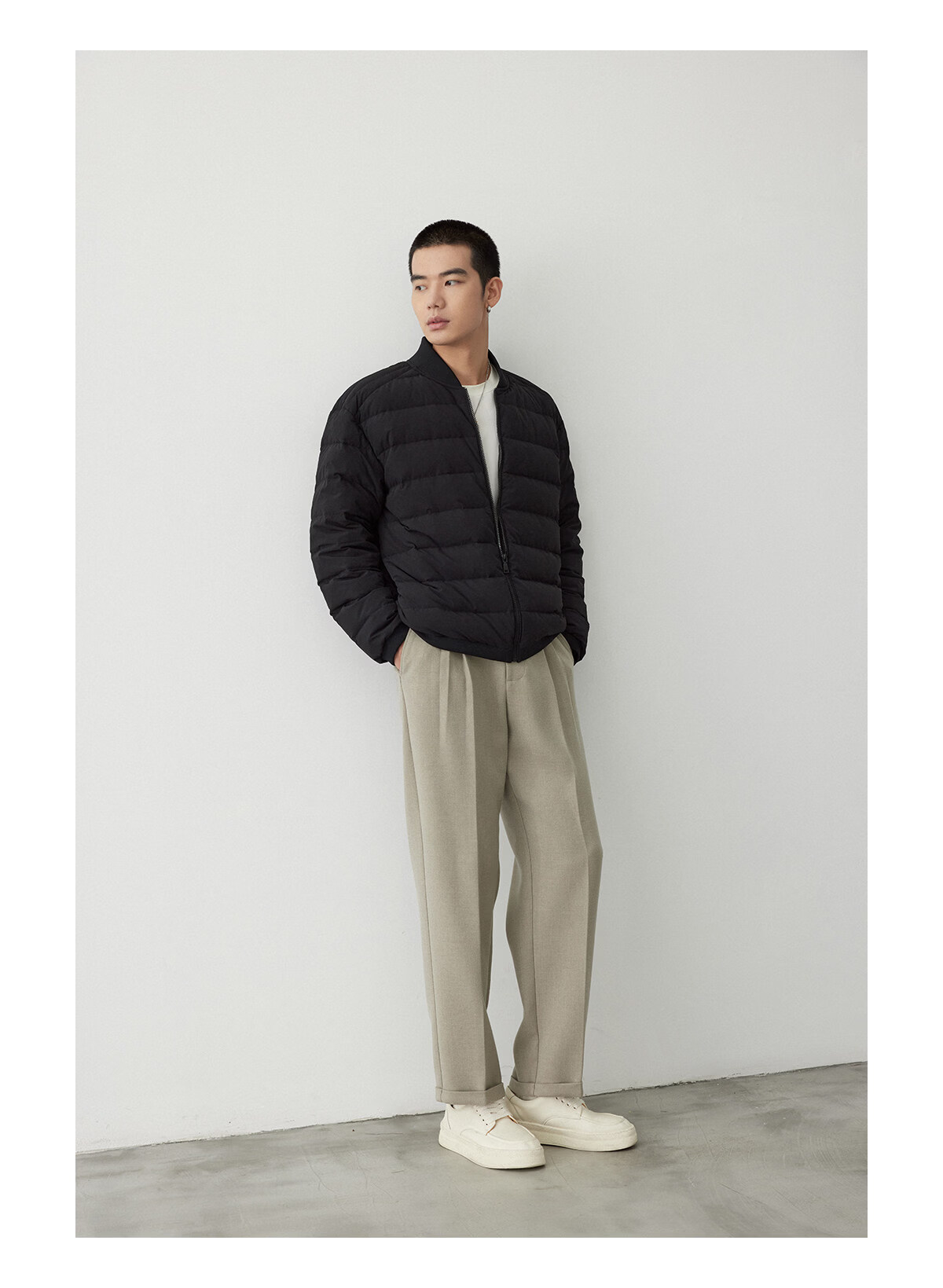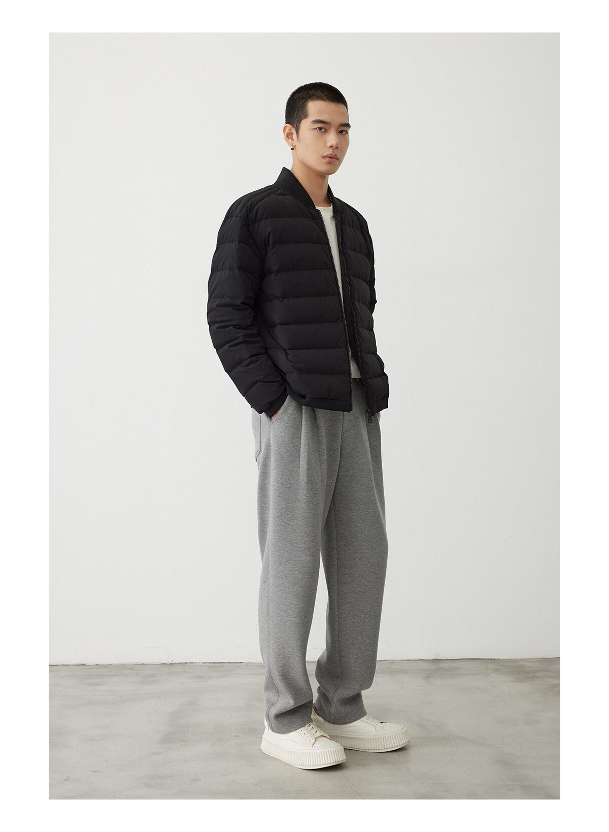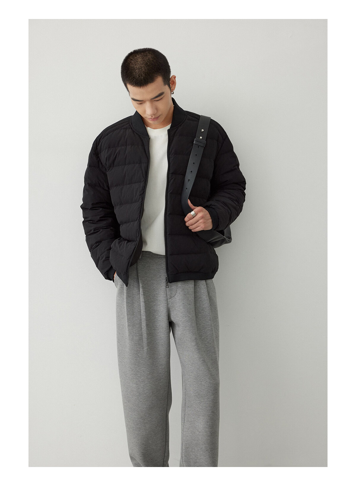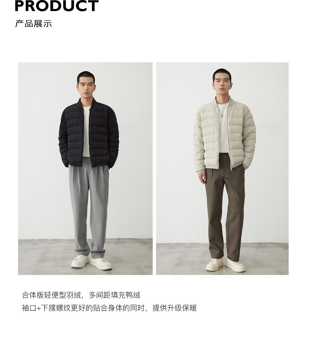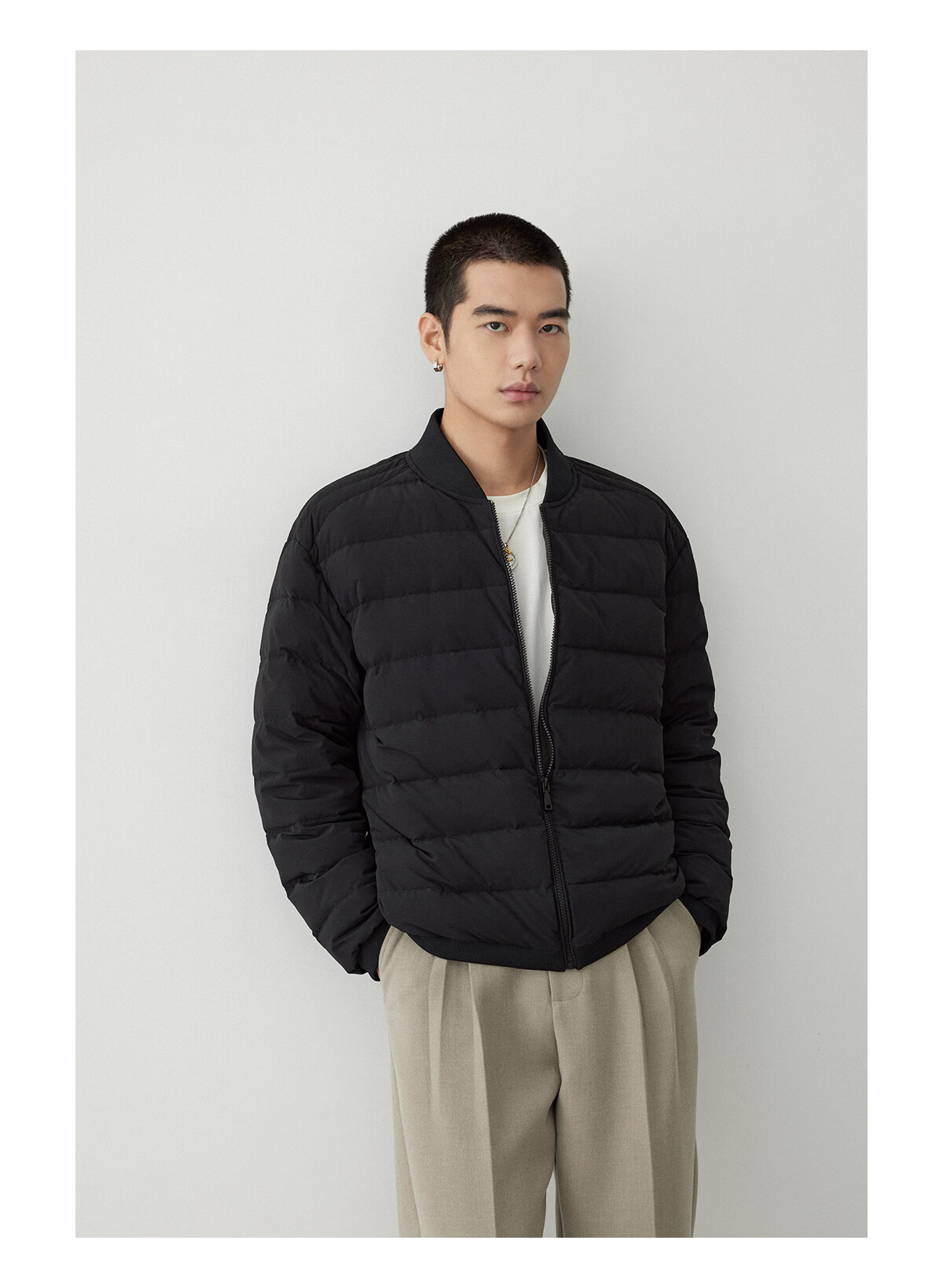 OSENS men's four-way elastic 90 velvet winter lightweight men's baseball collar jacket rib style down jacket classic black XL (180/100A)