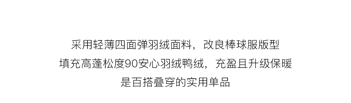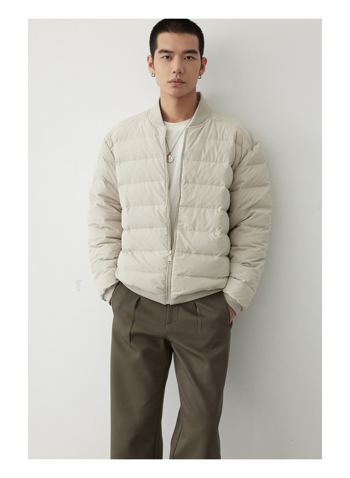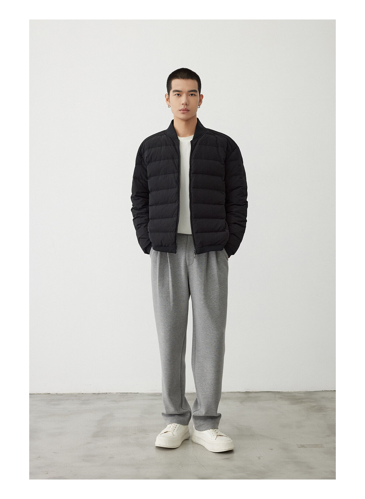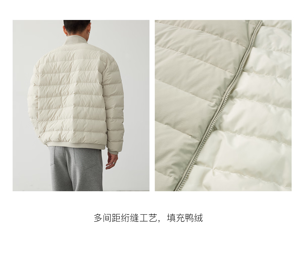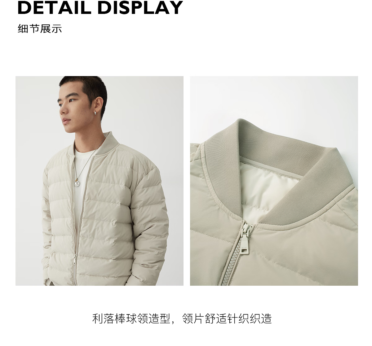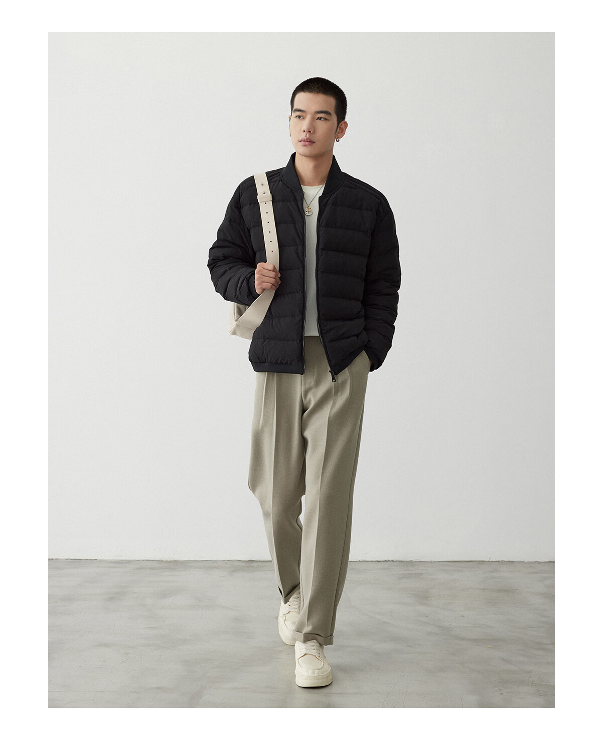 OSENS men's four-way elastic 90 velvet winter lightweight men's baseball collar jacket rib style down jacket classic black XL (180/100A)