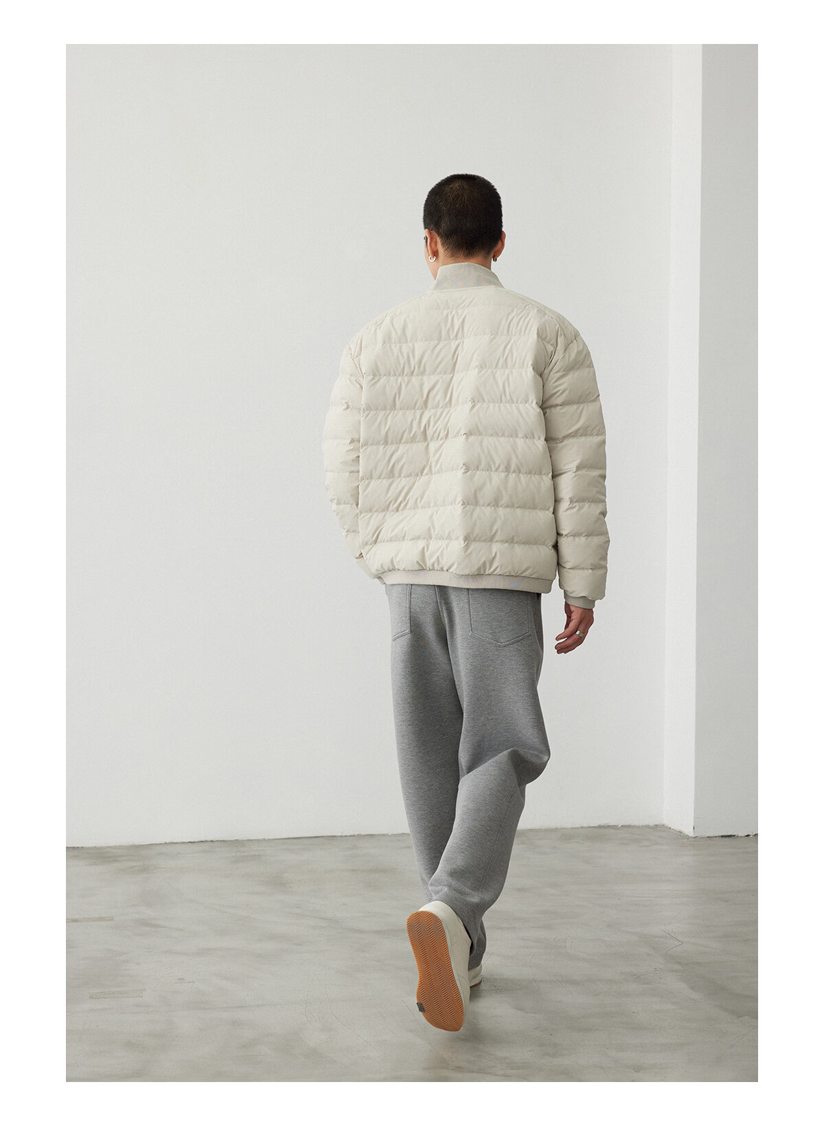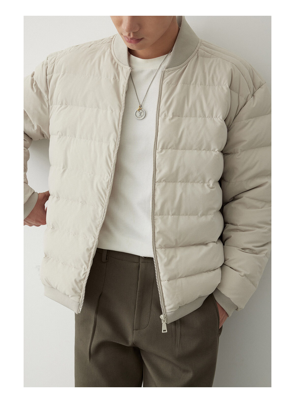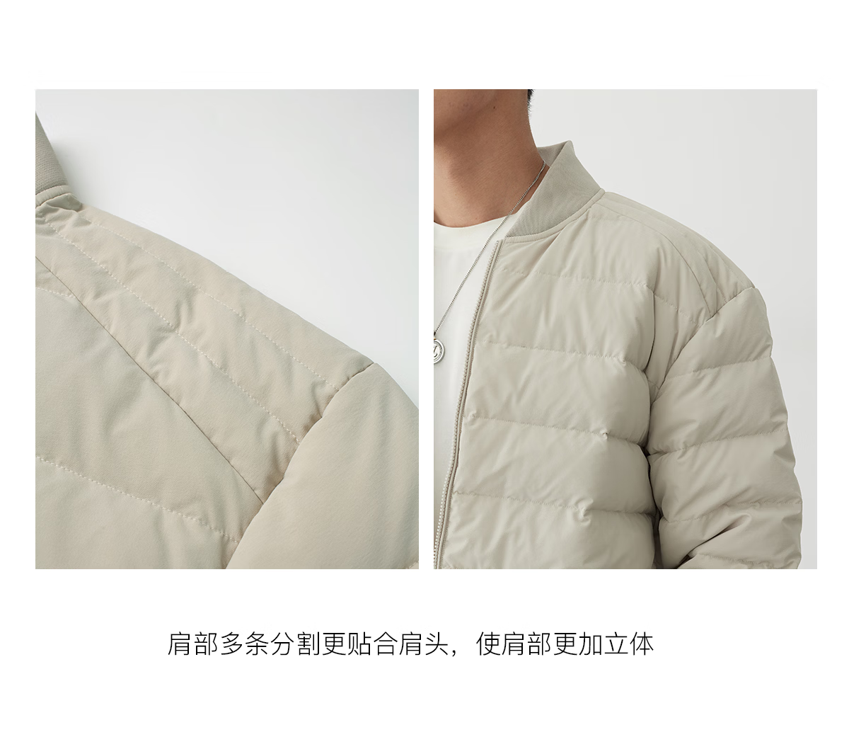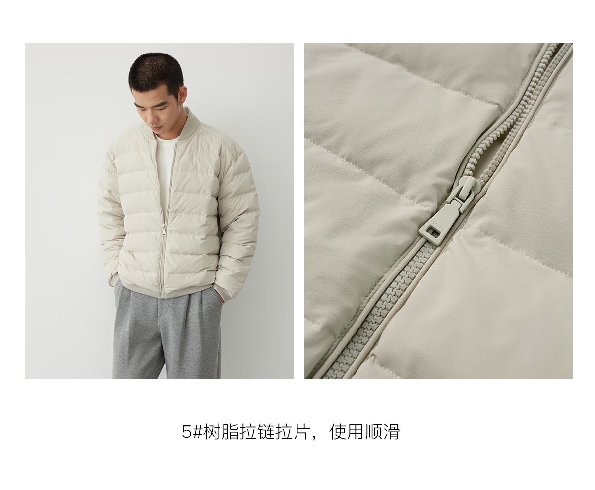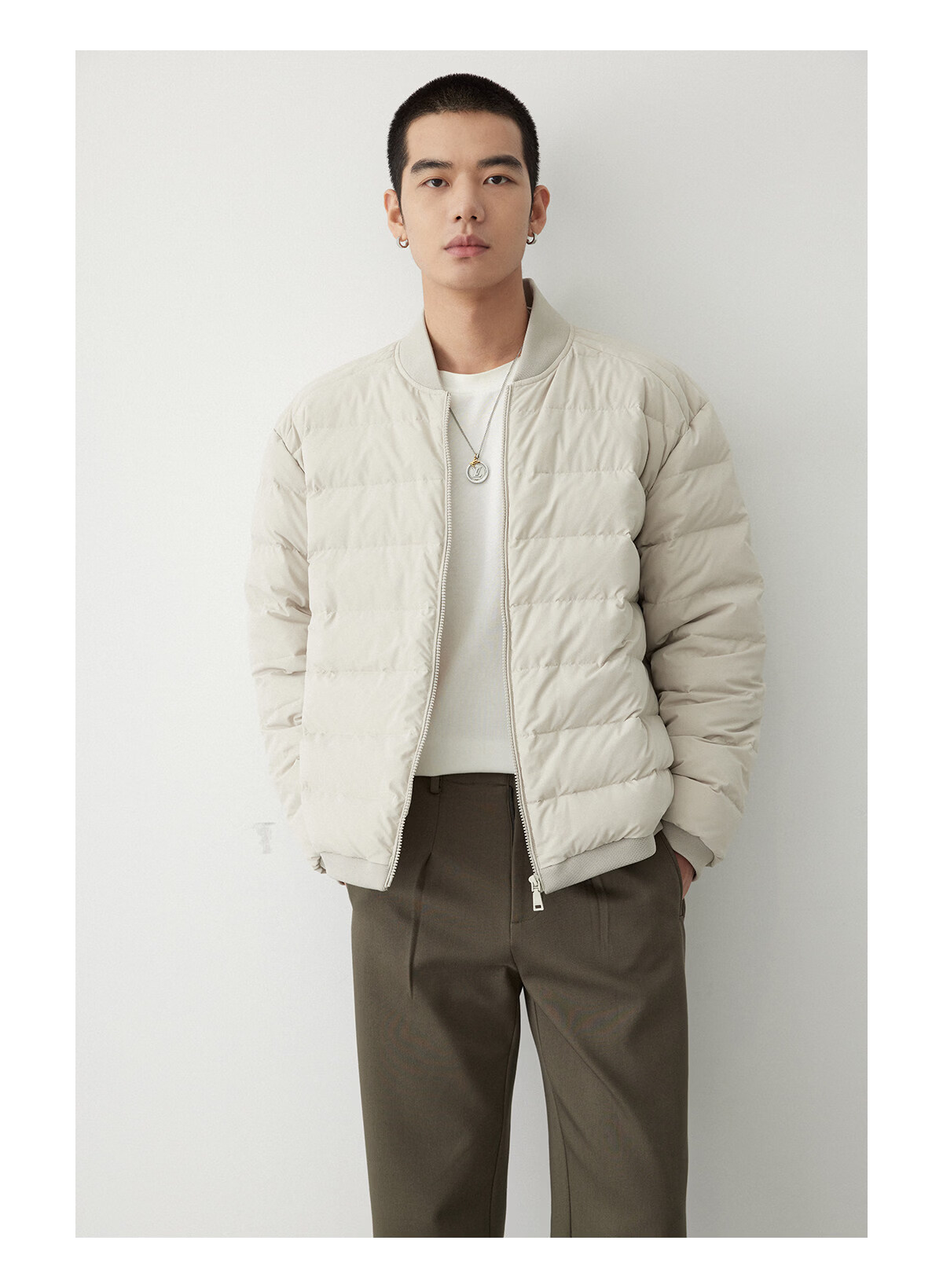 OSENS men's four-way elastic 90 velvet winter lightweight men's baseball collar jacket rib style down jacket classic black XL (180/100A)