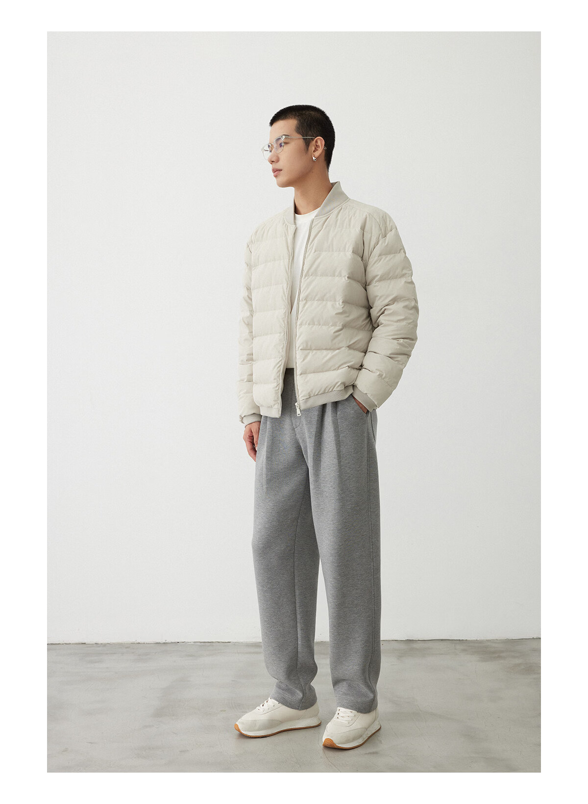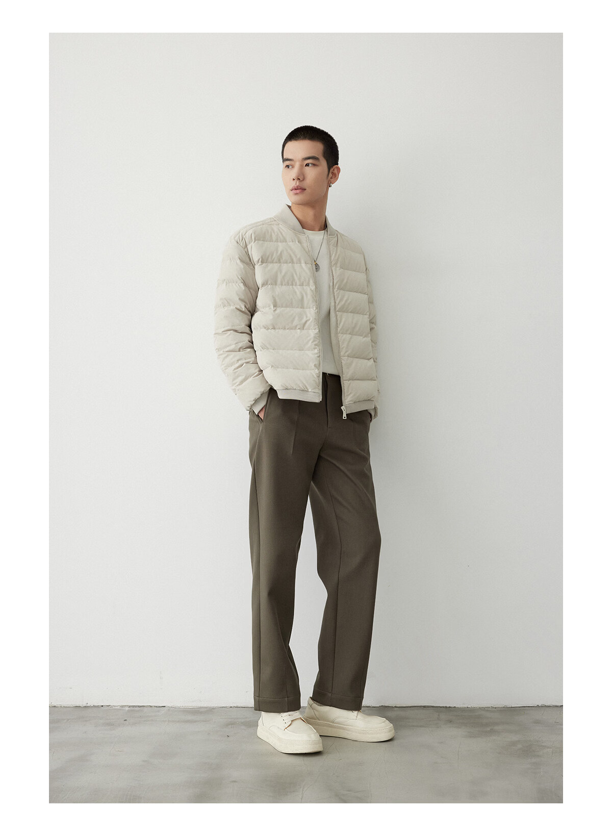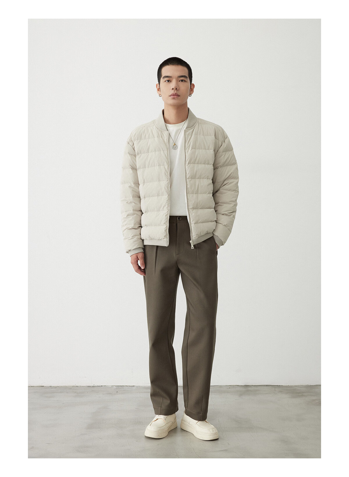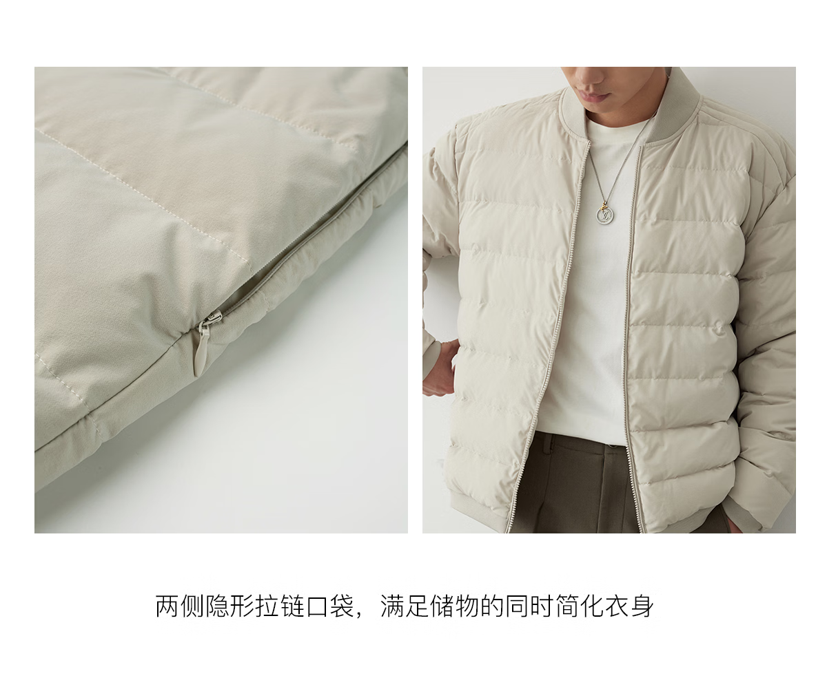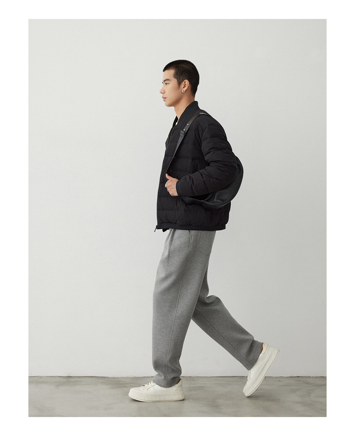 OSENS men's four-way elastic 90 velvet winter lightweight men's baseball collar jacket rib style down jacket classic black XL (180/100A)