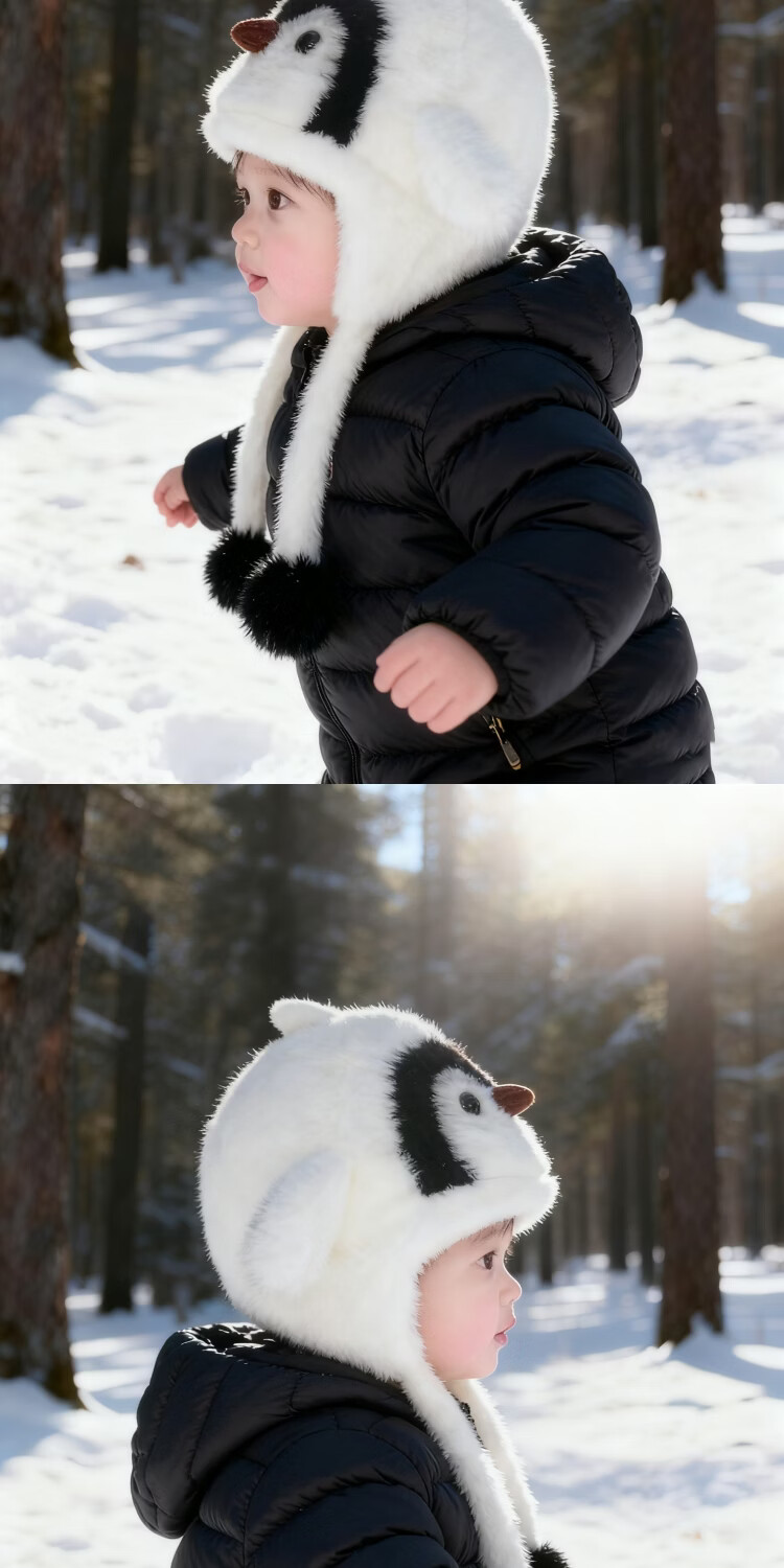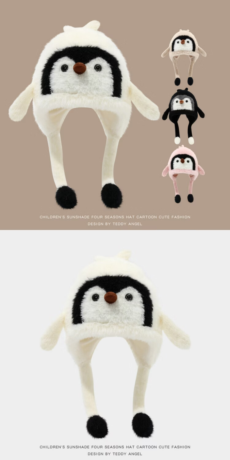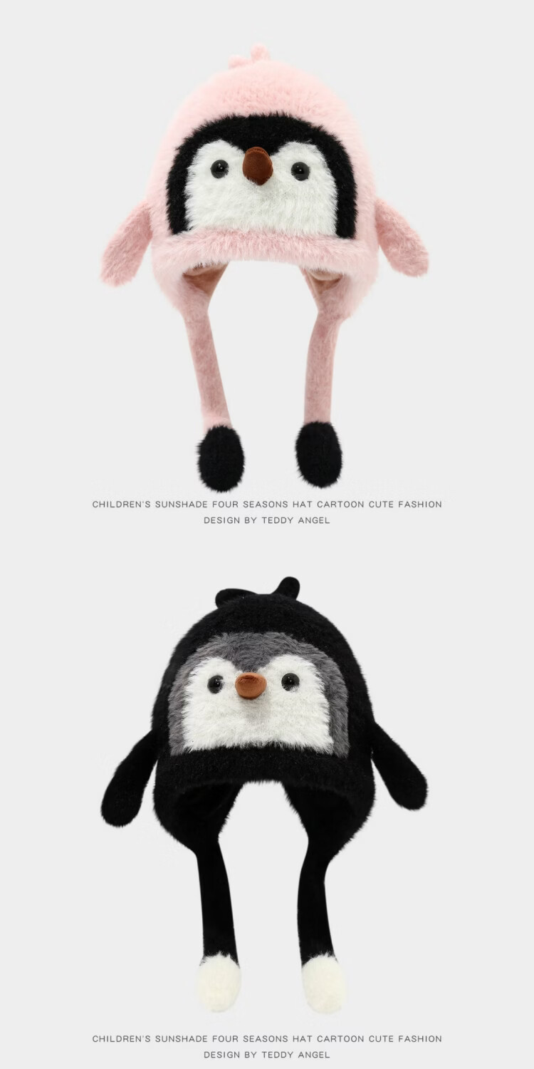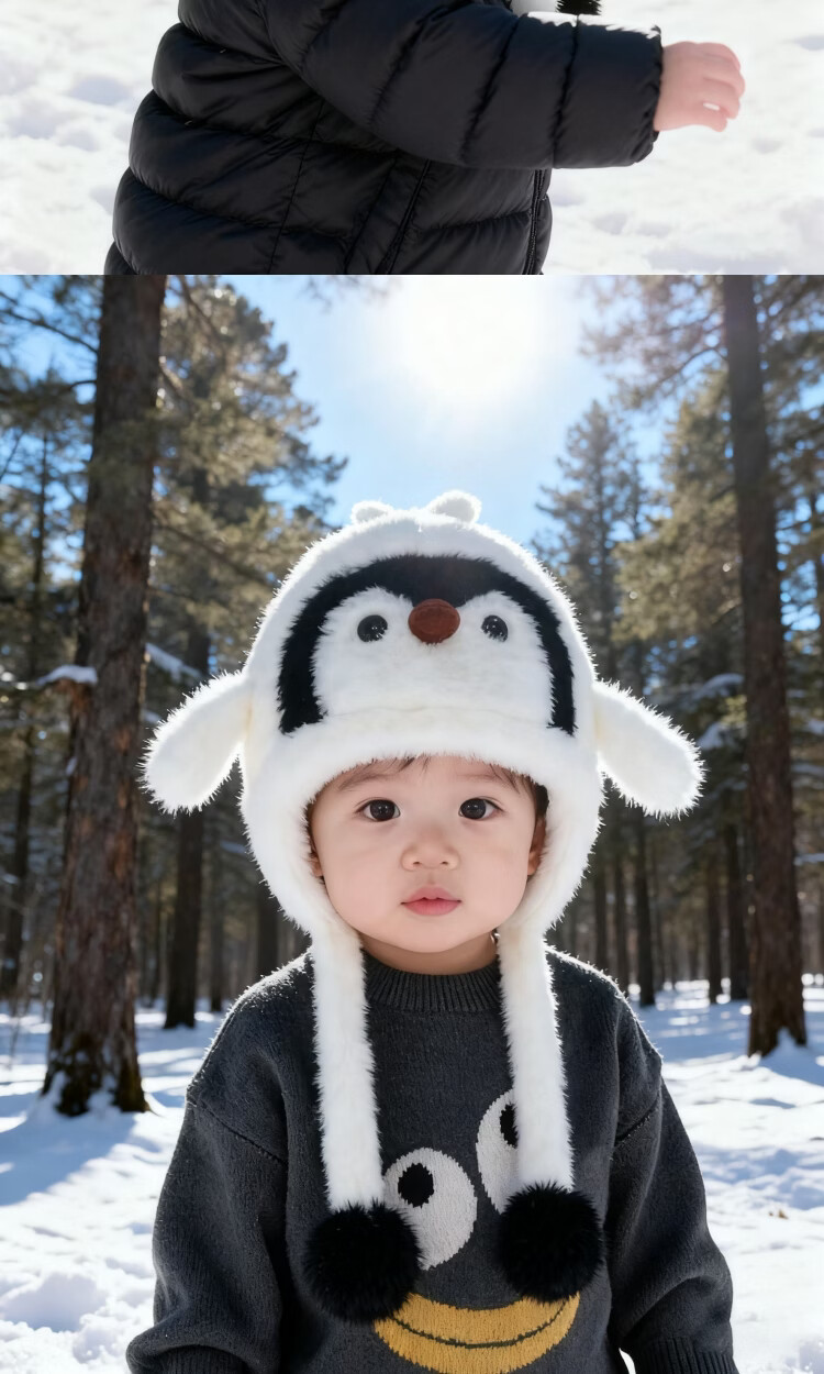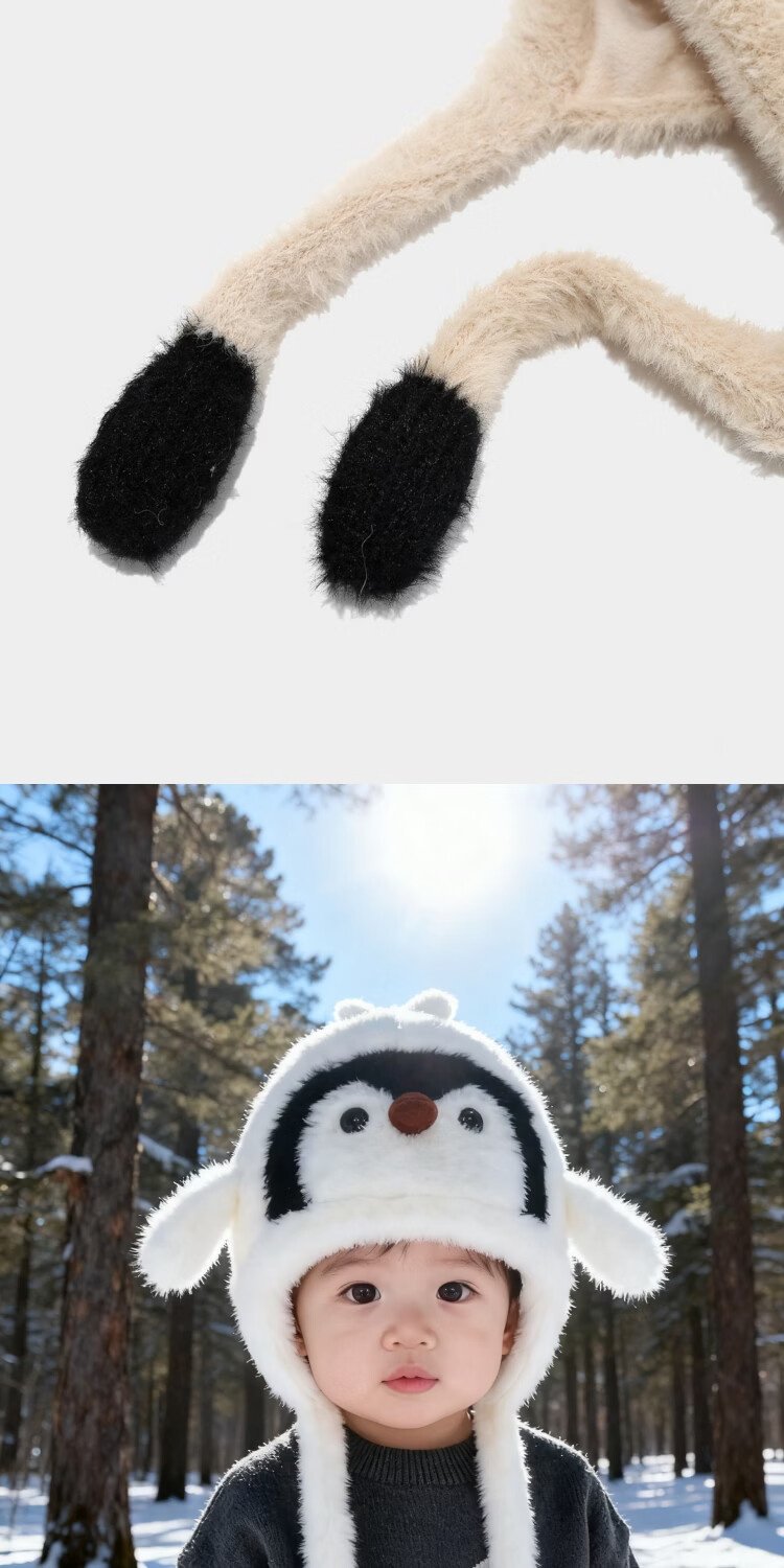 Jingqi Baby Hat Autumn and Winter Children's Plush Warm Ear Protection Hat Infant and Toddler Cute Cartoon Outing Plush Hat Black 48-52cm
