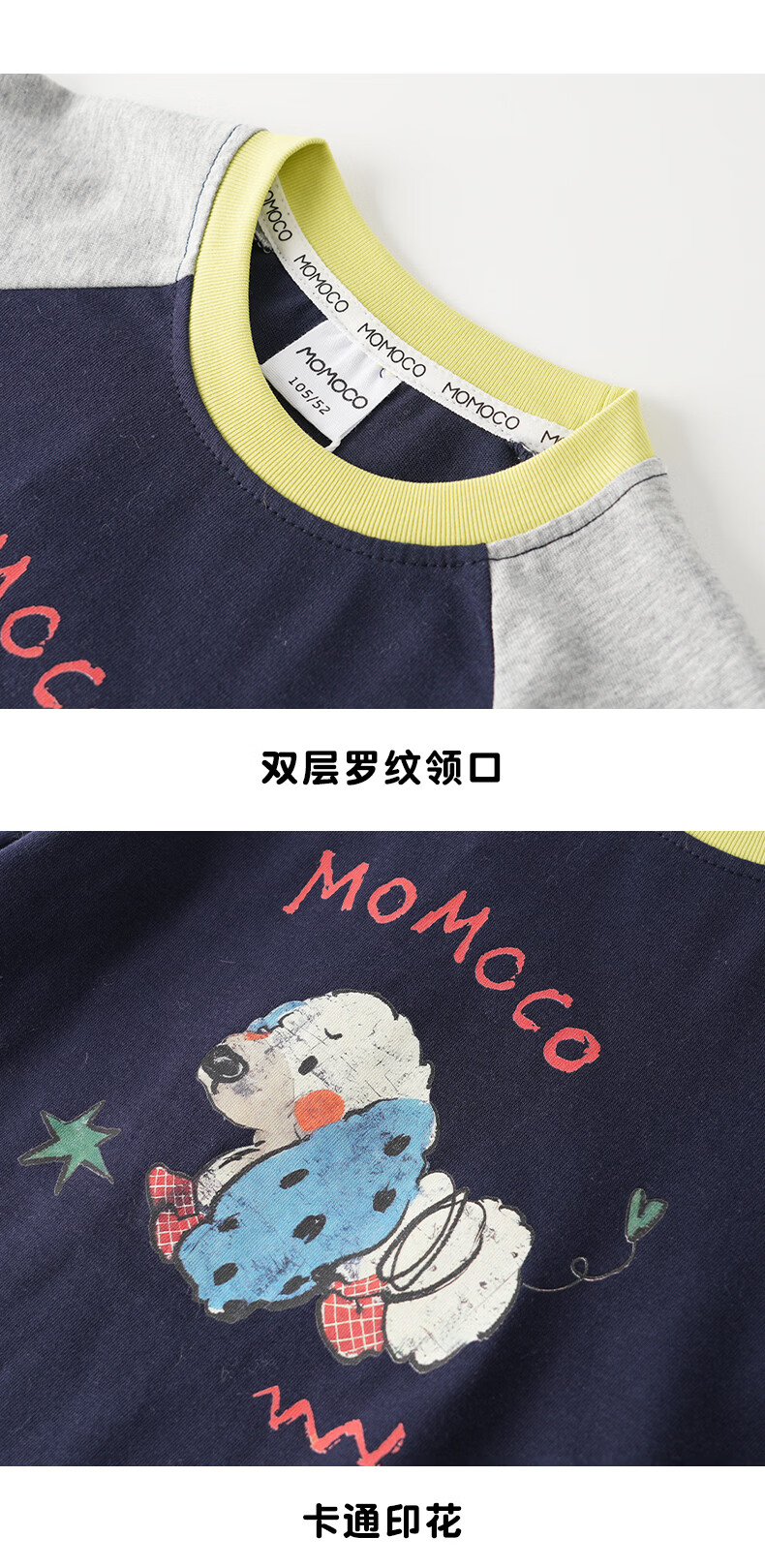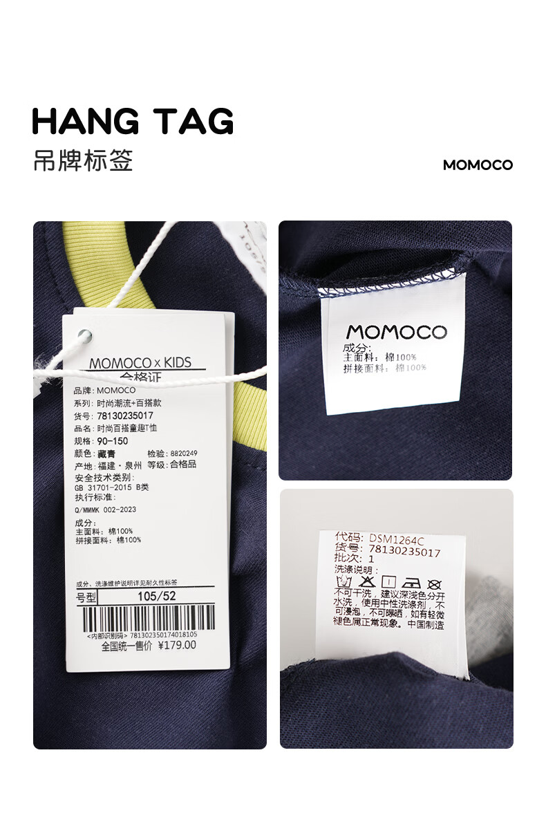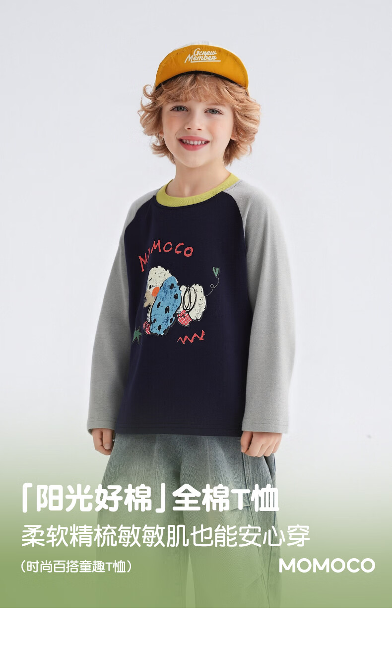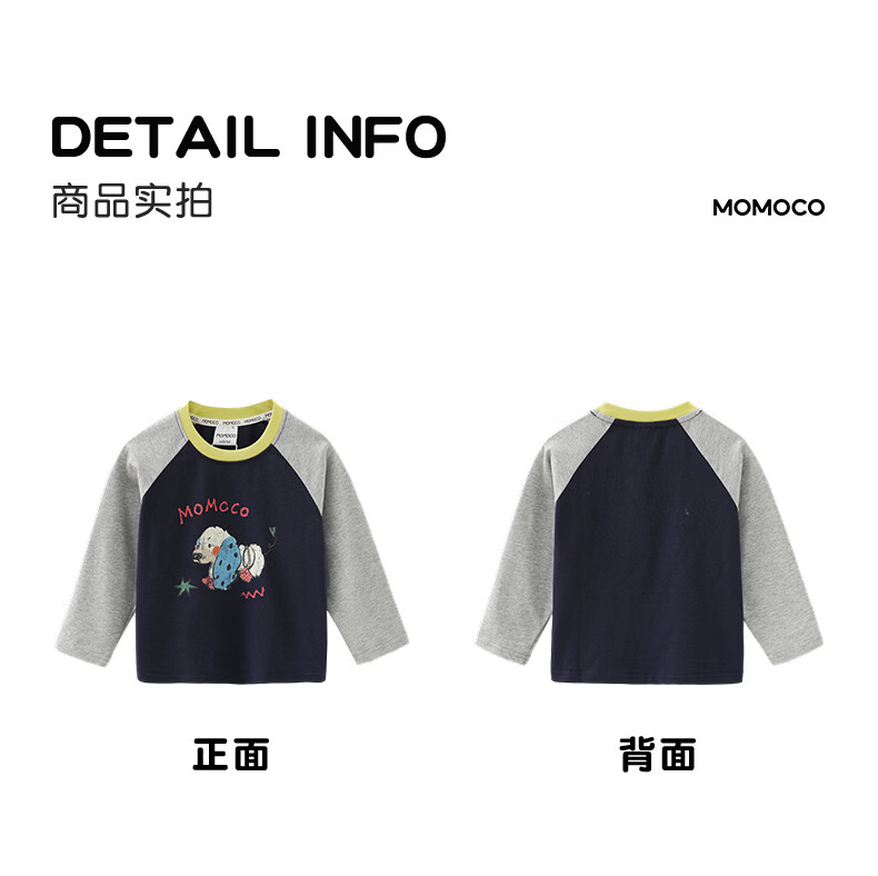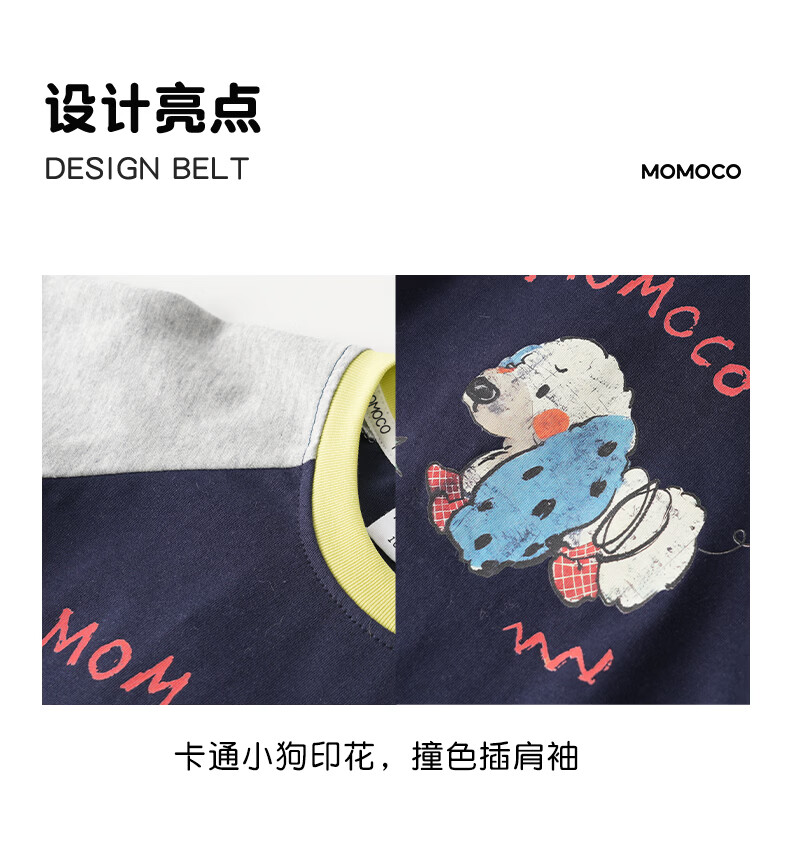 Mami Maka (MOMOCO) children's clothing boys' T-shirt 2026 spring style medium and large children's fashionable and versatile children's fun T-shirt Navy 120