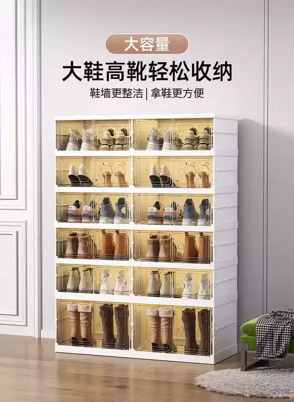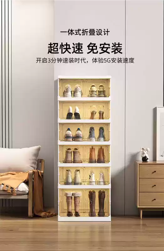 Yusenyi Shoe Cabinet Free of Installation and Folding Transparent Folding Shoe Rack Plastic Shoe Box Shoe Rack Storage Box Shoe Cabinet Light Luxury and High-Level Sense (First Best Selling Transparent) 6-layer Installation-Free Shoe Box