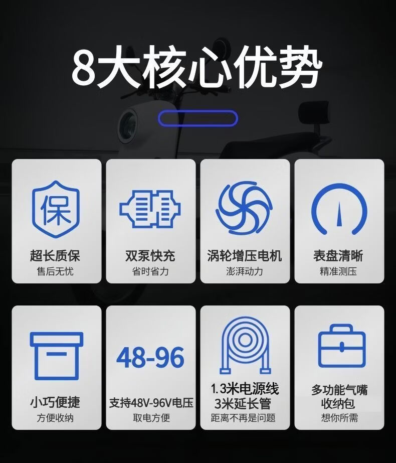 Gongma electric vehicle air pump 48v60v72v universal electric vehicle inflator compact portable tire inflator vacuum tire double-cylinder electric vehicle air pump 48V-72V