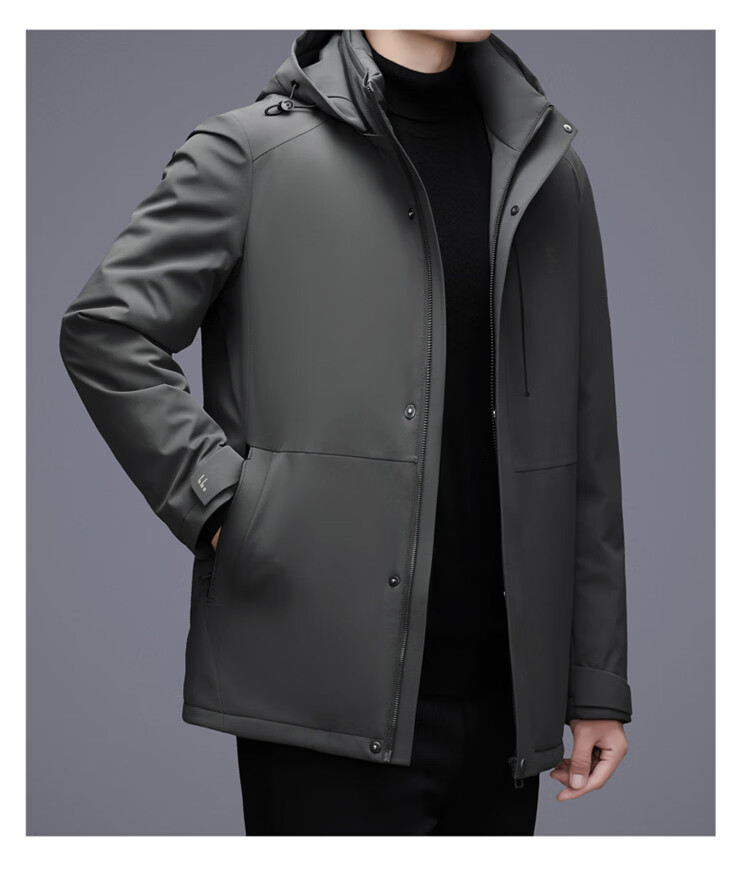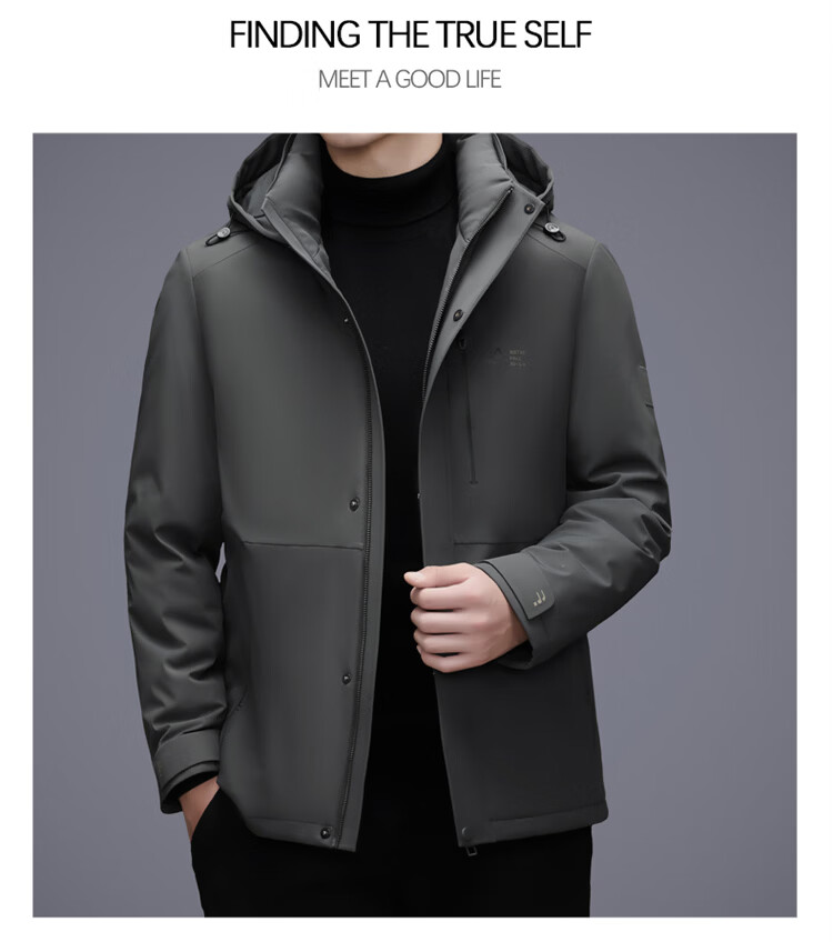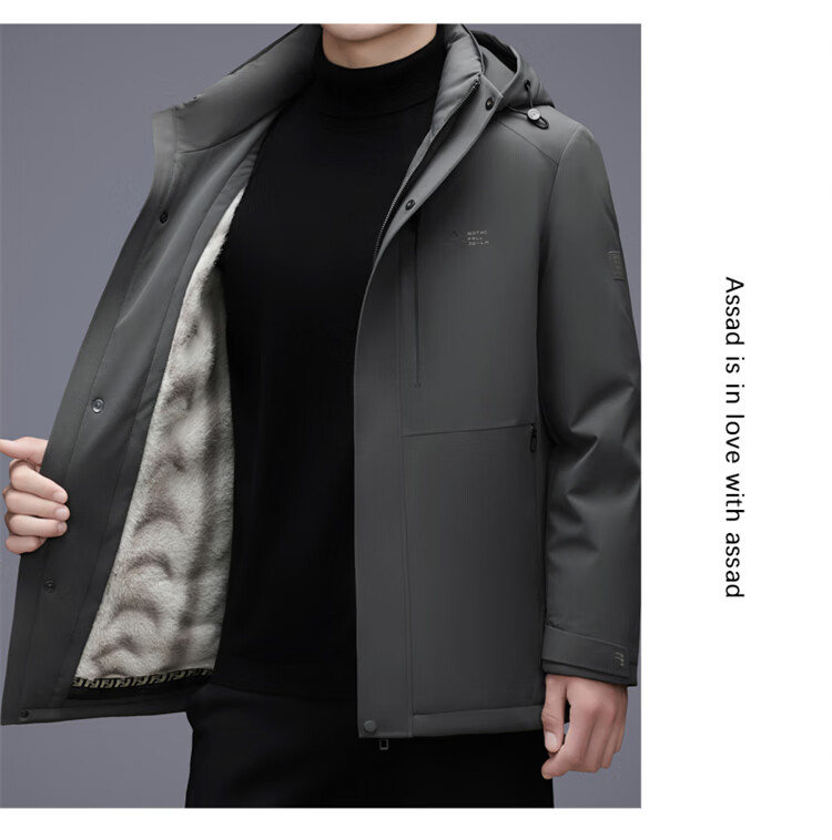 Hengyuanxiang plus down jacket men's winter short mink velvet thickened mature and stable business casual warm jacket gray green 3XL 190