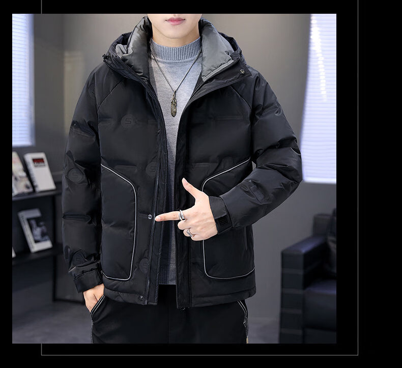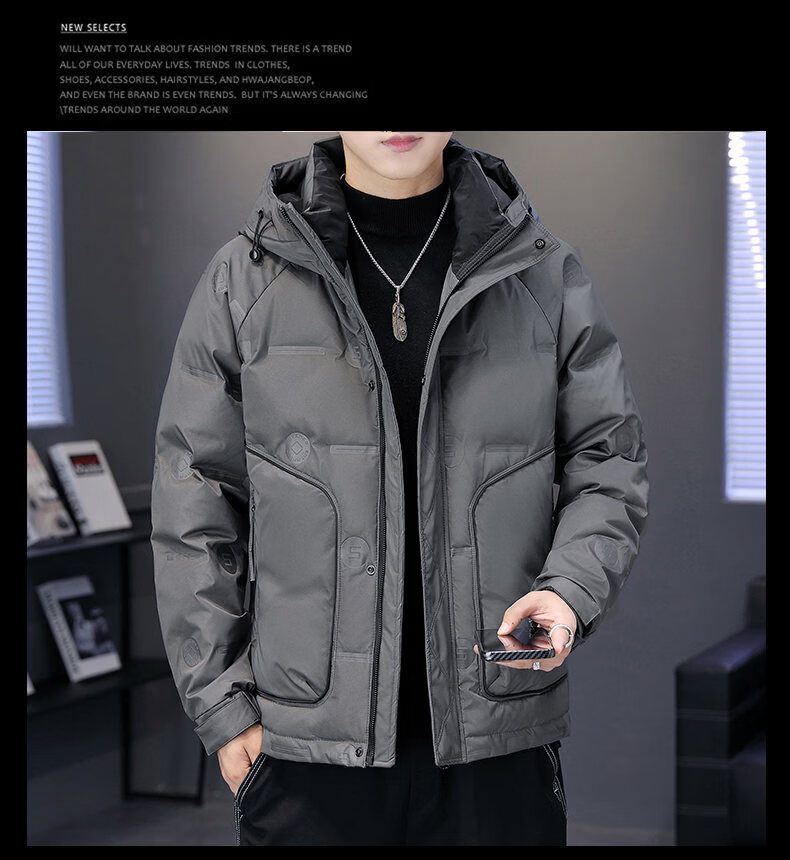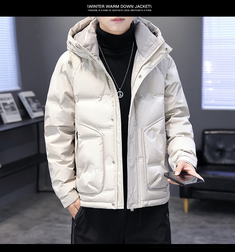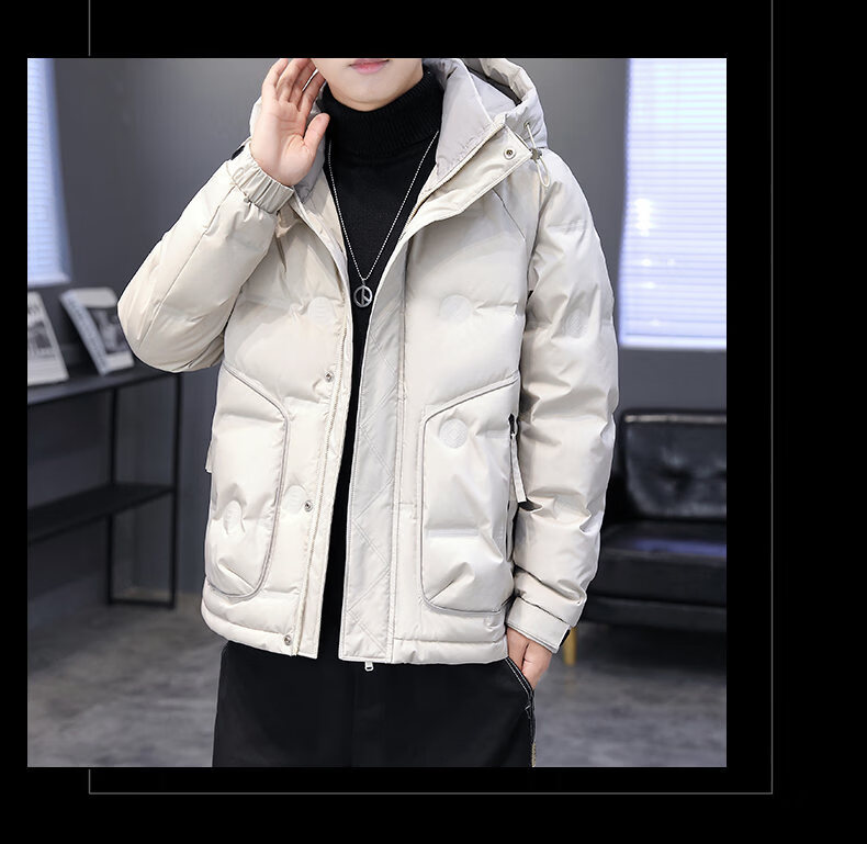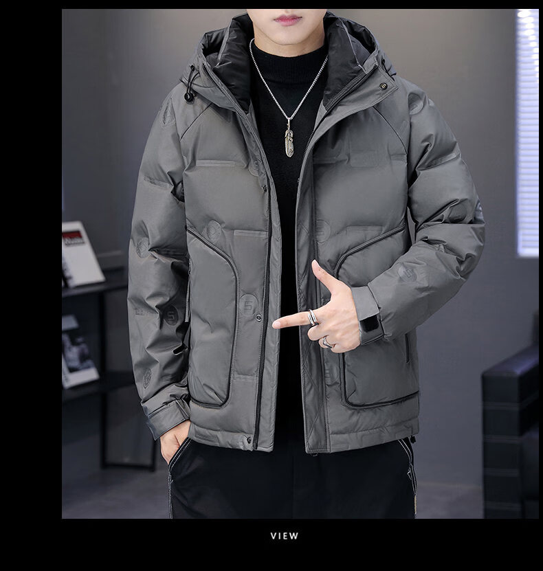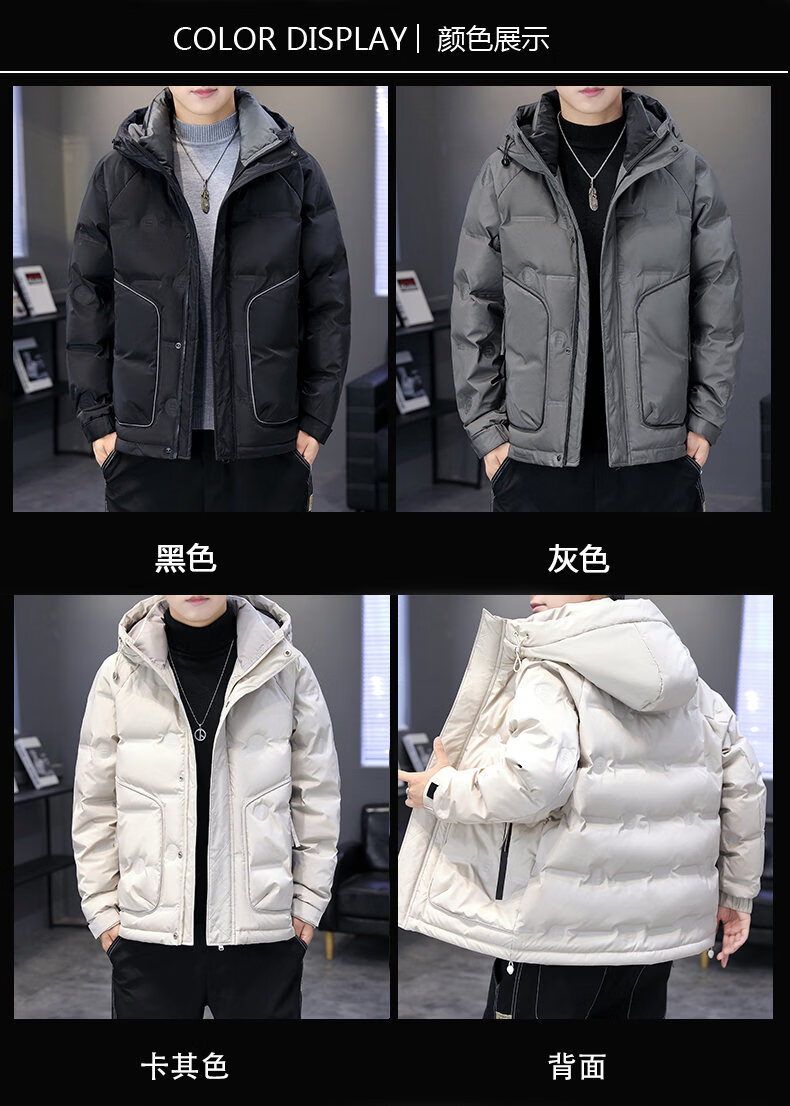 Hengyuanxiang thickened warm hooded short trendy brand jacket 2026 men's winter new white duck down Korean style versatile down jacket black M