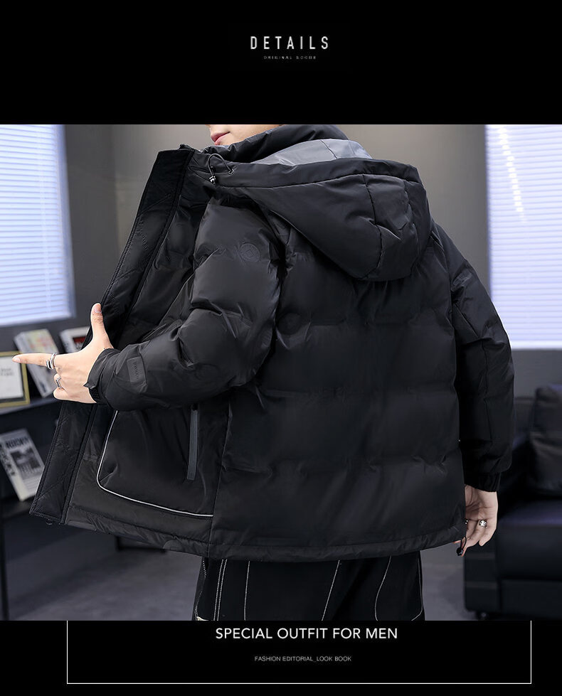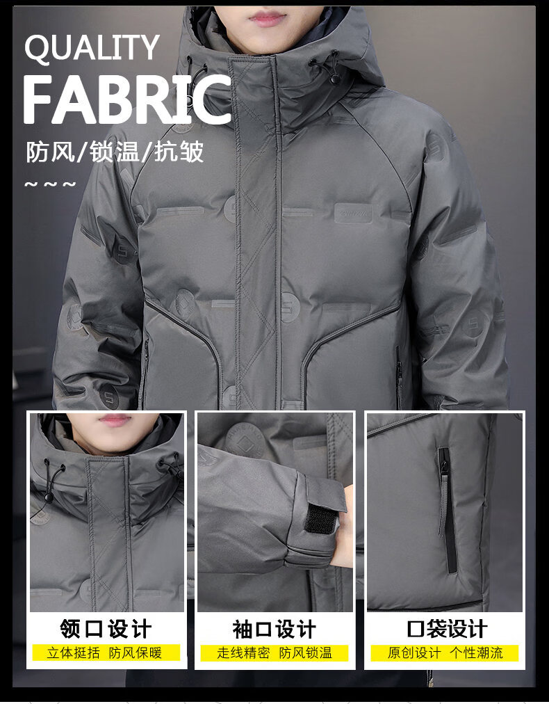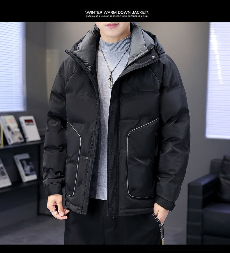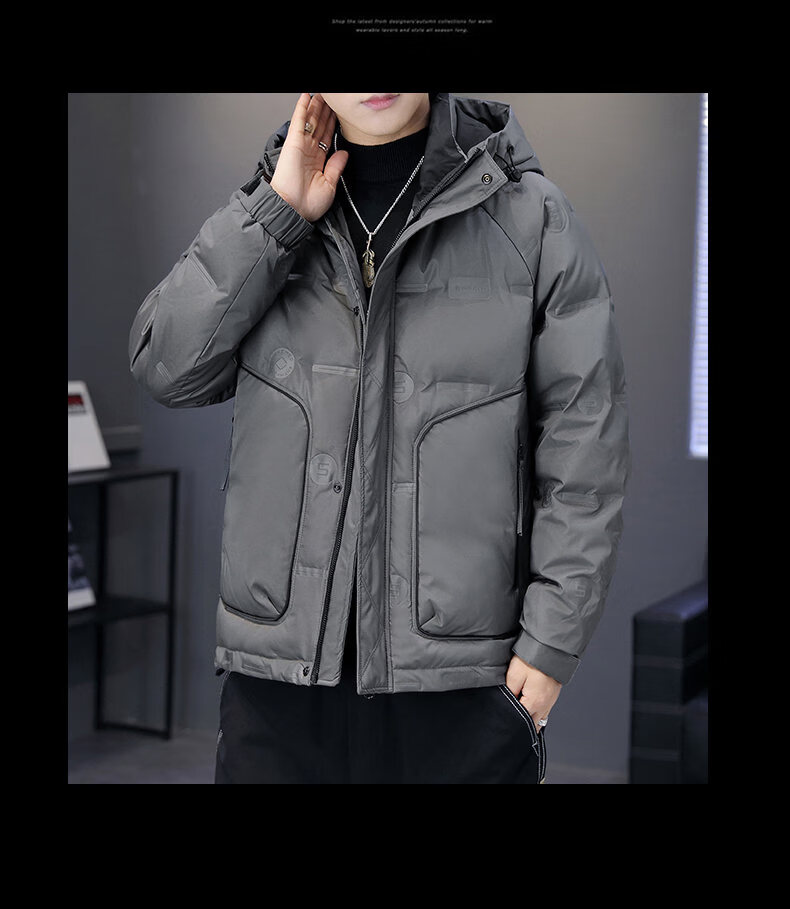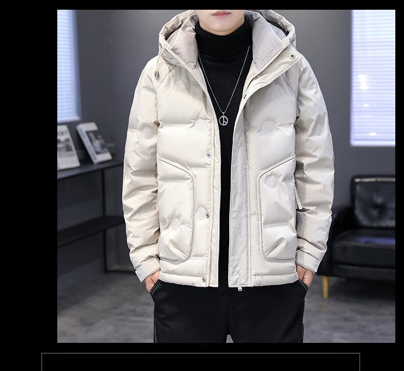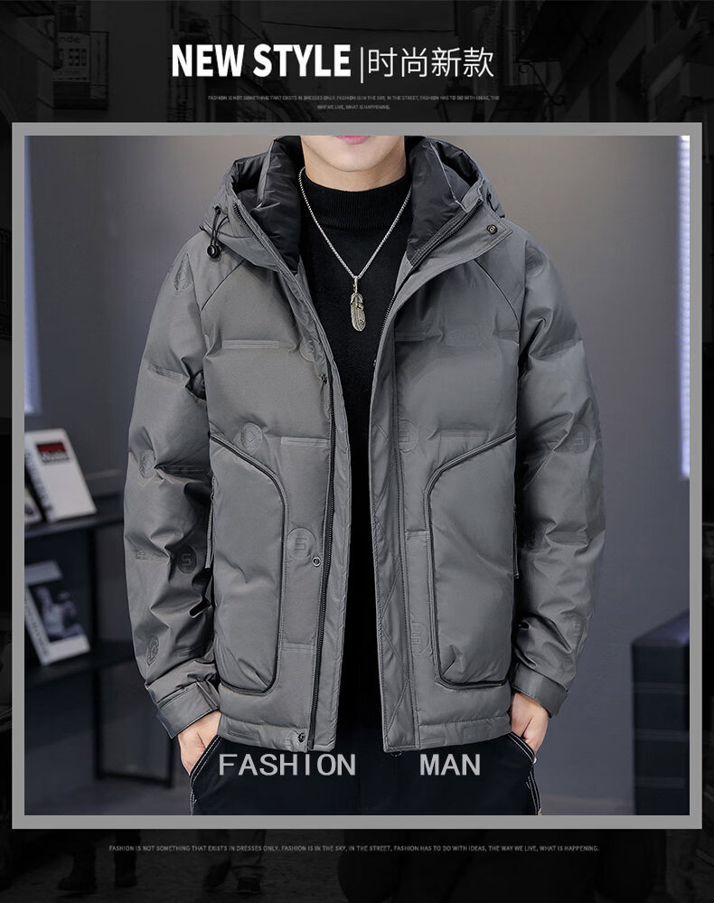 Hengyuanxiang thickened warm hooded short trendy brand jacket 2026 men's winter new white duck down Korean style versatile down jacket black M