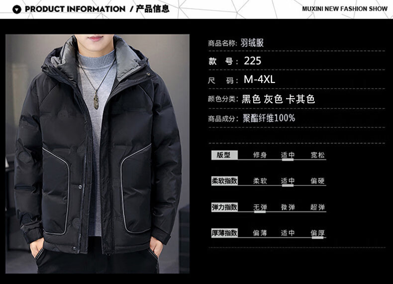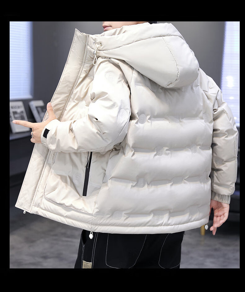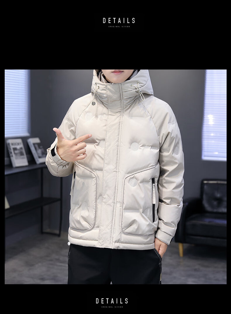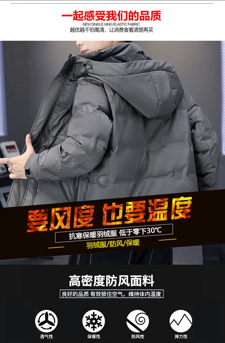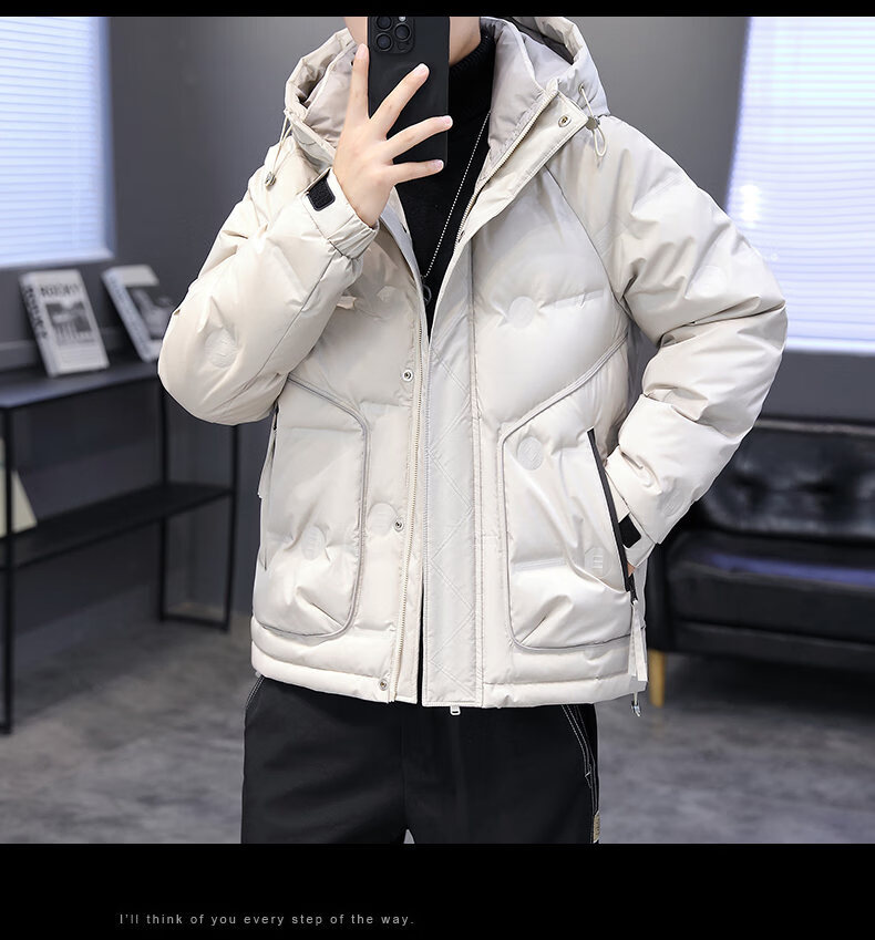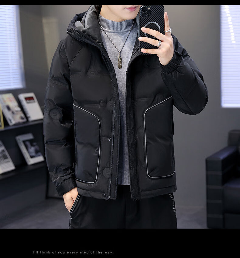 Hengyuanxiang thickened warm hooded short trendy brand jacket 2026 men's winter new white duck down Korean style versatile down jacket black M
