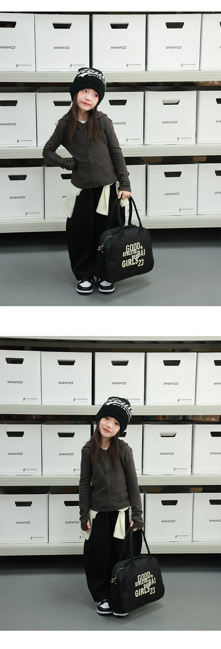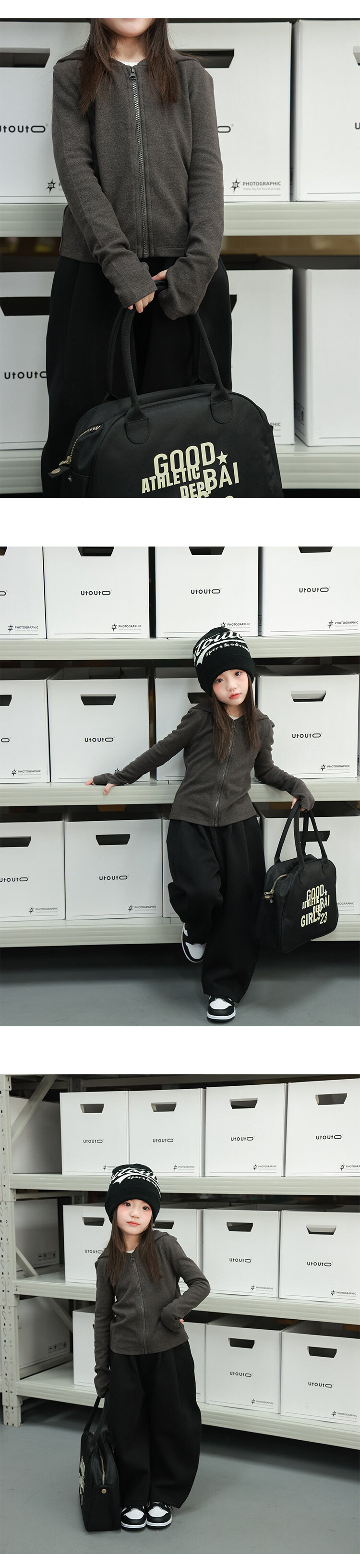 UTOUTO Big Ear Elephant Girls Solid Color Finger Sleeve Hooded Jacket 2026 Spring New Versatile Slim Top 2591047 Elephant Gray 90
