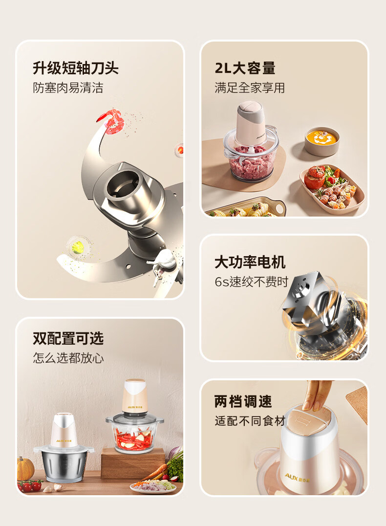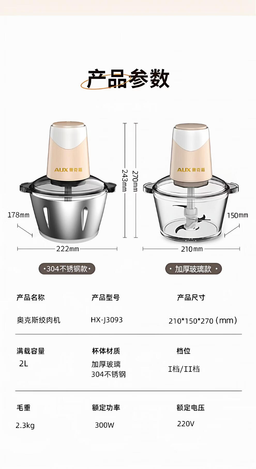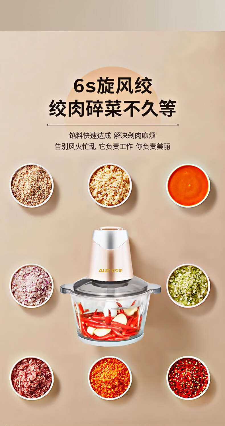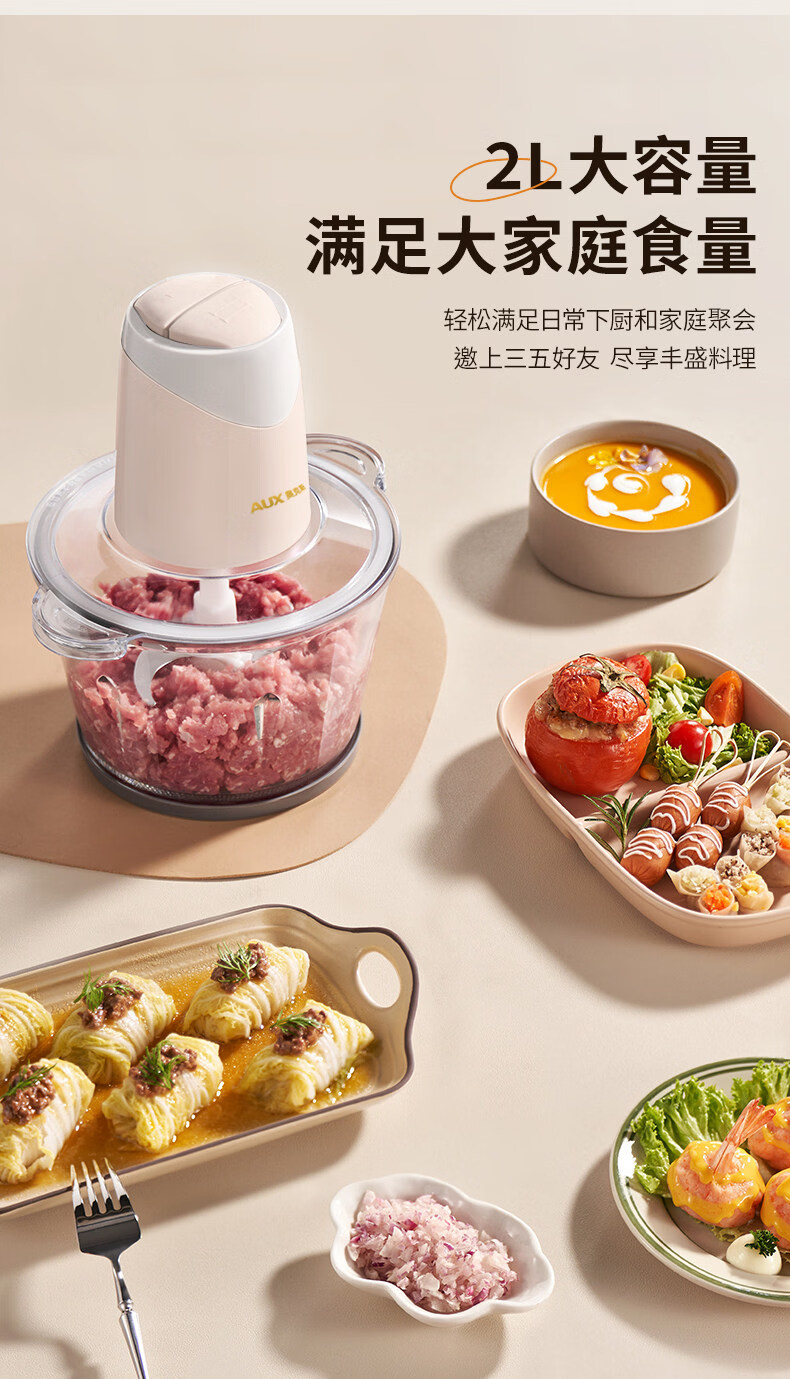 Garlic grinder meat grinder household electric small stainless steel mixing and smashing multi-functional condiment garlic paste 2Jin Jin is equal to 0.5kg meat 304 stainless steel bowl two blades
