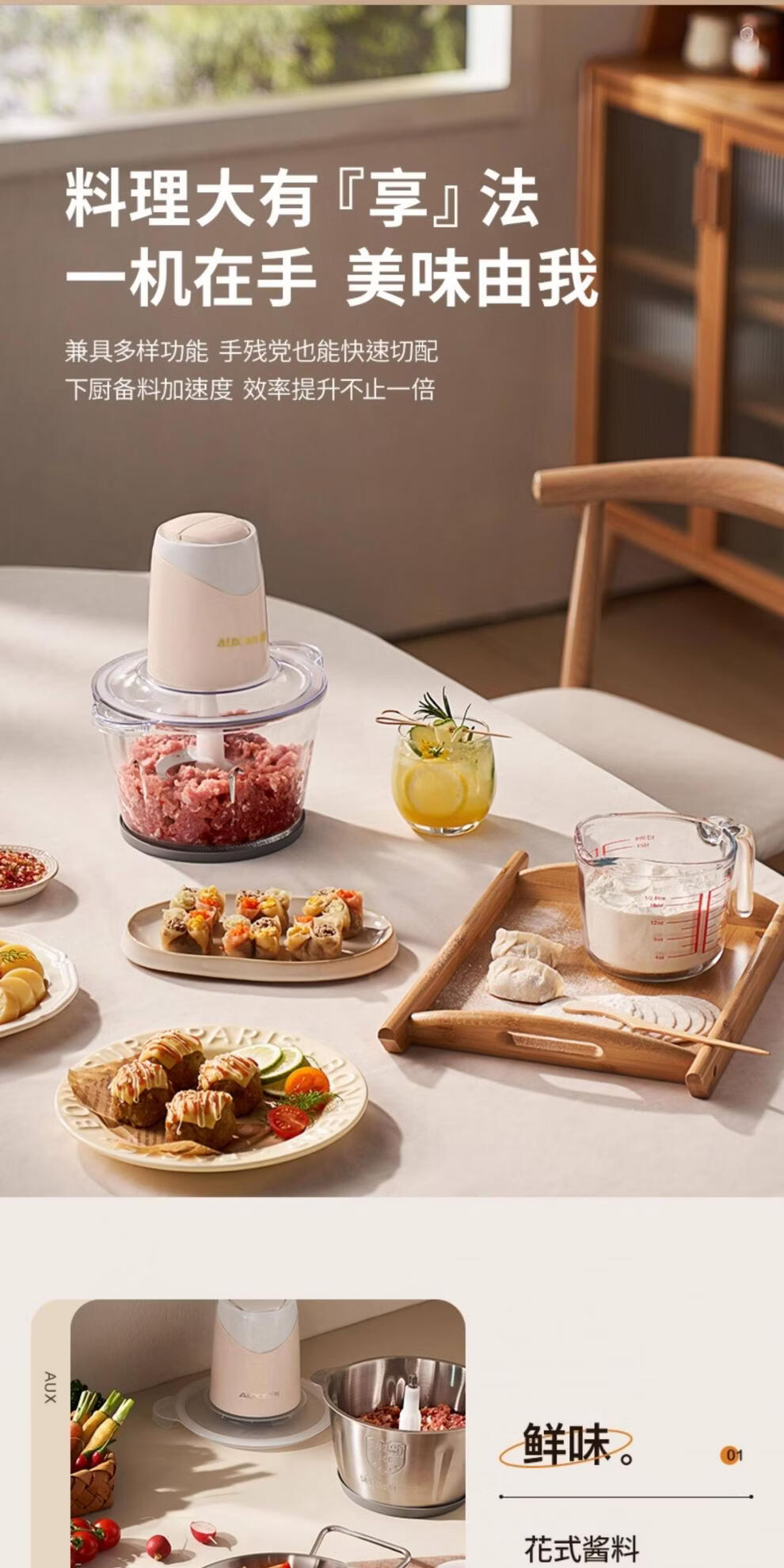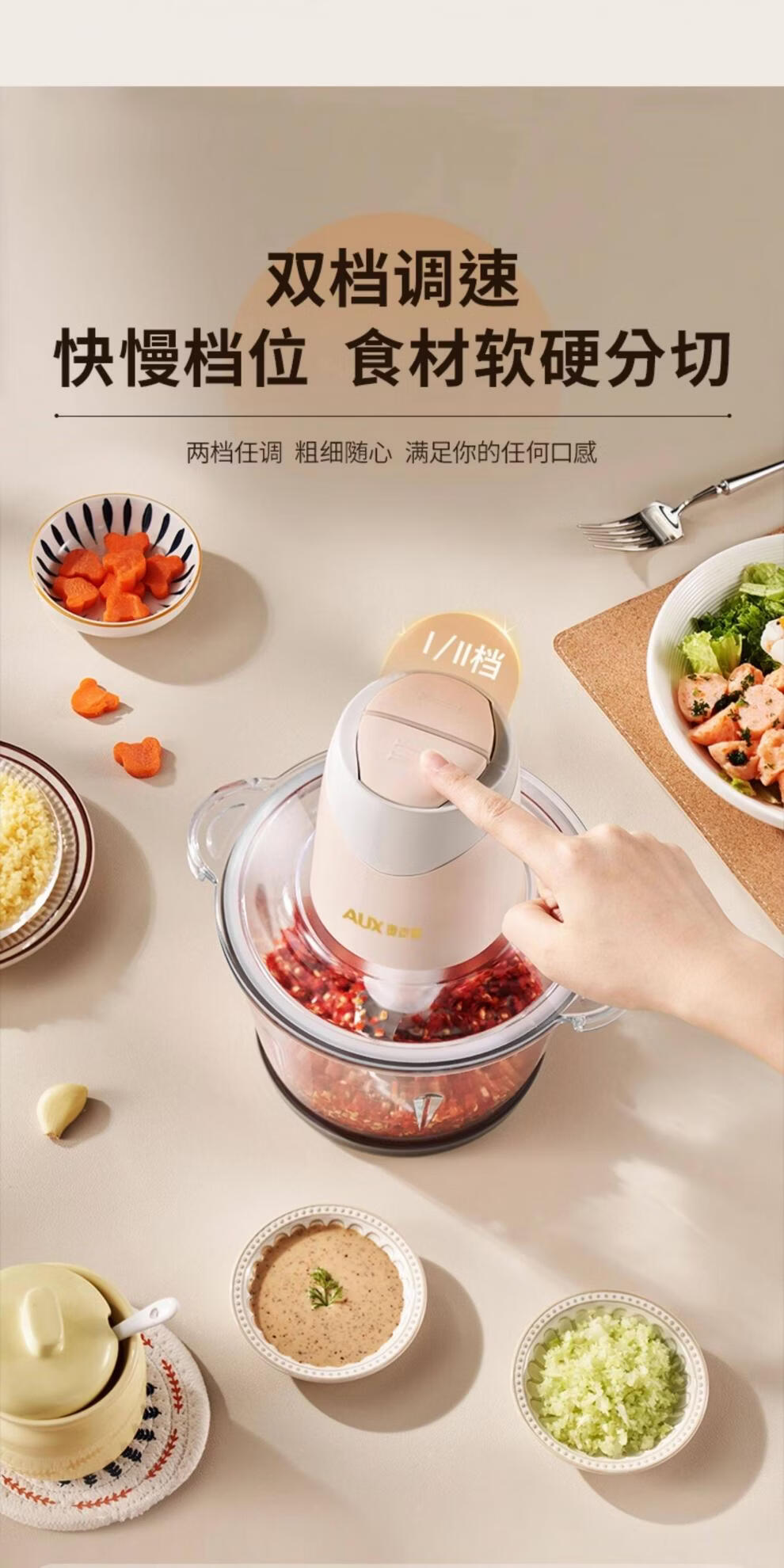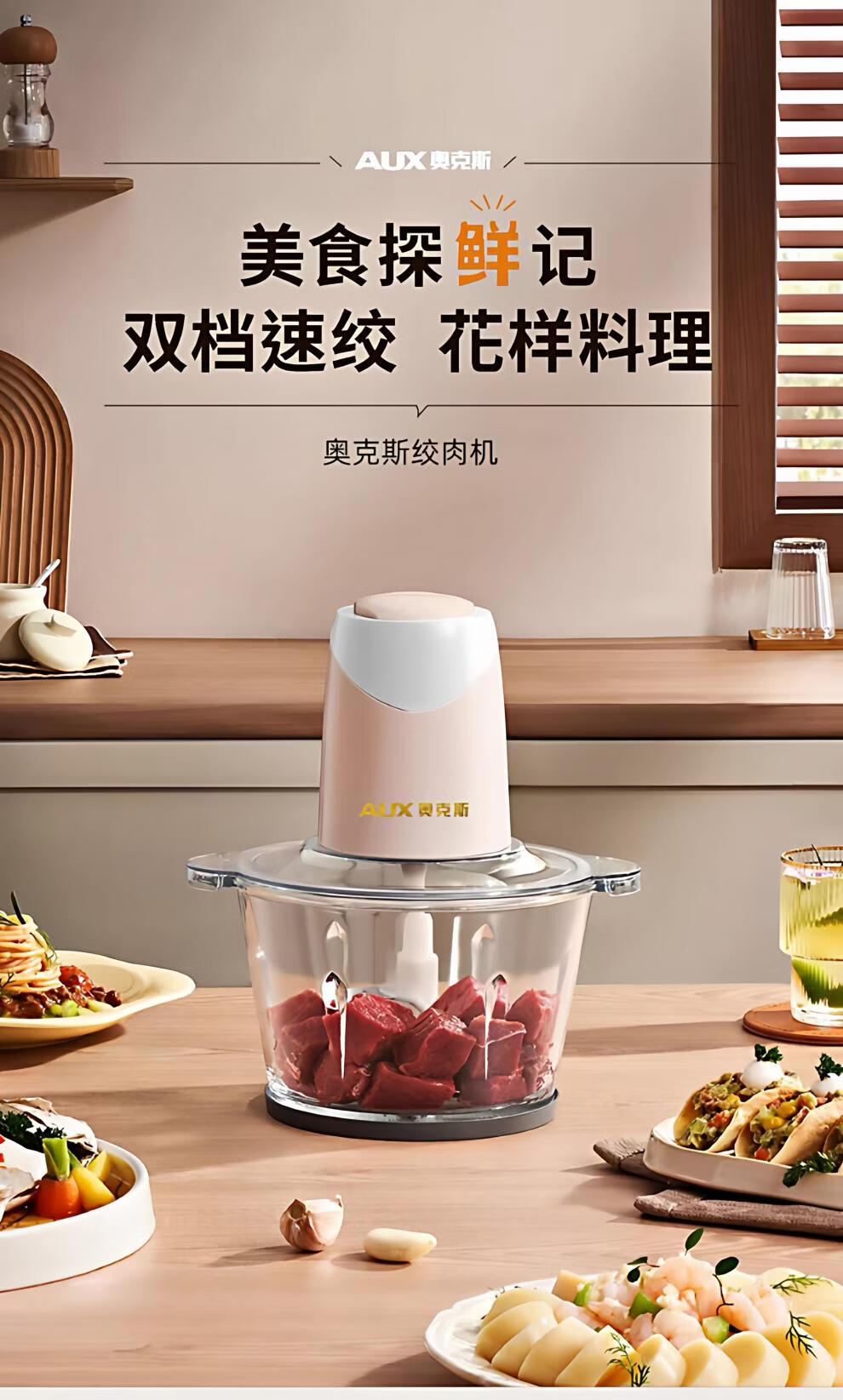 Garlic grinder meat grinder household electric small stainless steel mixing and smashing multi-functional condiment garlic paste 2Jin Jin is equal to 0.5kg meat 304 stainless steel bowl two blades