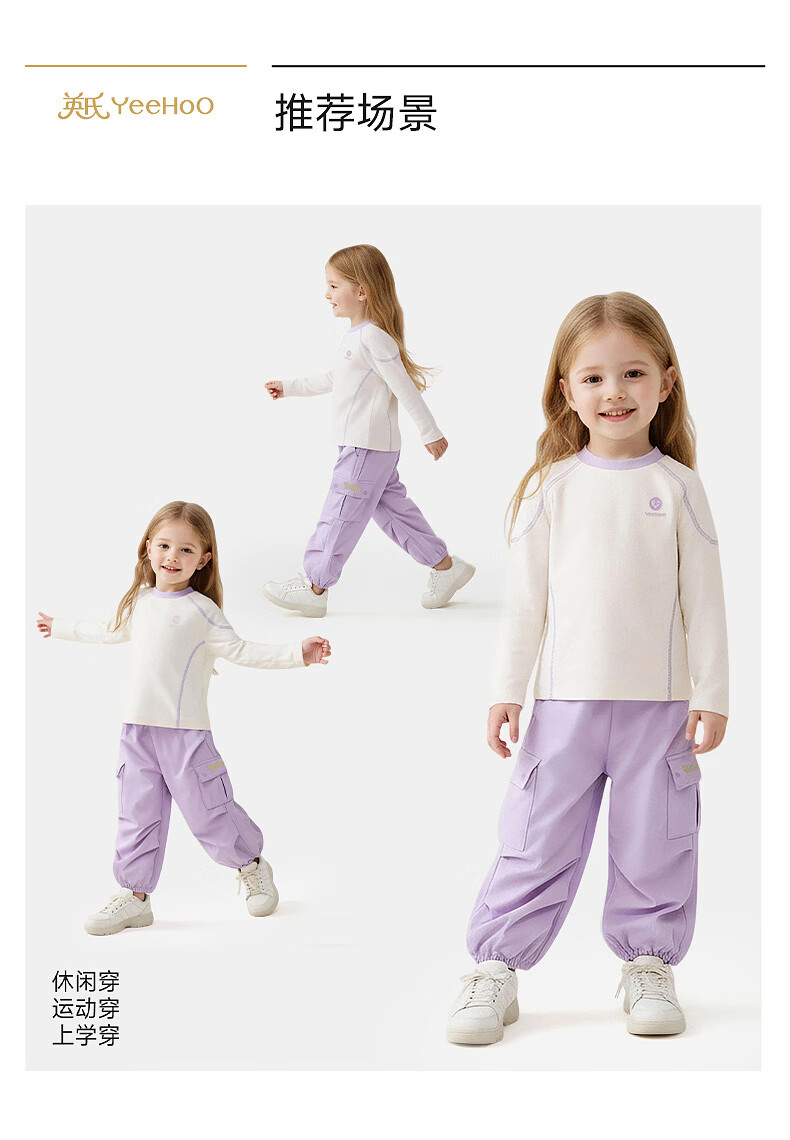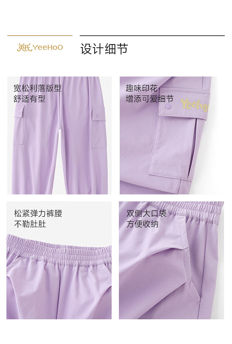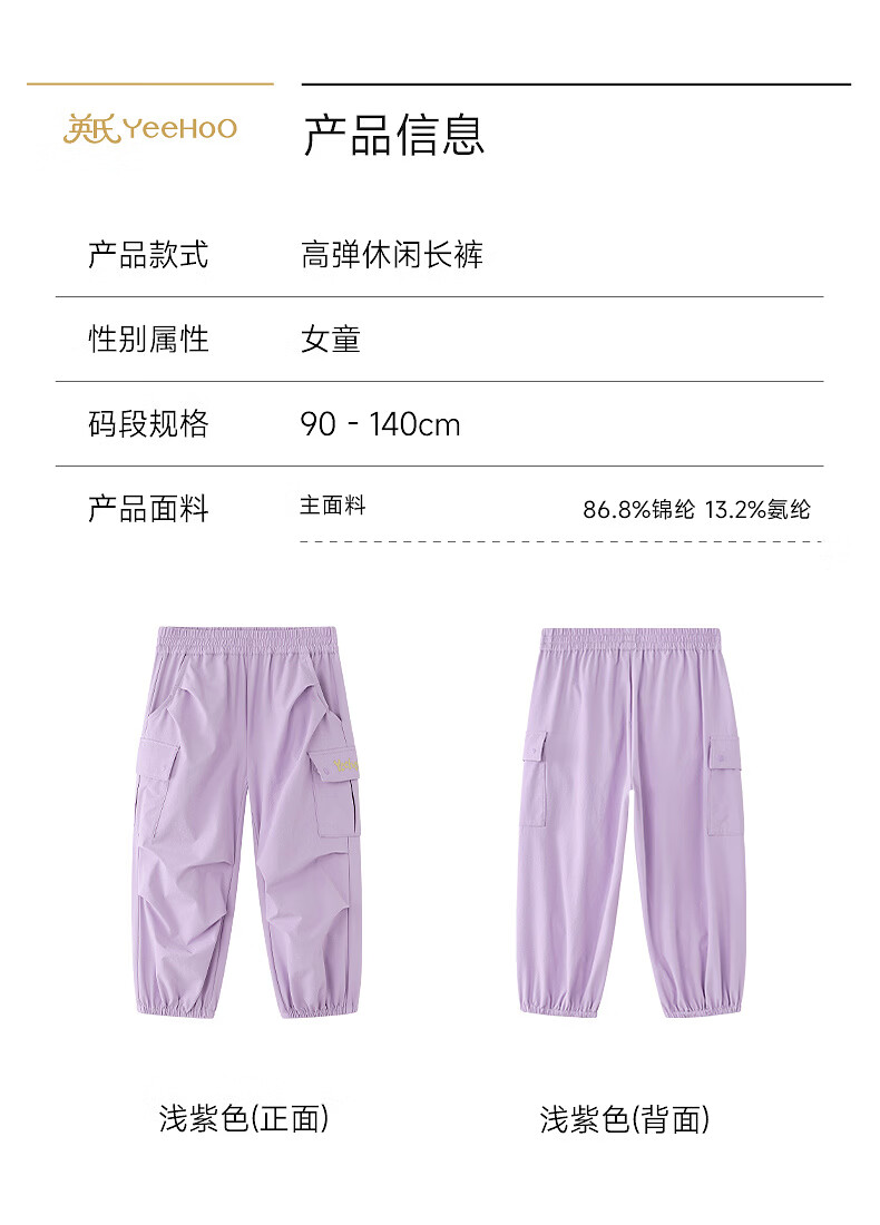 YEEHOO shopping mall same style children's clothing children's trousers sports casual leggings girls trendy trousers new style light purple 140