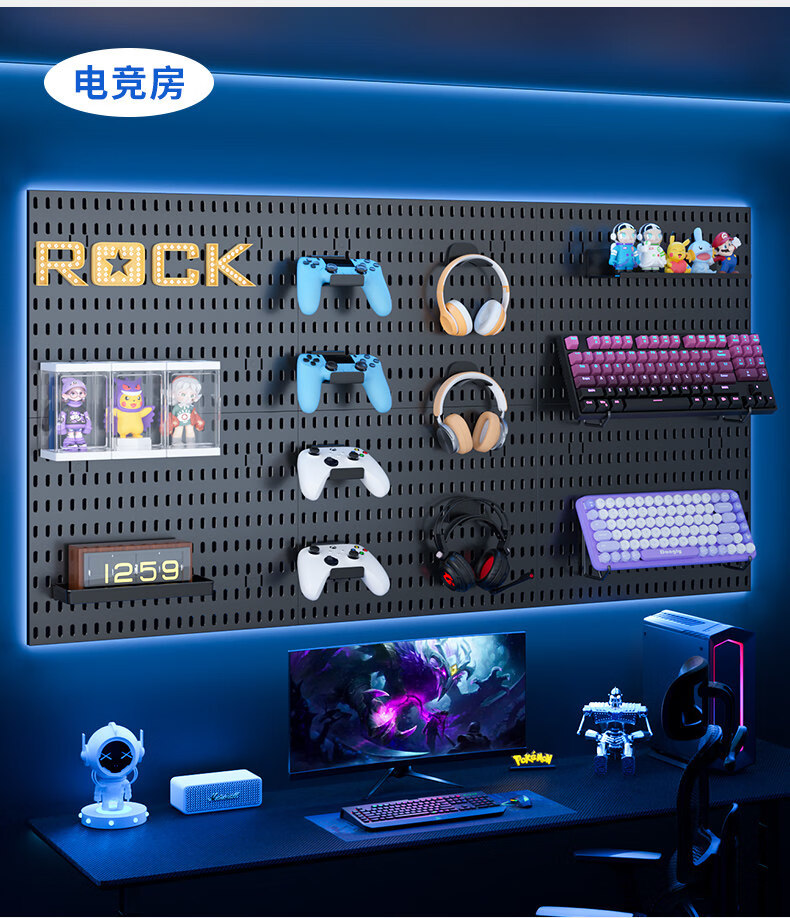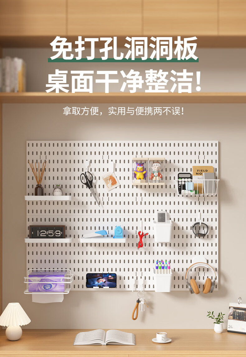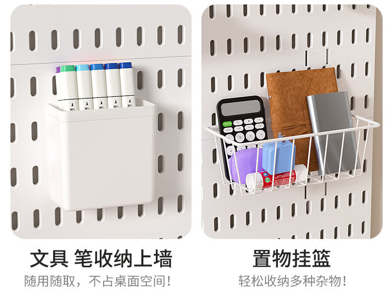No punching hole board storage rack college student desk organizer wall e-sports book desktop stationery storage kitchen extra large long board 39*60 (black)