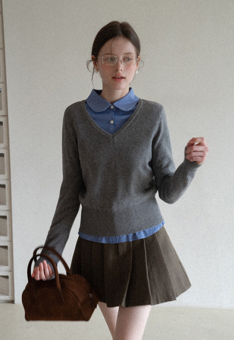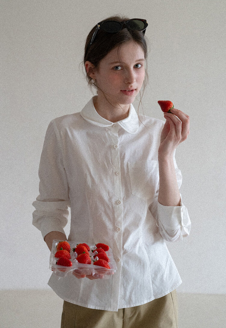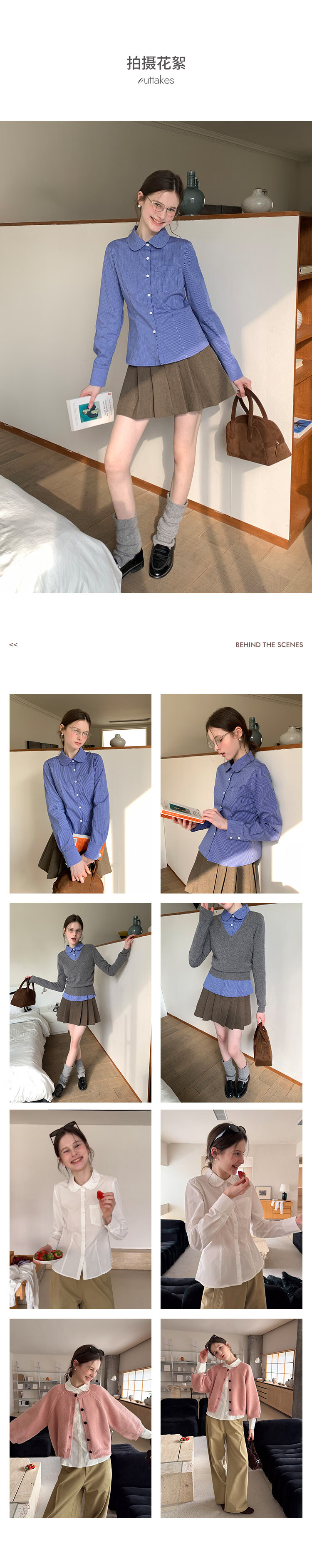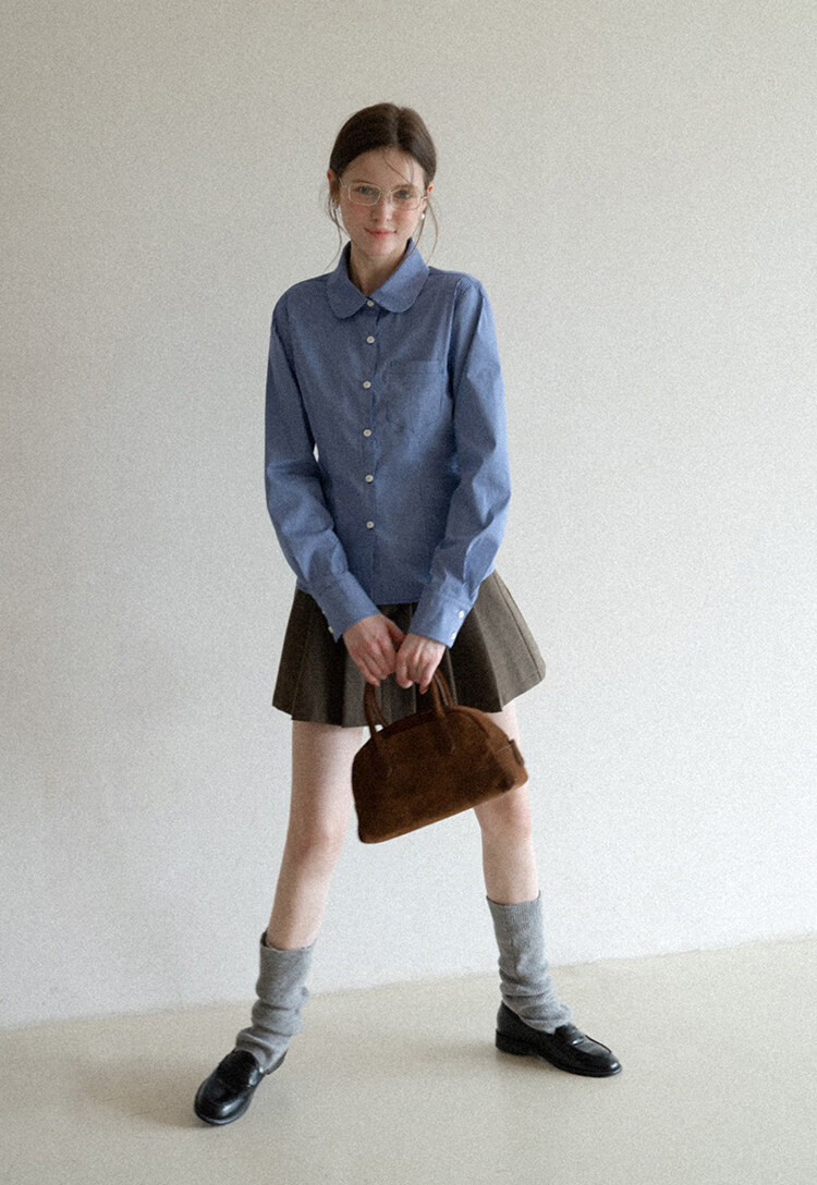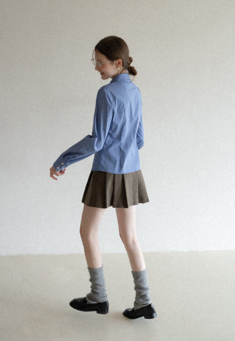 EGGKA temperament lapel waist design slimming simple long-sleeved shirt E26A60116YM Blue Check M