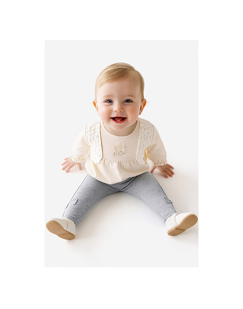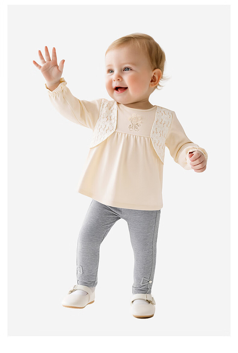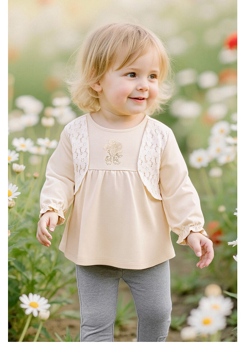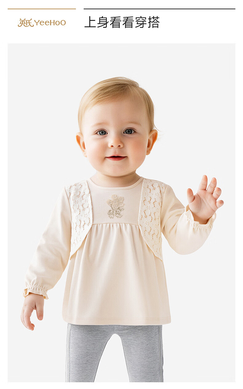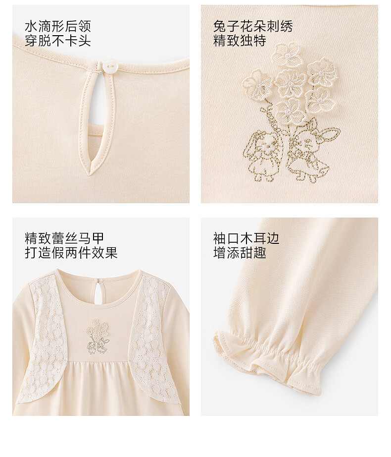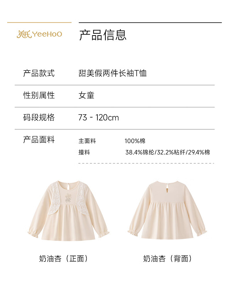 Ying's shopping mall same style children's clothing children's long-sleeved bottoming shirt spring and autumn casual girls' tops versatile new style cream apricot 110 cm