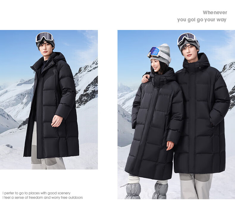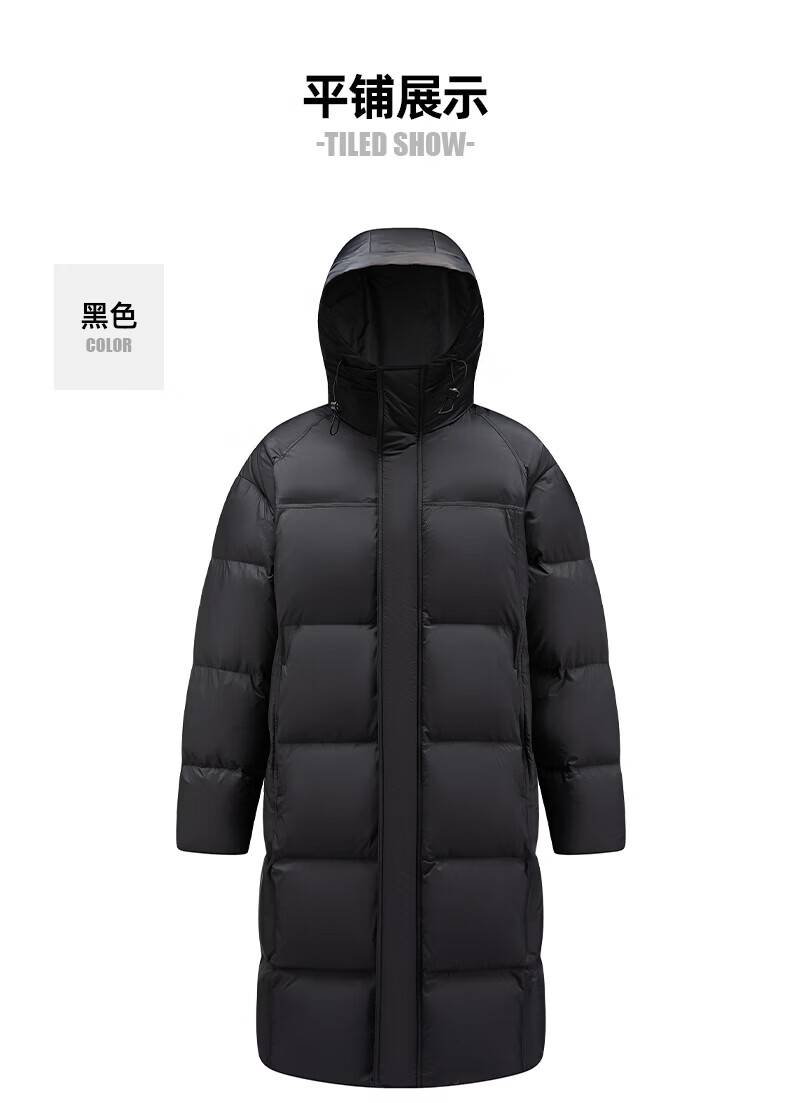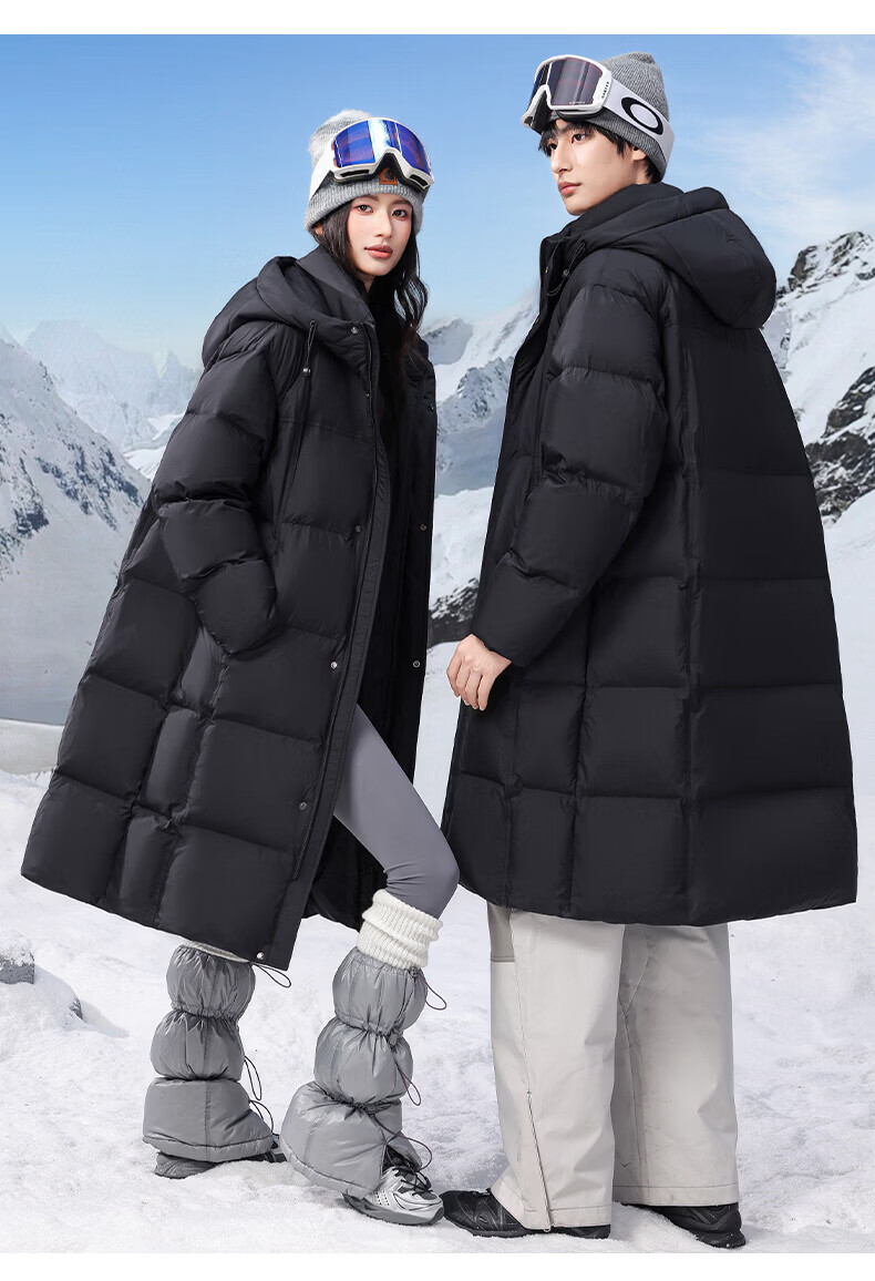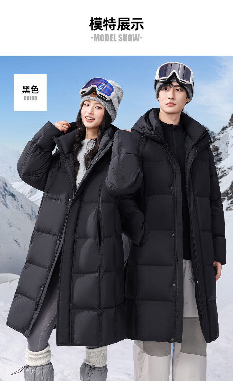 ROMON high-fill down long down jacket for men and women, winter simple casual outdoor cold-proof warm jacket for men, black S (165)