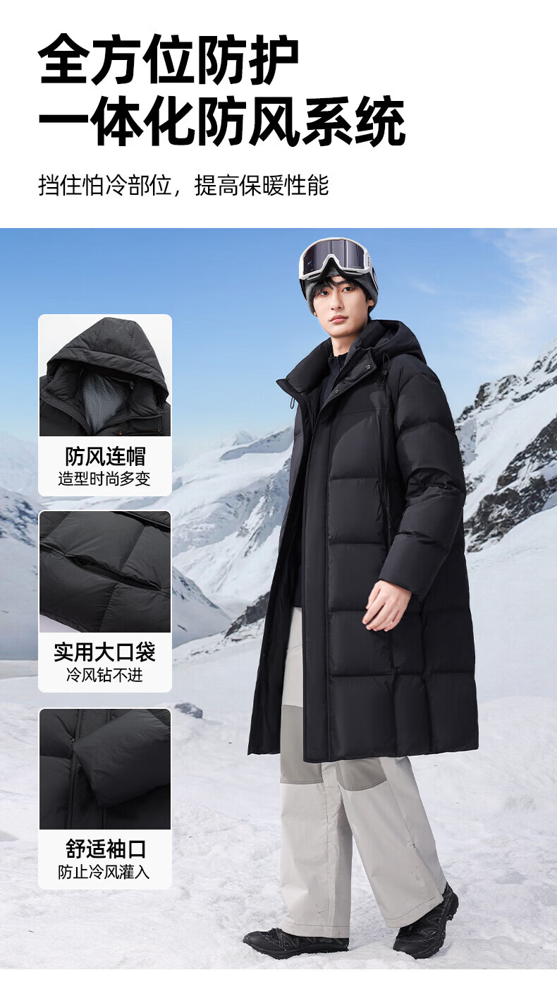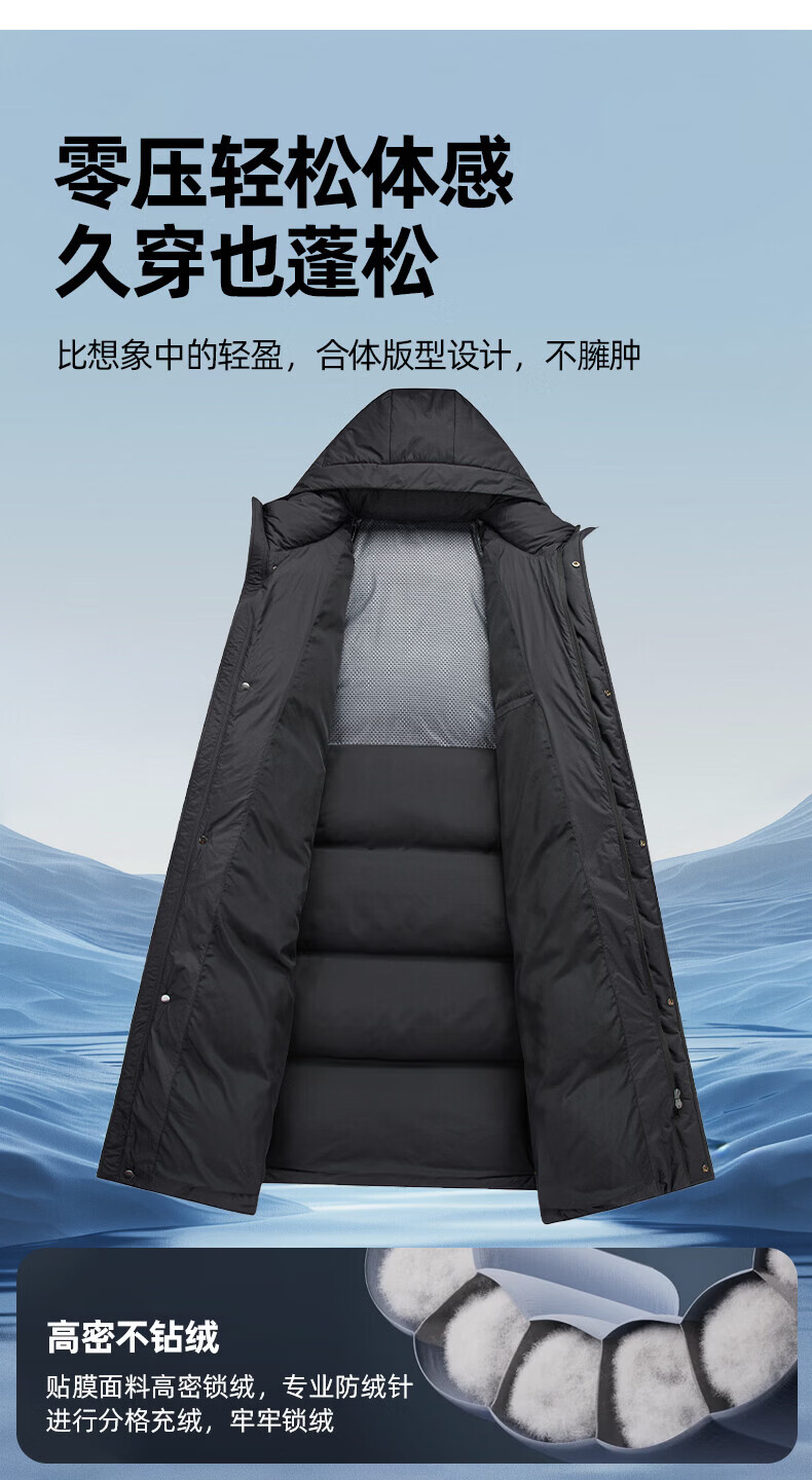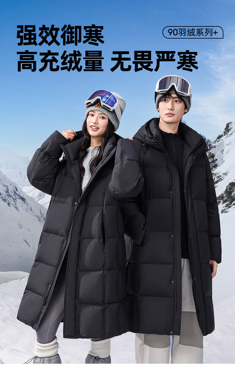 ROMON high-fill down long down jacket for men and women, winter simple casual outdoor cold-proof warm jacket for men, black S (165)