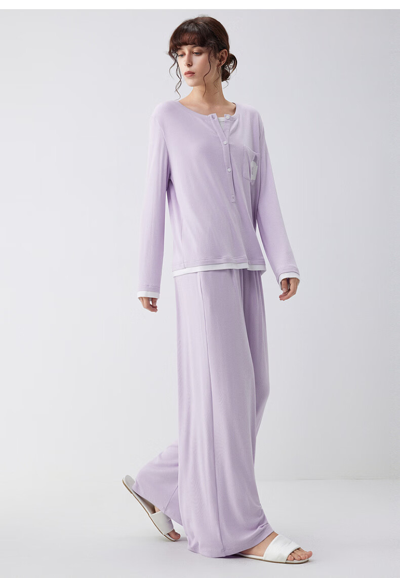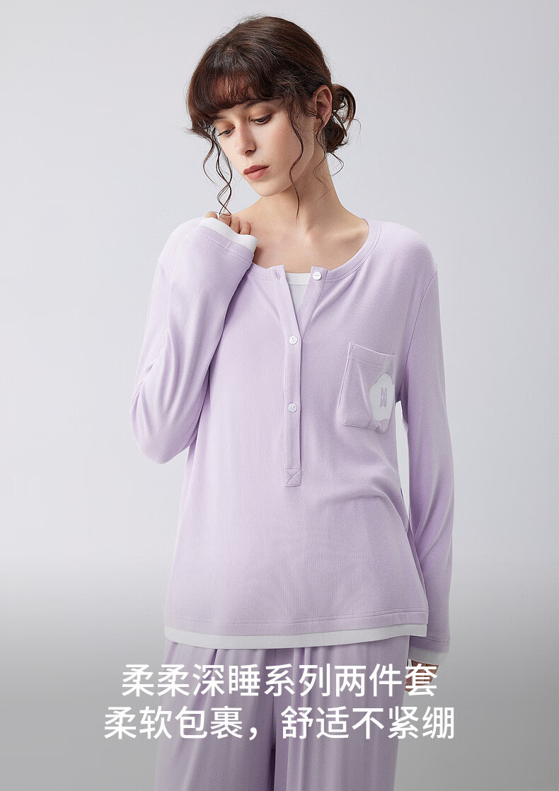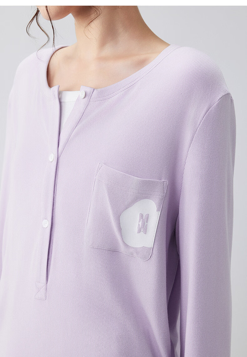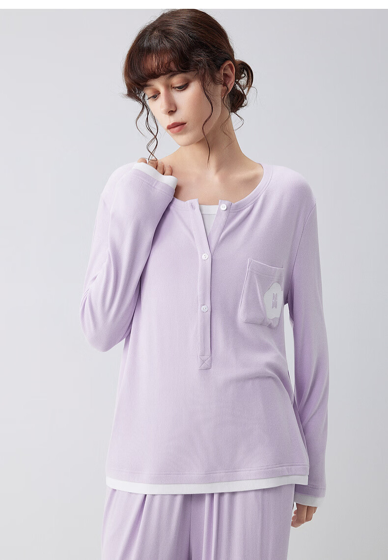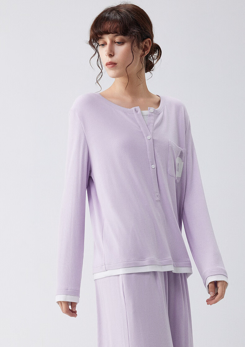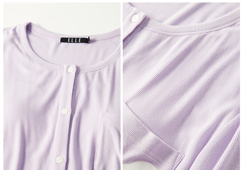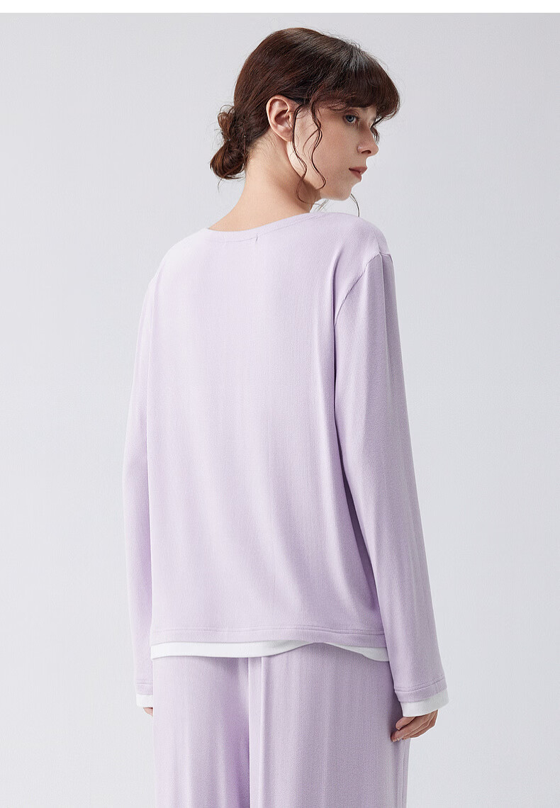 ELLE fake two-piece casual suit for women with built-in chest pad, comfortable and loose lavender home wear suit 2026 spring purple S