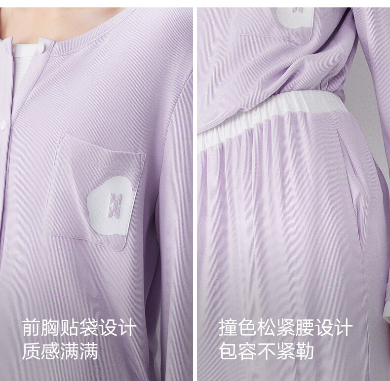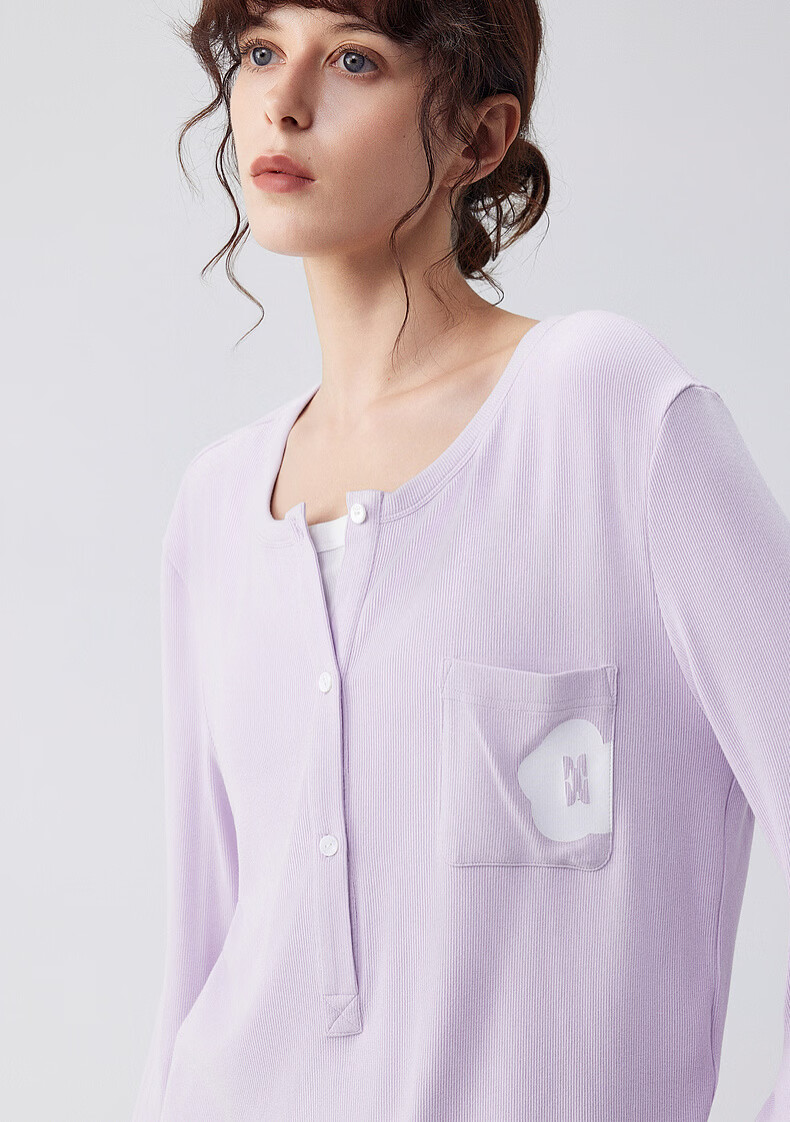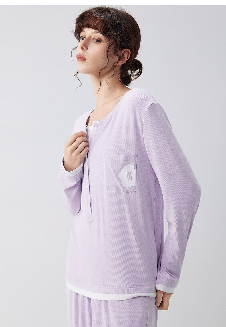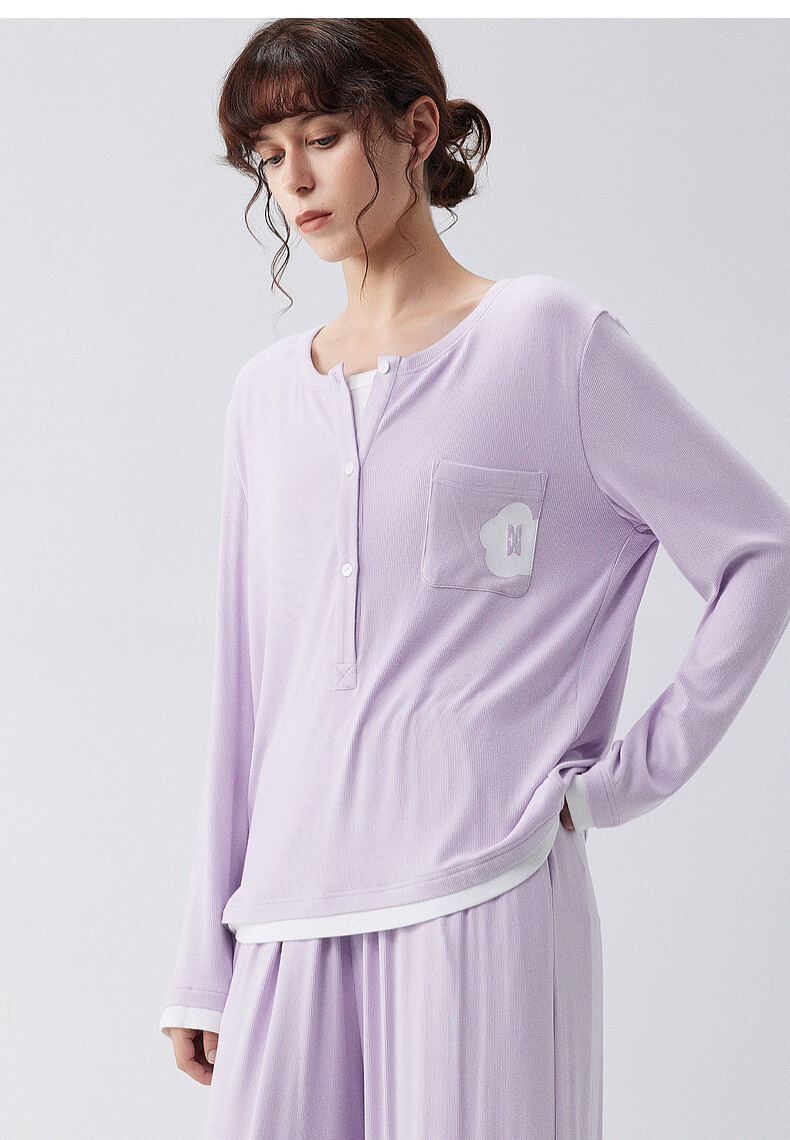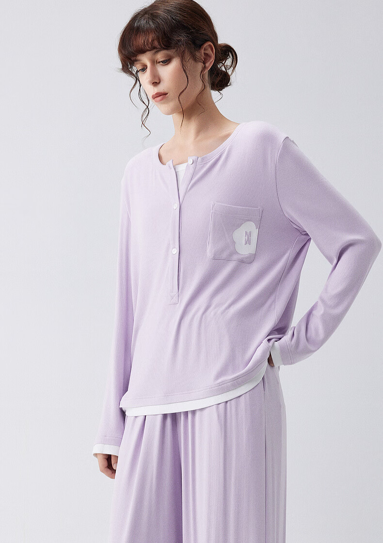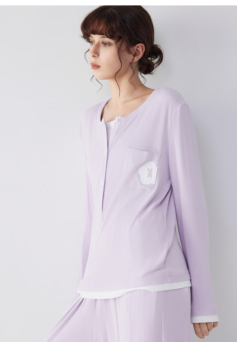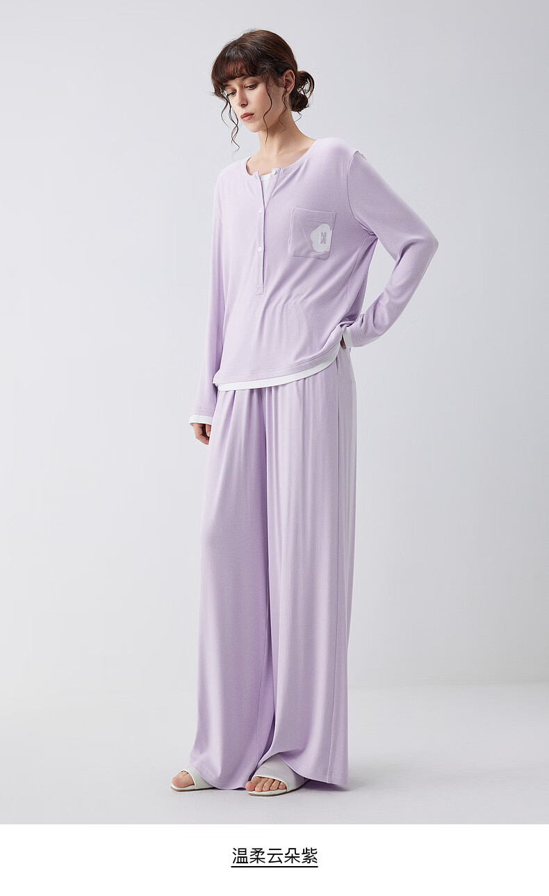 ELLE fake two-piece casual suit for women with built-in chest pad, comfortable and loose lavender home wear suit 2026 spring purple S