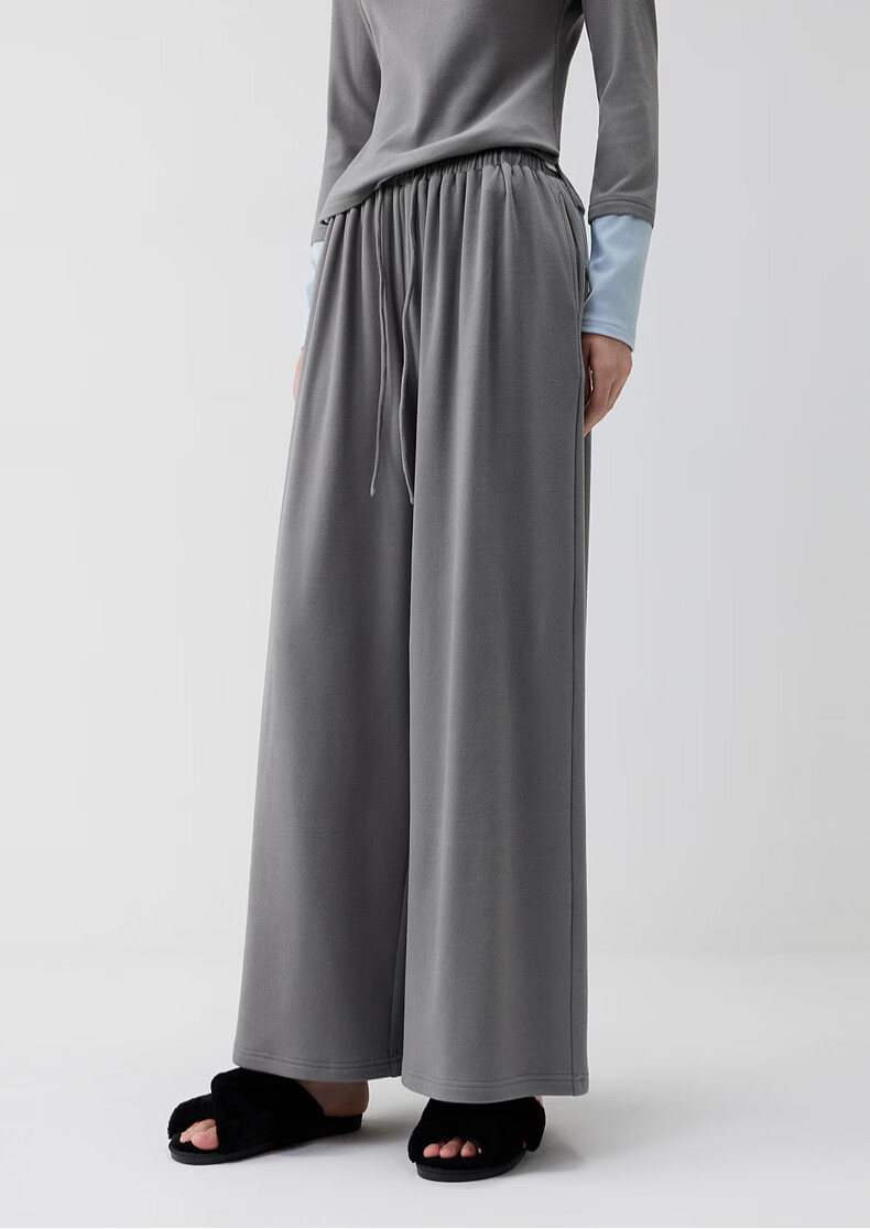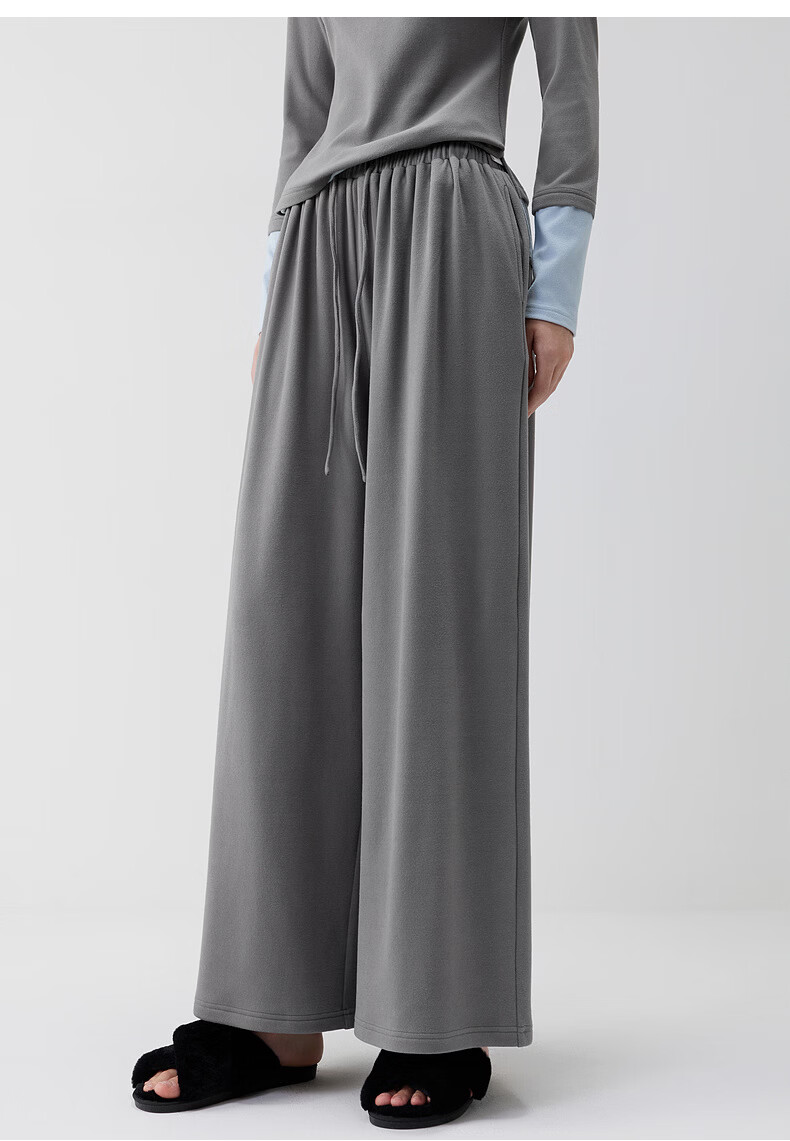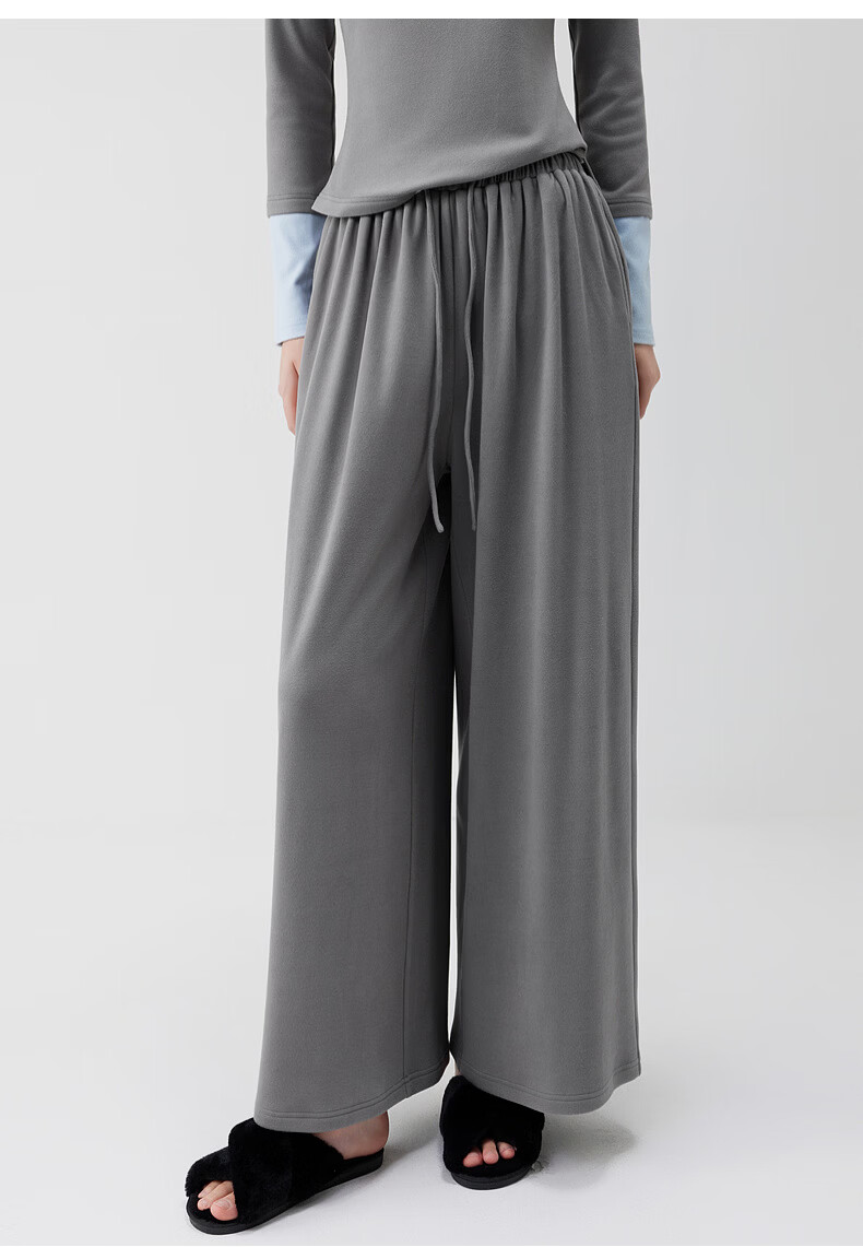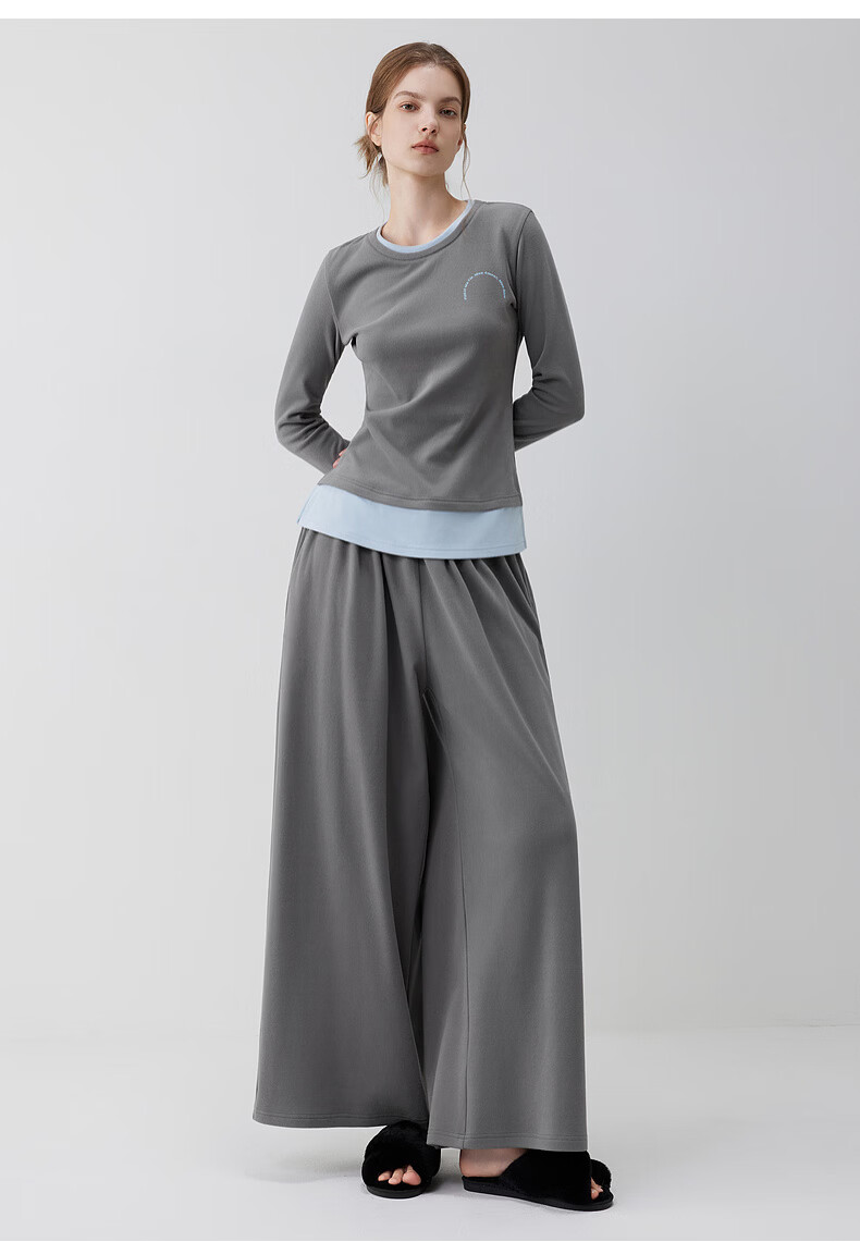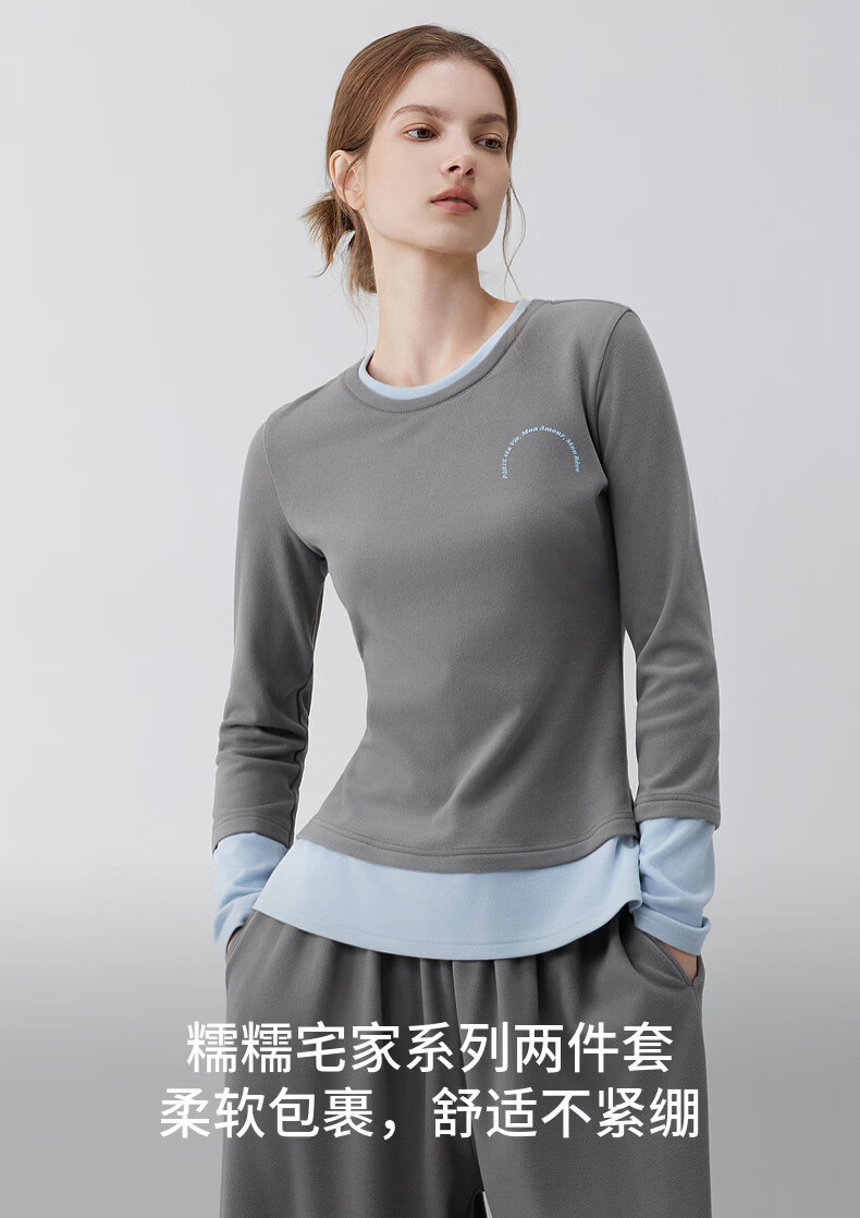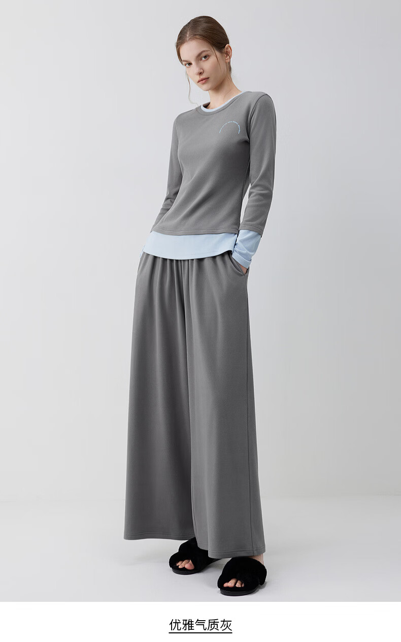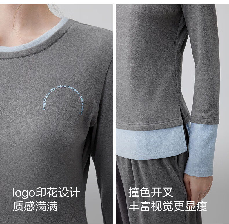 ELLE casual suit women's autumn pajamas German velvet warm can be worn outside blue gray contrast casual home wear new style light gray M
