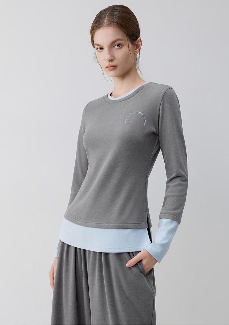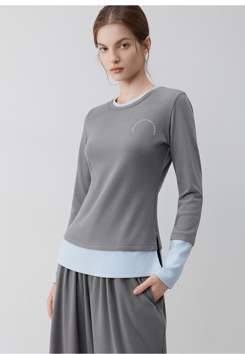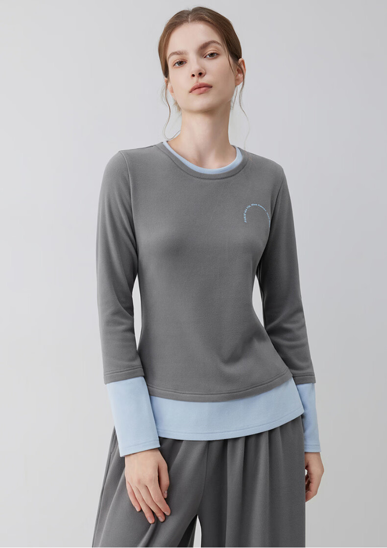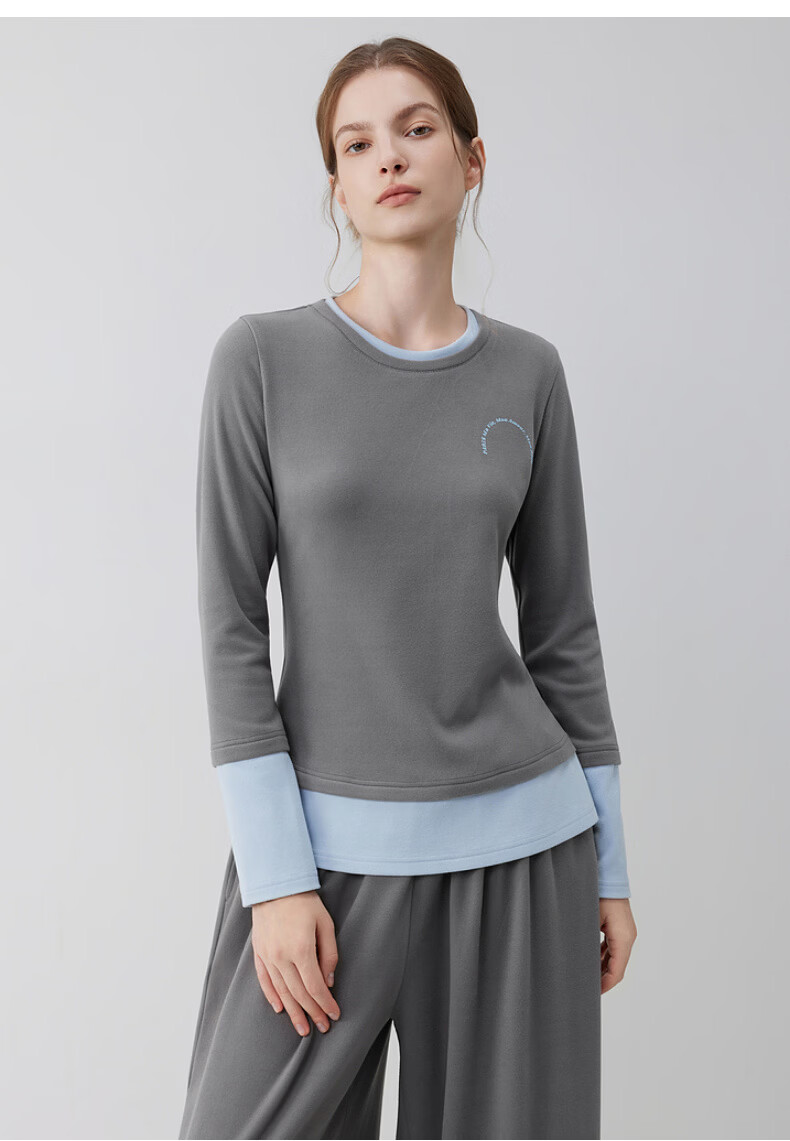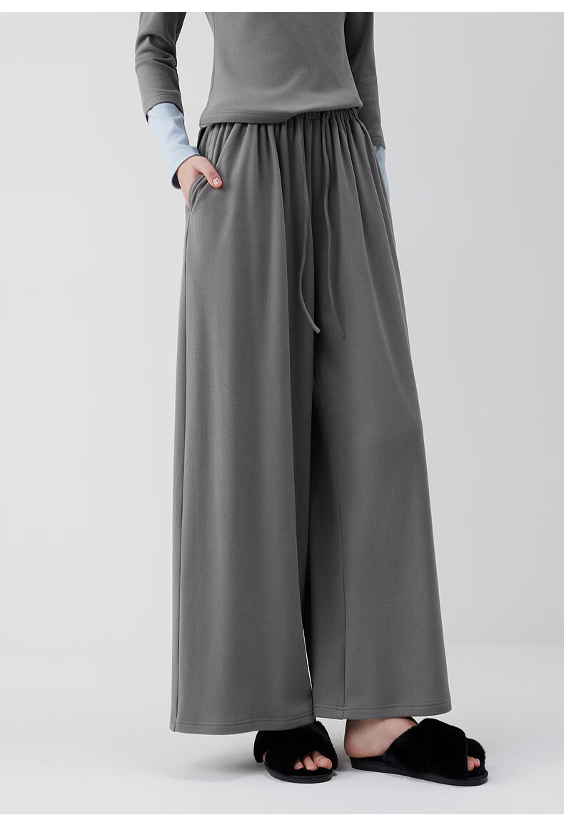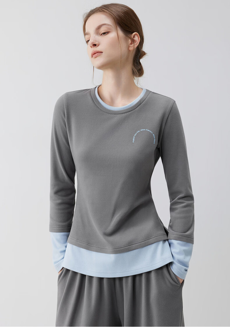 ELLE casual suit women's autumn pajamas German velvet warm can be worn outside blue gray contrast casual home wear new style light gray M