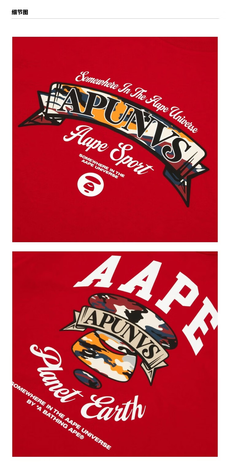 Aape flagship store men's spring and summer classic camouflage logo letter print short-sleeved T-shirt 1860XXQ RDL/red S