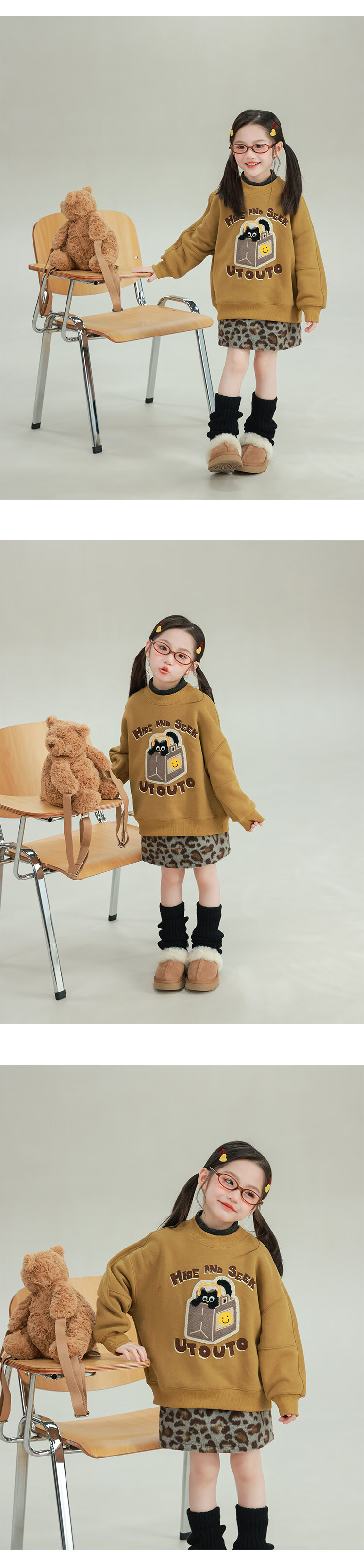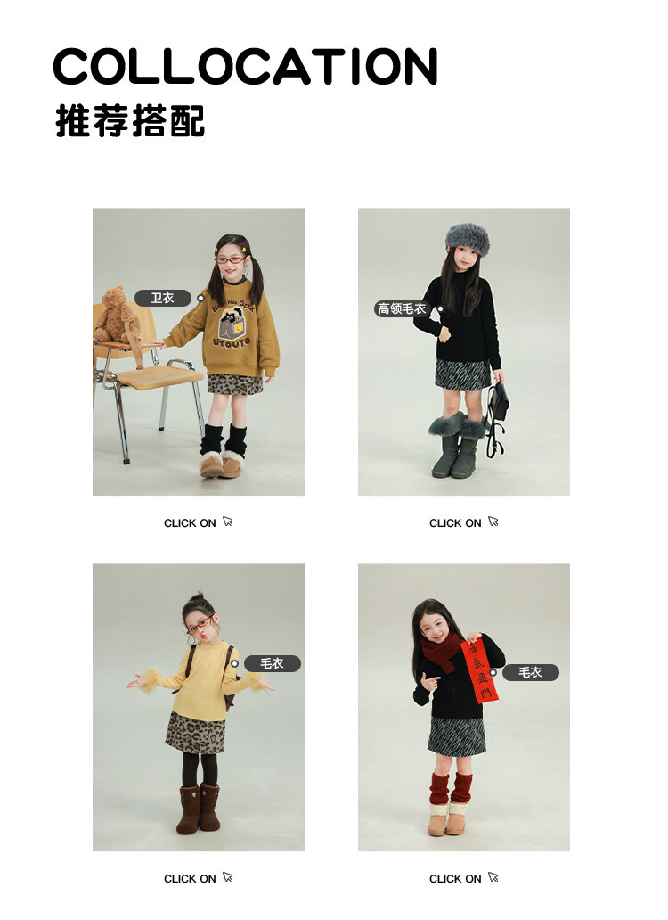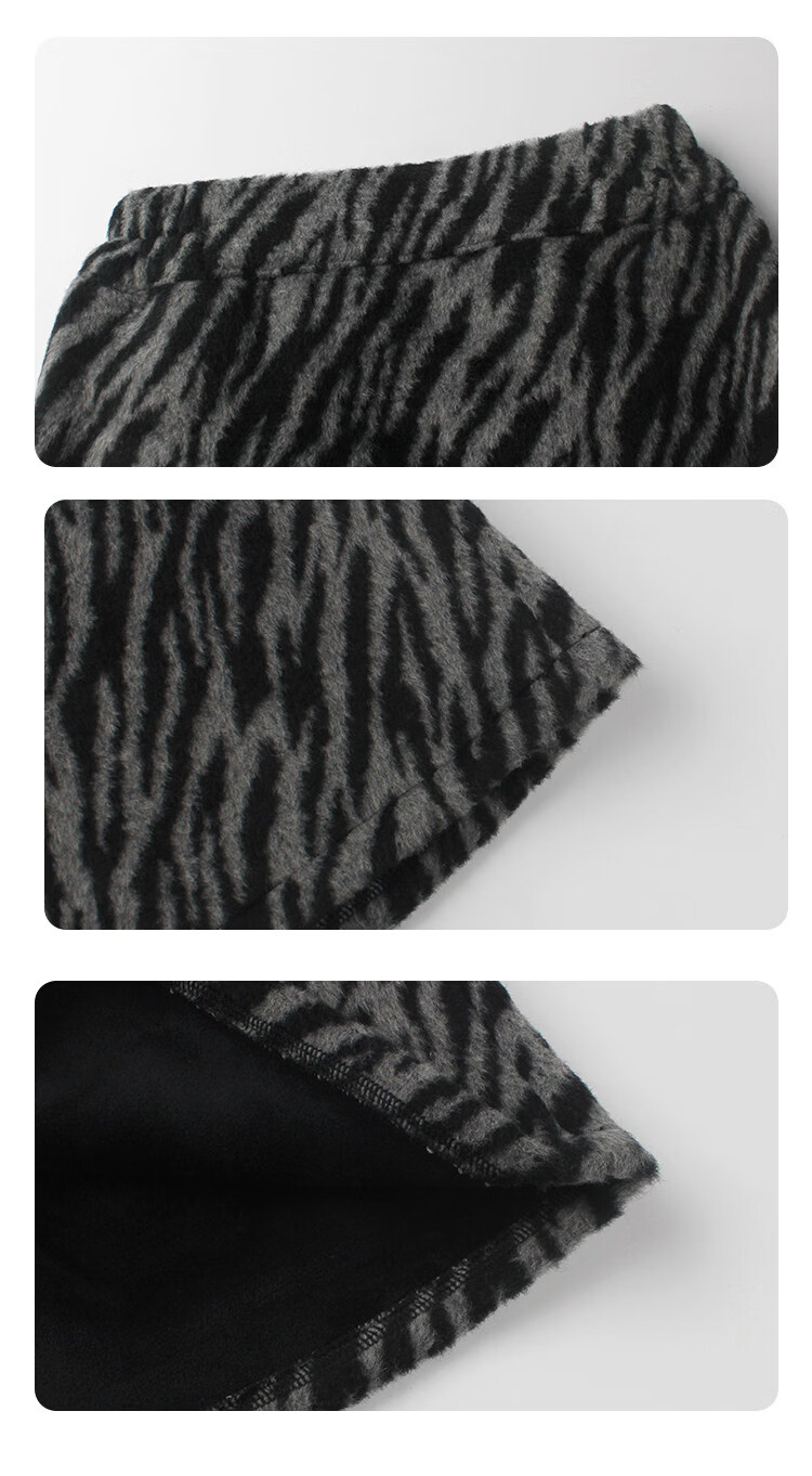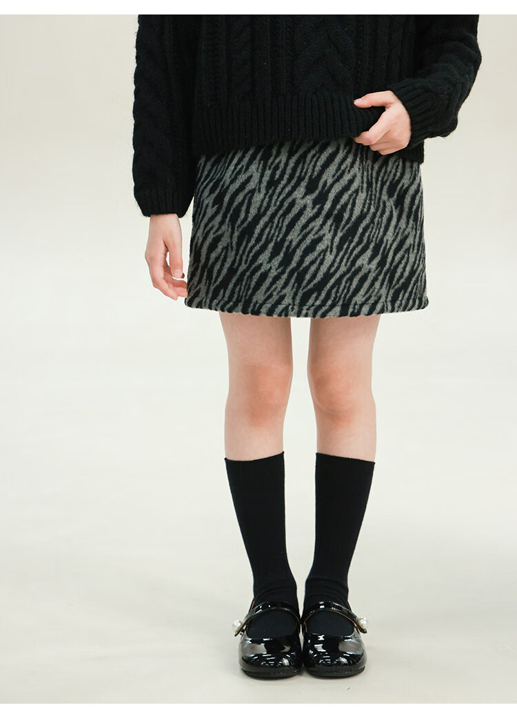 UTOUTO Big Ear Elephant Girls Animal Pattern Skirt 2025 Winter New Plus Velvet Leopard Print Zebra Short Skirt 2573036 Black and White Zebra 100