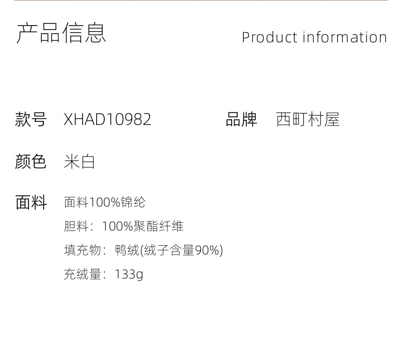 Nishimachi Village House (SETIROM) Nishimachi Village House Korean 90 White Duck Down Jacket Women's 2025 Winter New Short Down Jacket XHAD10982 Off-White One Size